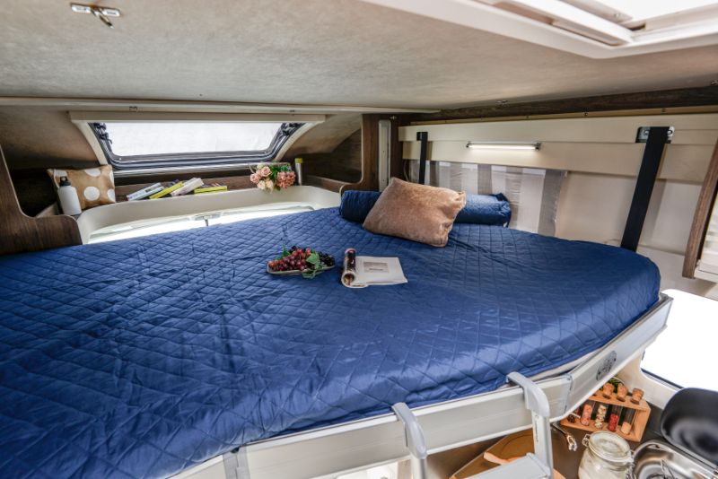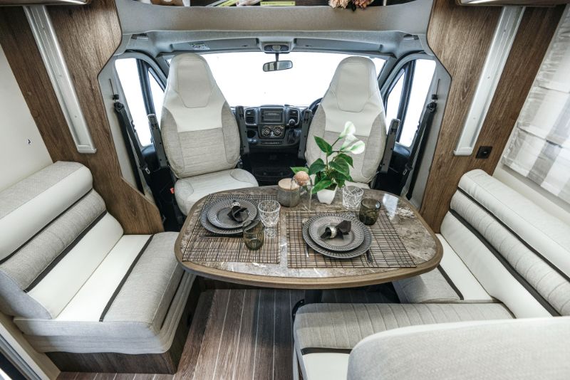 The Rollerteam T-Line 740 is the perfect family motorhome, with the separate rear bedroom with double bed hidden behind the centre sink unit giving full privacy. The toilet and shower are on opposite sides so can be utilised at the same time. The dinette has ample space to sit comfortably with the family for meals or relaxing.