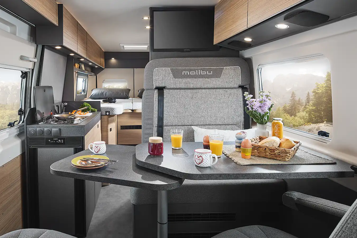 Malibu is built by Carthago, one of Europe’s most prestigious motorhome manufacturers. You get Carthago-level construction and clever space innovation, in a campervan that’s easy to drive, park and live with every day.