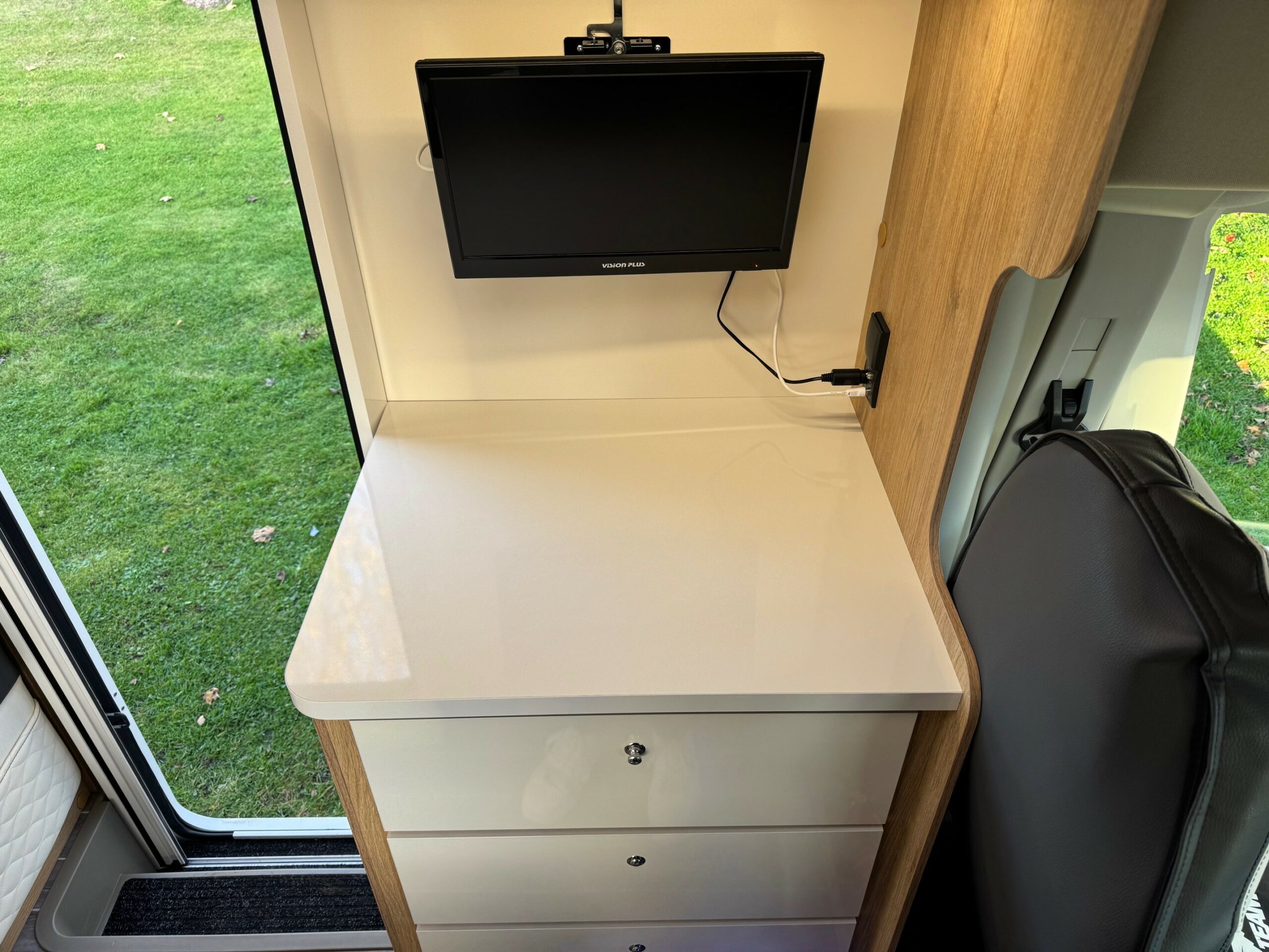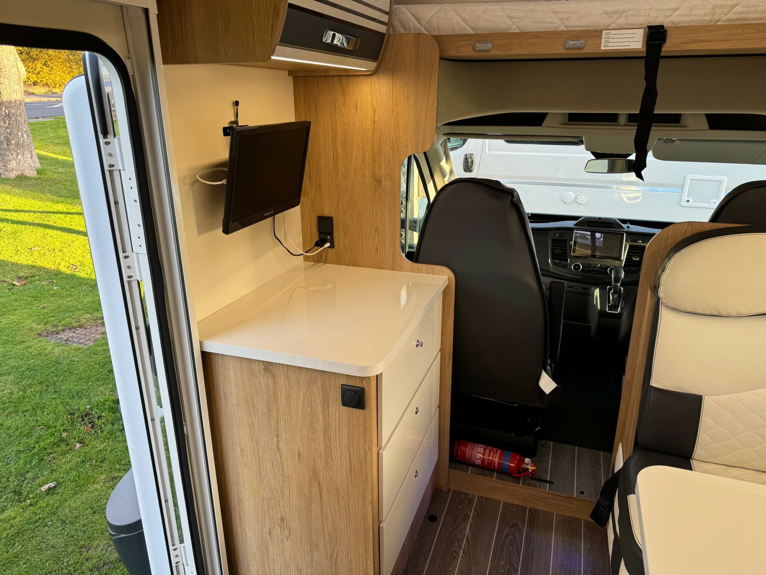 Fitted with; Drivers Pack, Auto Gearbox, TV & Aerial, Wi-FI, 200w Solar Panel, Bike Rack, Rear Camera, BBQ Point, Outside Shower Point