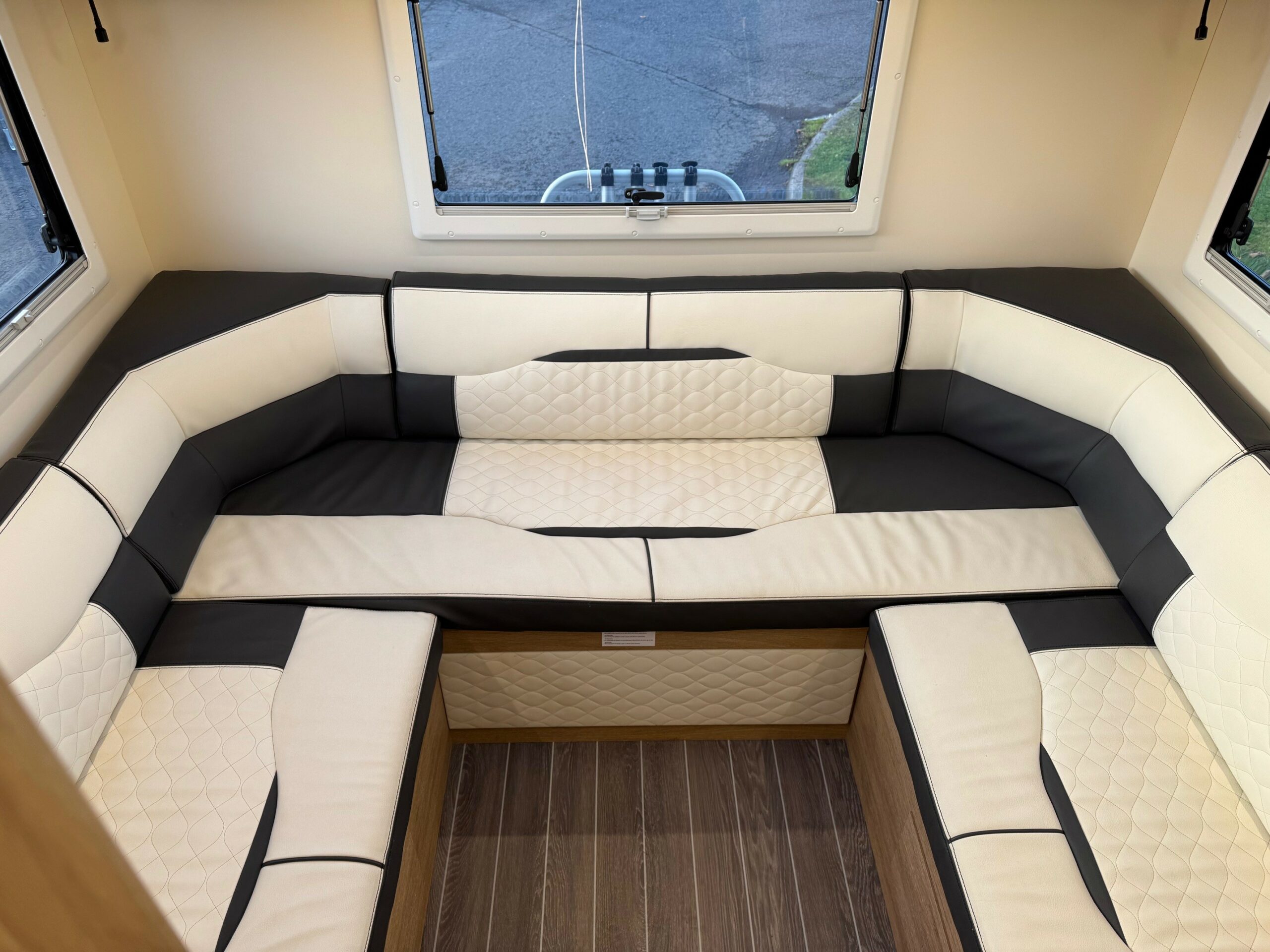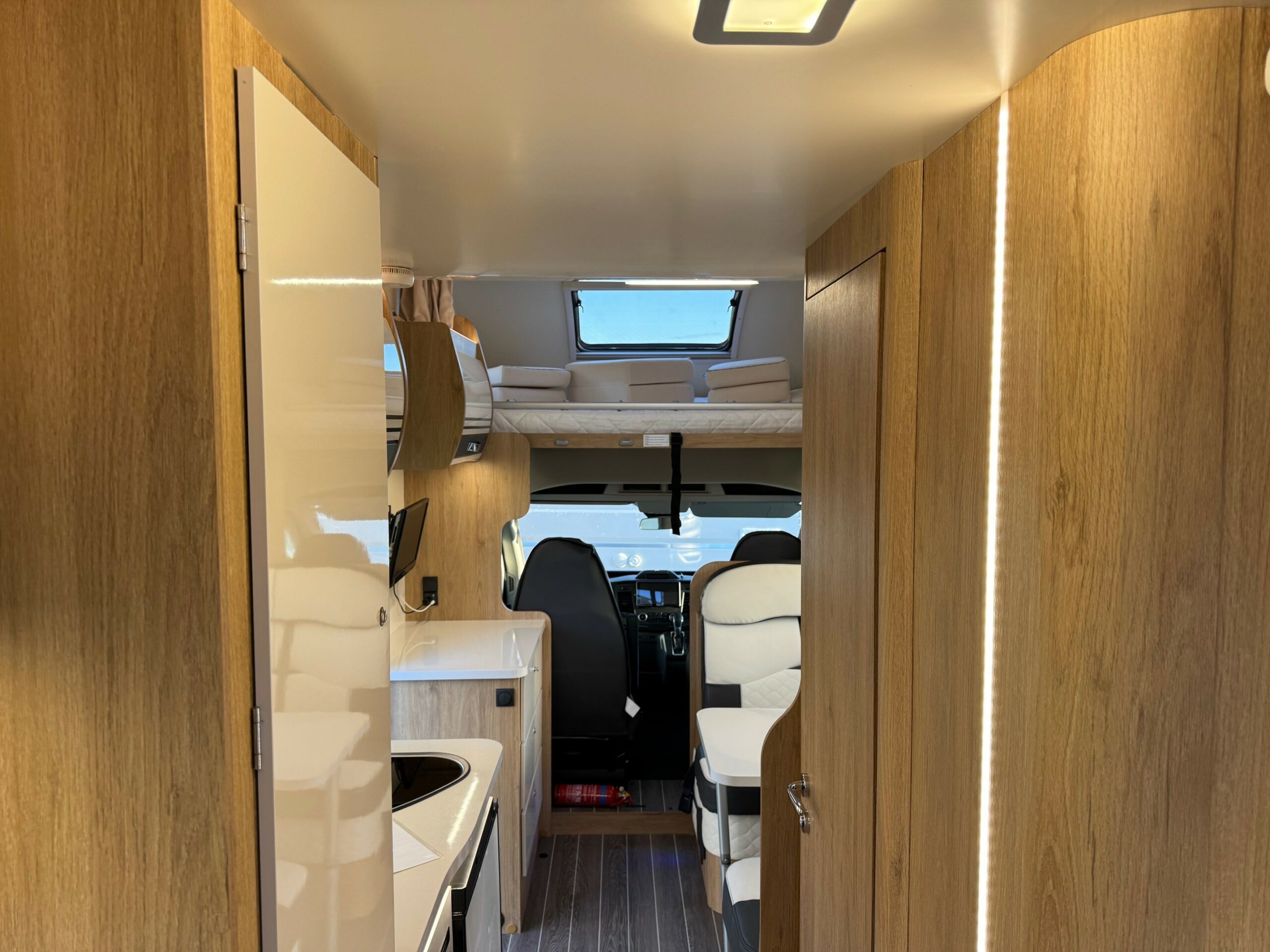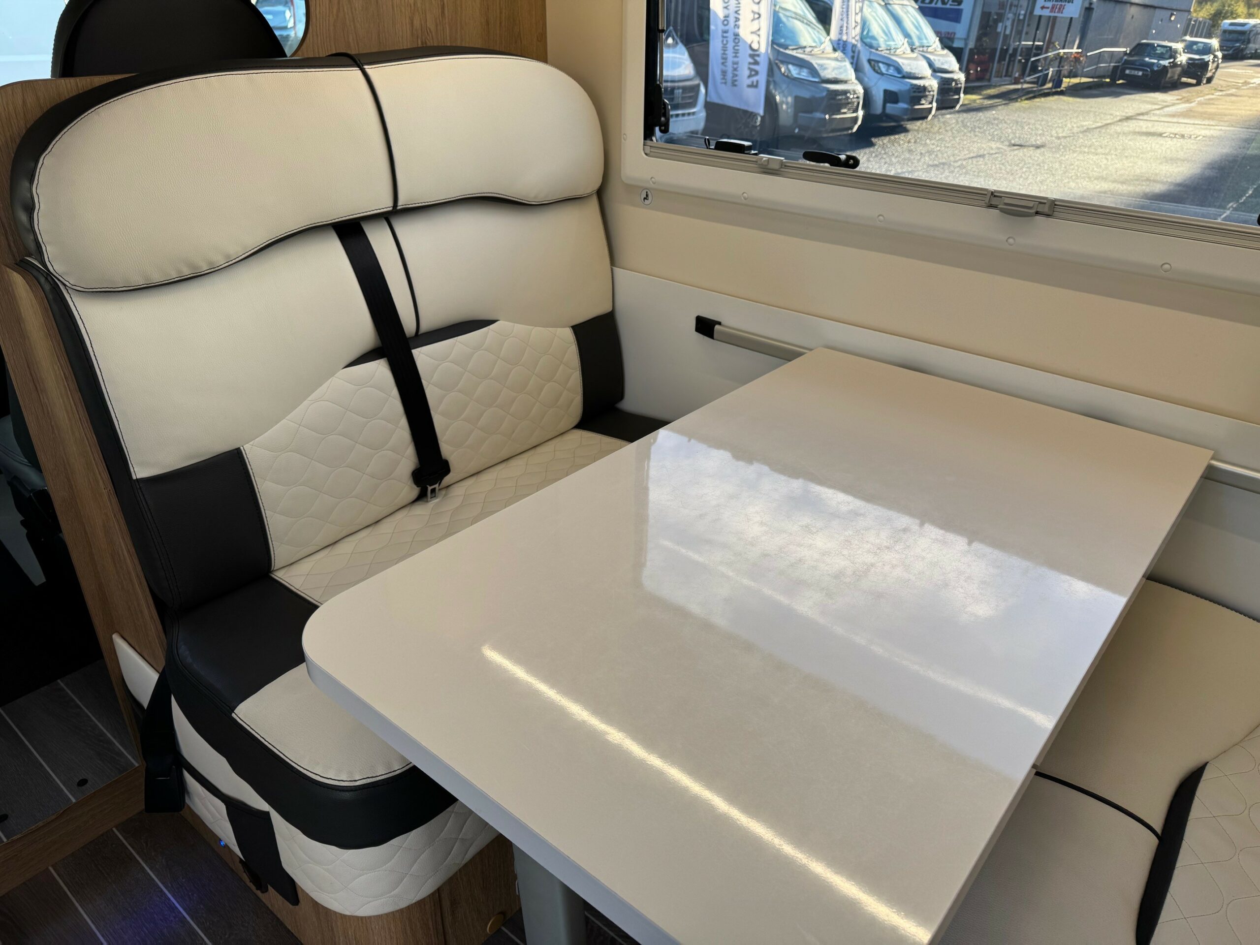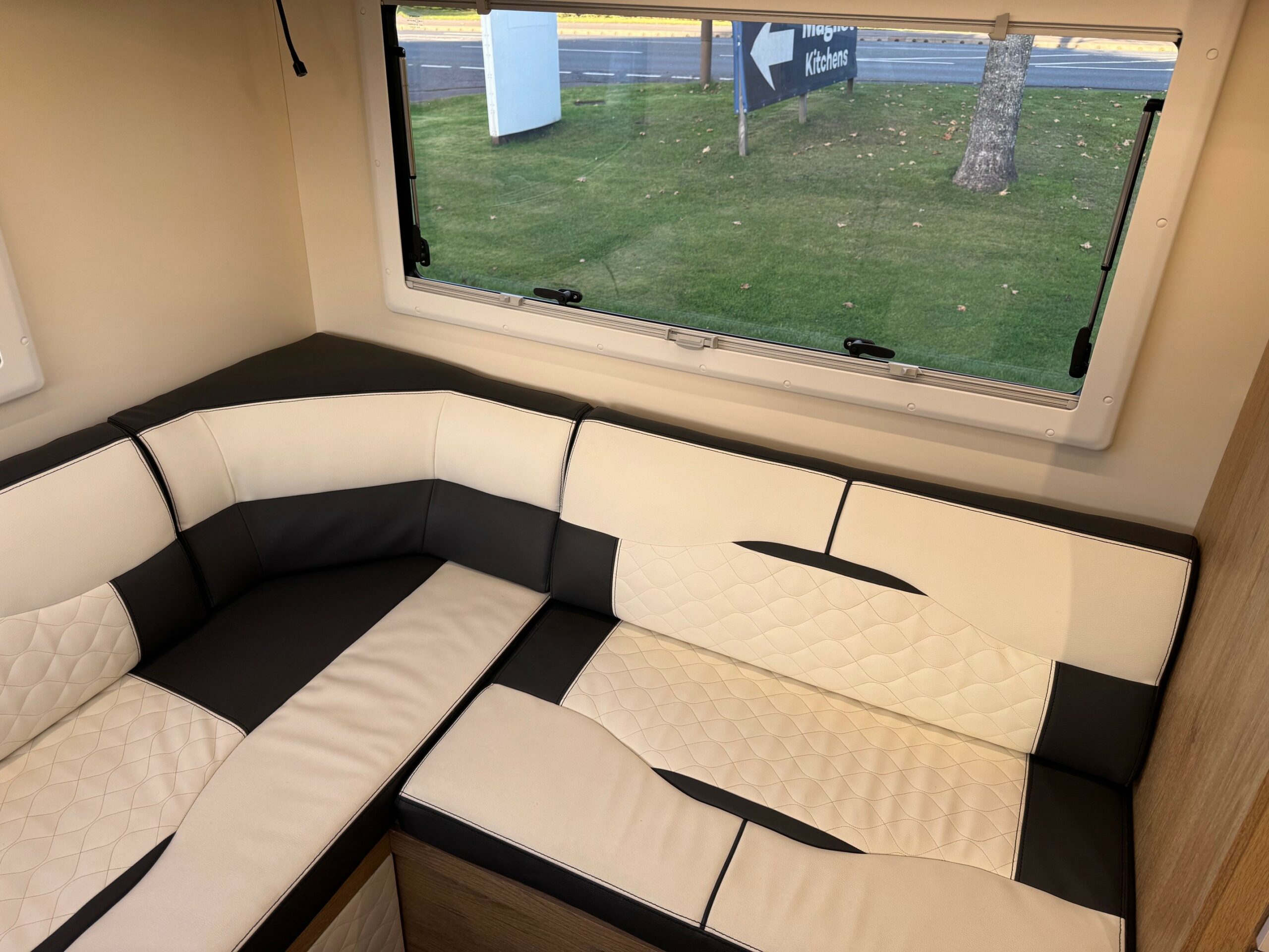 6 berth 4 belt 7.2m 3500kg coachbuilt. Automatic Gearbox. Large rear lounge that easily converts into a large double bed with storage under the lounge for all your outdoor gear. Side washroom with shower and separate toilet. Large kitchen that has 3 ring hob, 36l oven/grill and undercounter 3 way fridge/freezer. Front dining area that also converts into a double bed. There is then the huge overcab double bed. This can also add as space for addtional storage during the daytime.