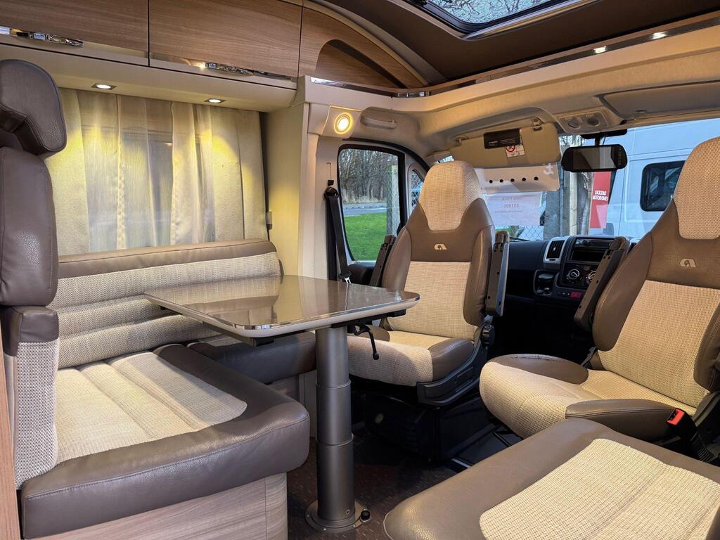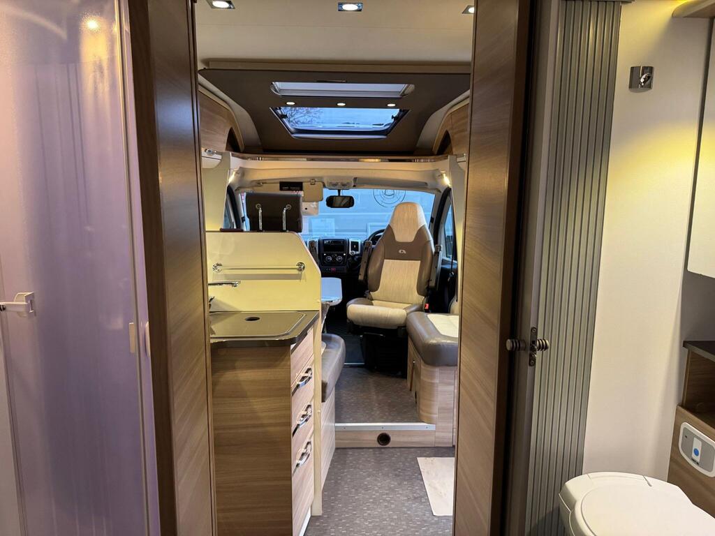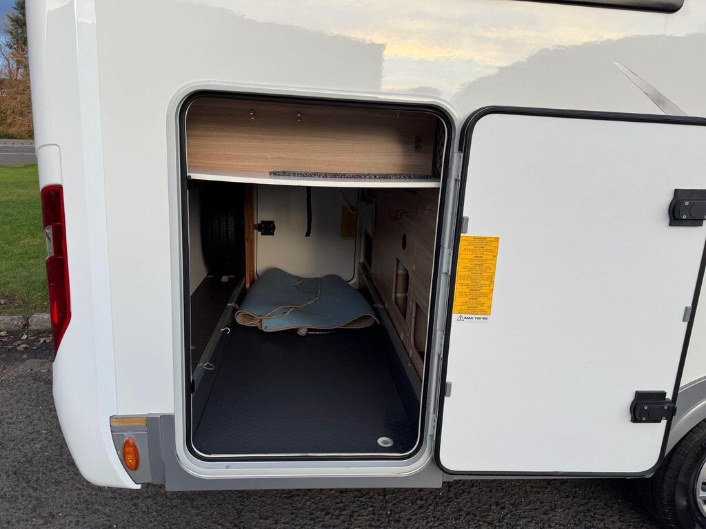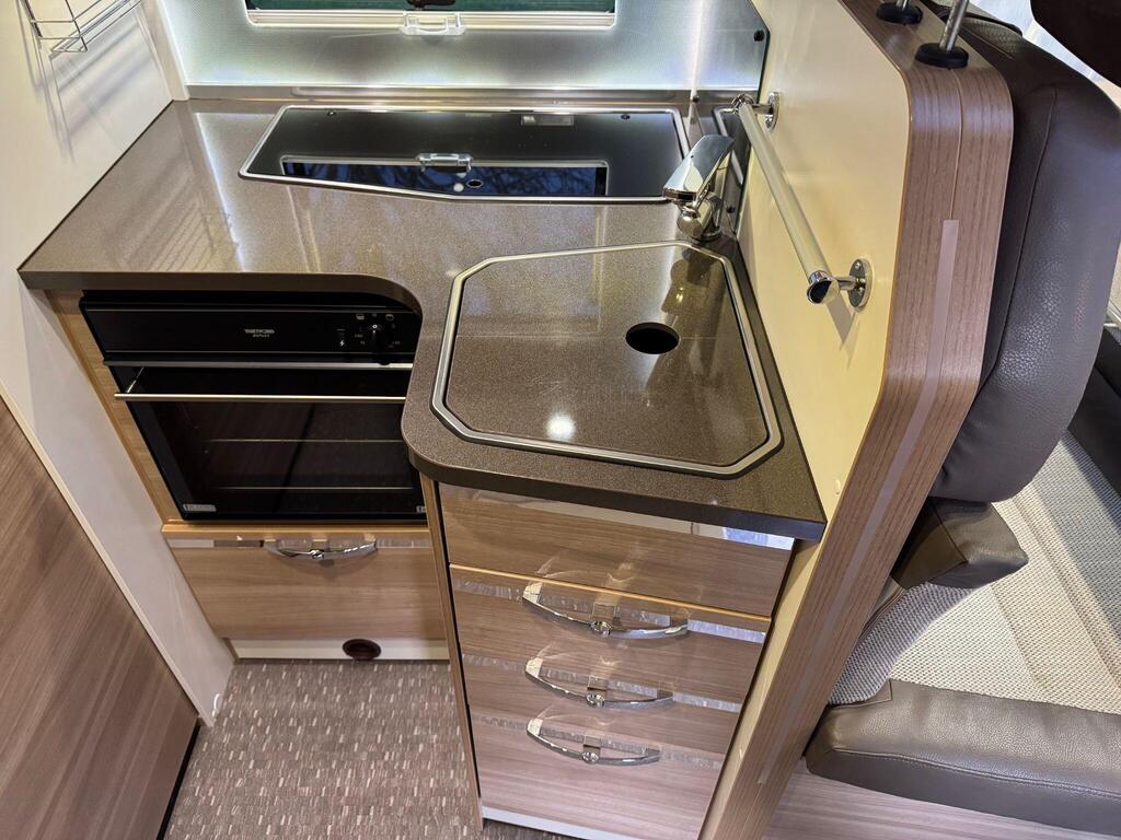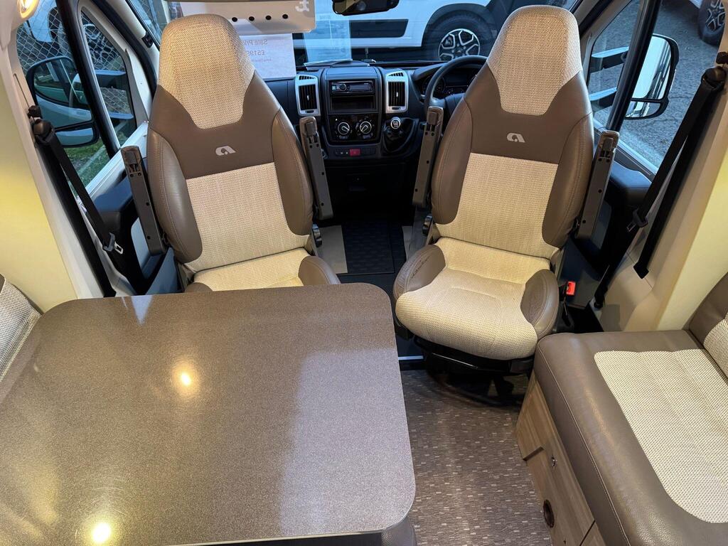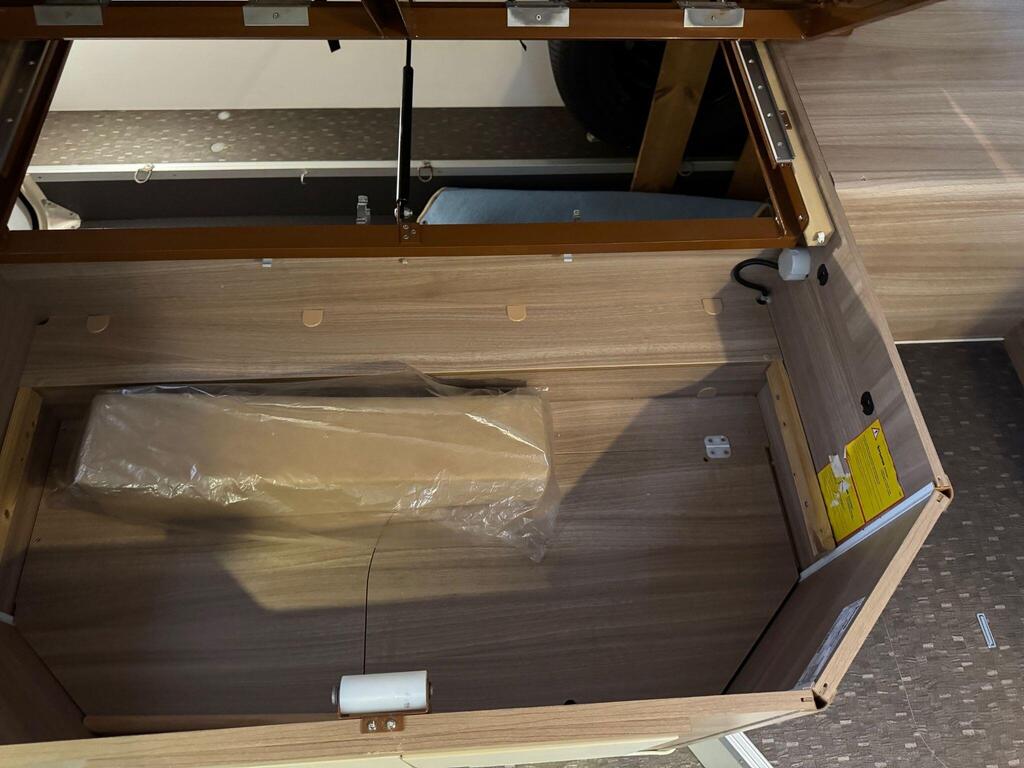 Rear island bed over garage. Toilet & separate shower cubicle. The bedroom can also be fully closed off for privacy at night. L-shaped kitchen area with 3 ring hob, oven/grill & 165l fridge/freezer. Front lounge with 2 captains chairs. L-shaped seating and side bench seat. The lounge also converts into another small double bed for children or large single for adults.