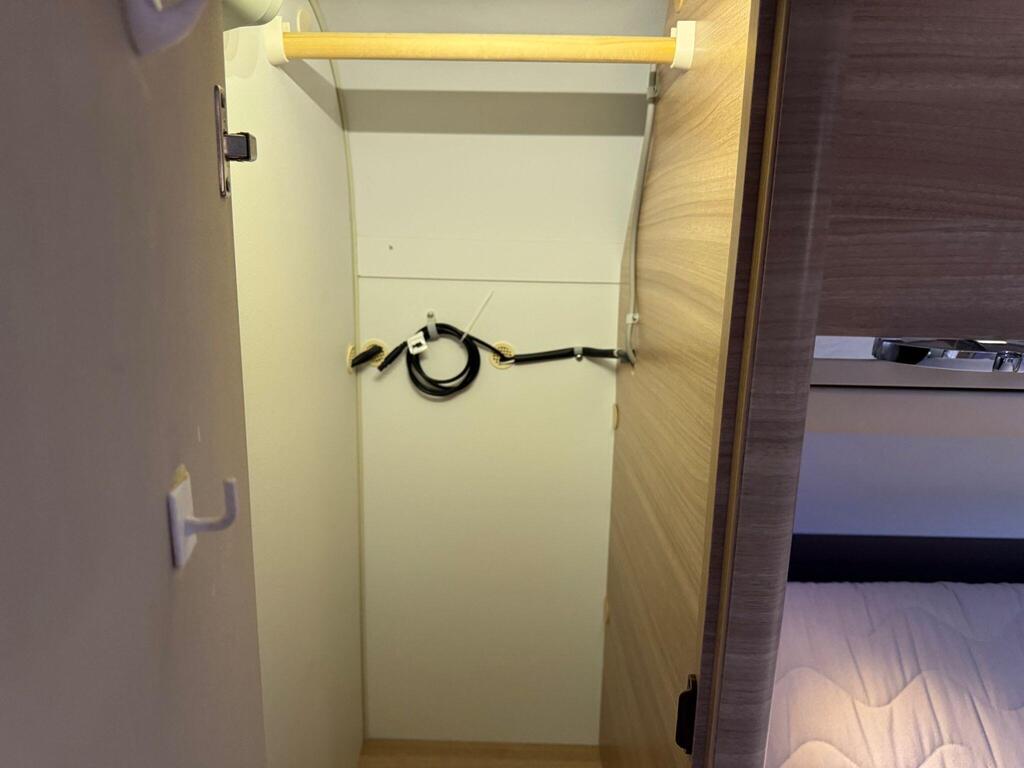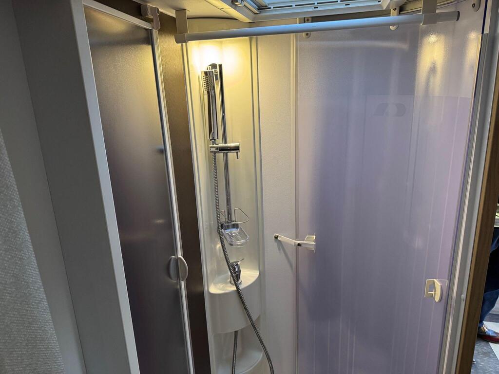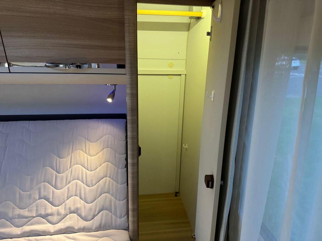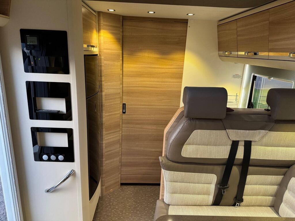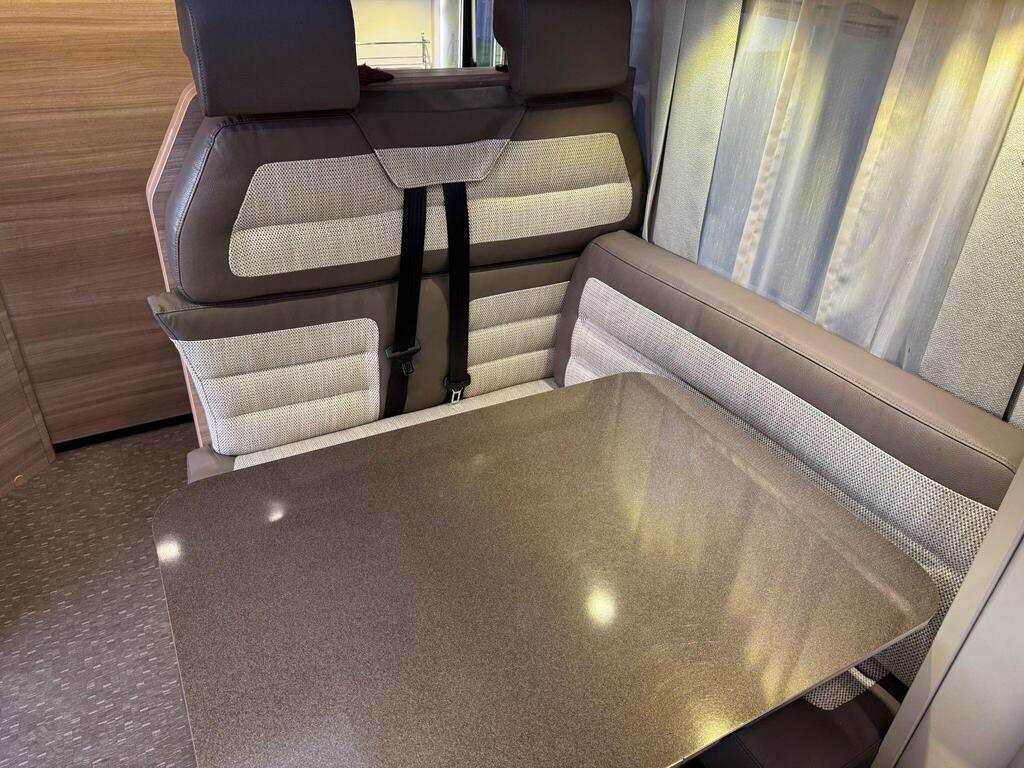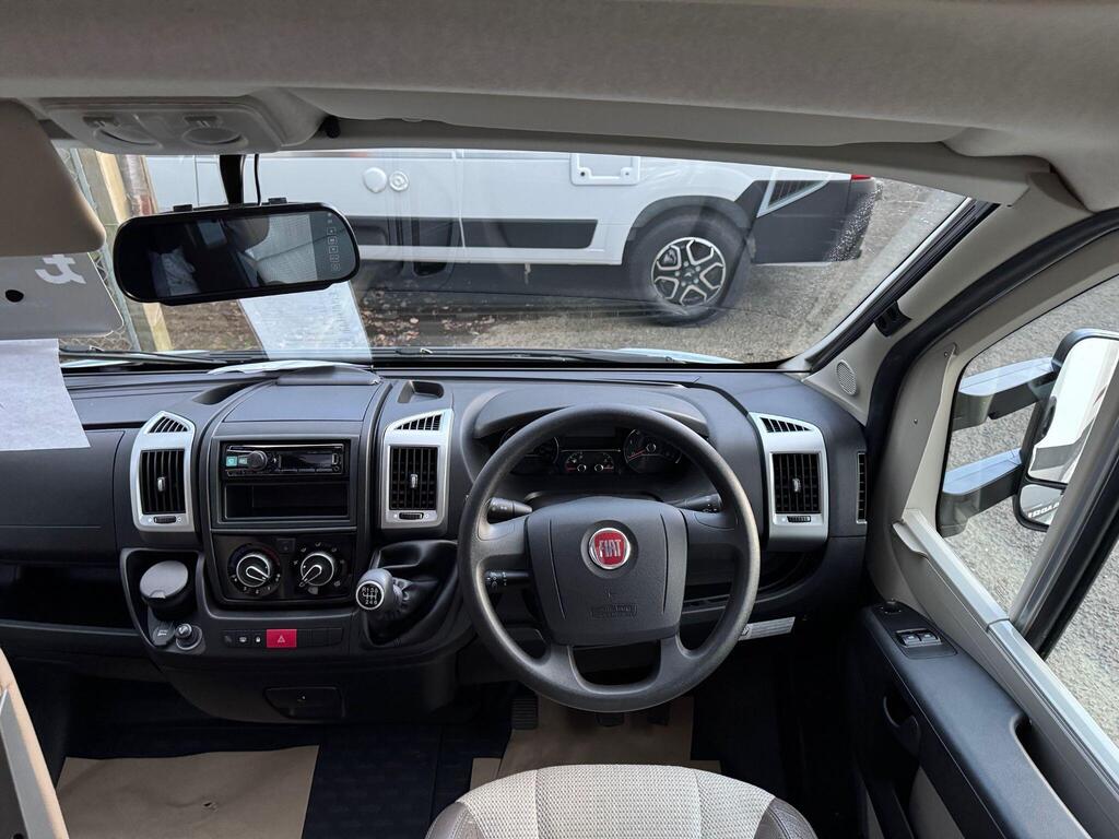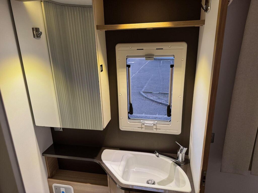 Rear island bed over garage. Toilet & separate shower cubicle. The bedroom can also be fully closed off for privacy at night. L-shaped kitchen area with 3 ring hob, oven/grill & 165l fridge/freezer. Front lounge with 2 captains chairs. L-shaped seating and side bench seat. The lounge also converts into another small double bed for children or large single for adults.