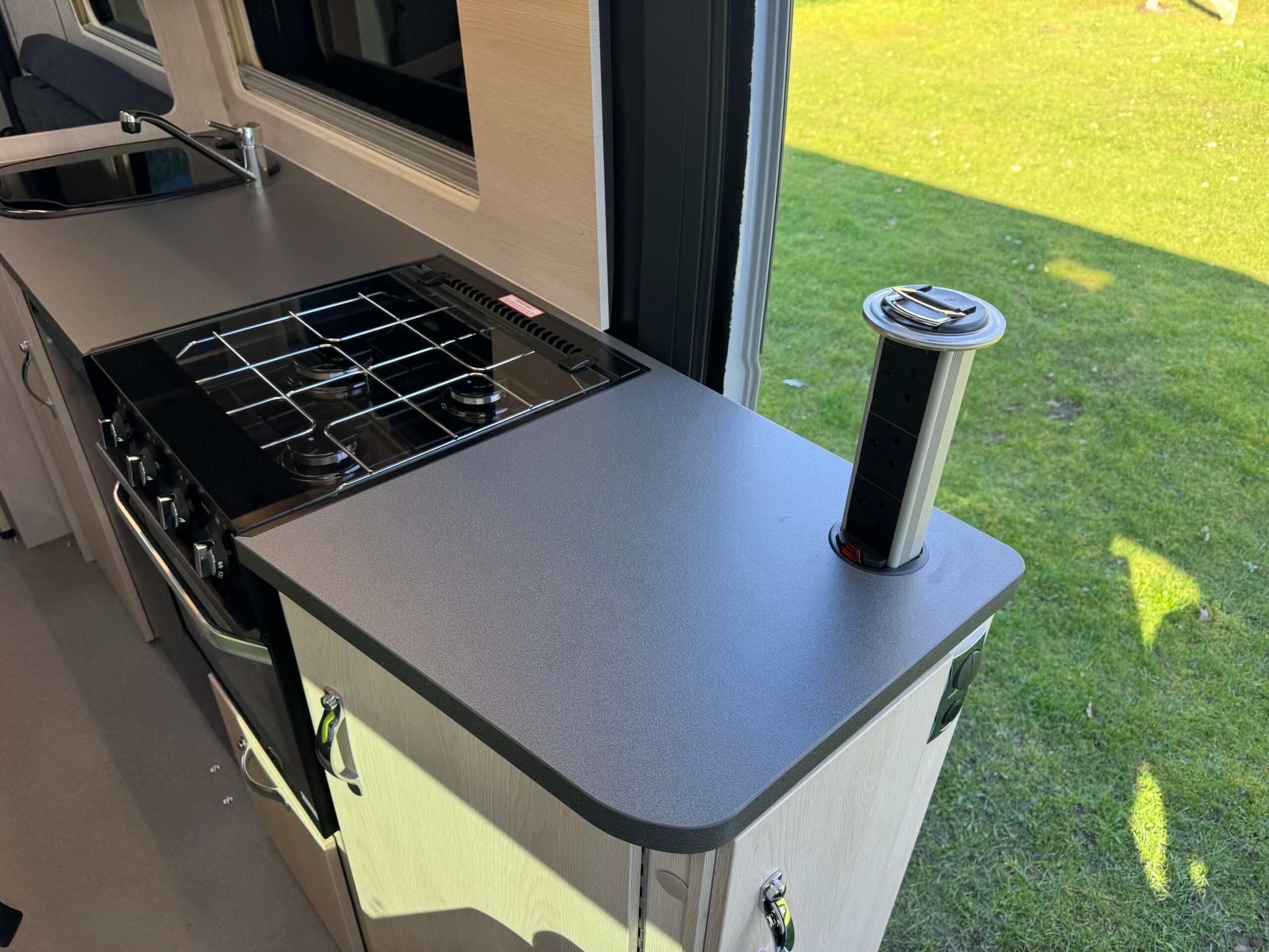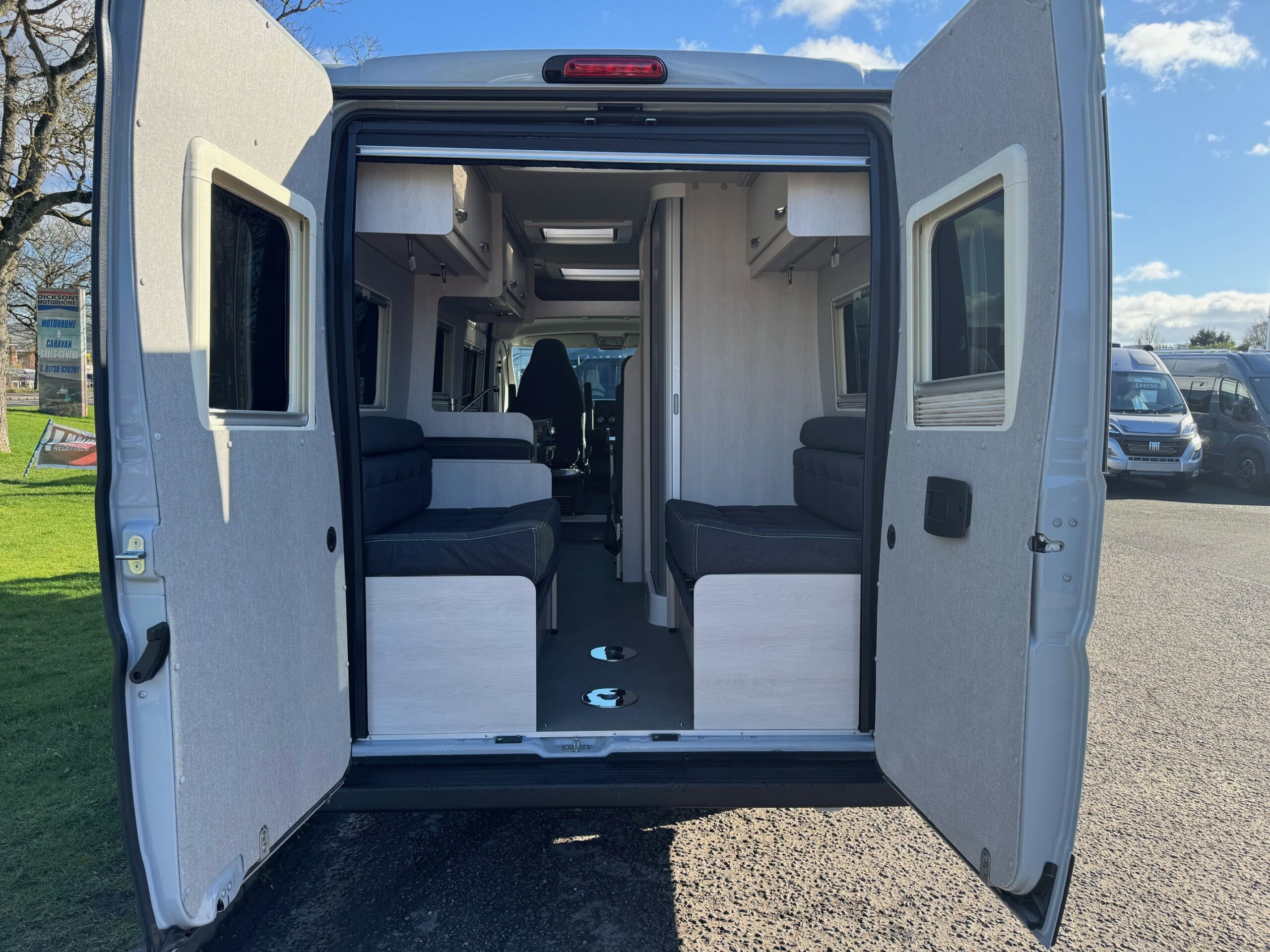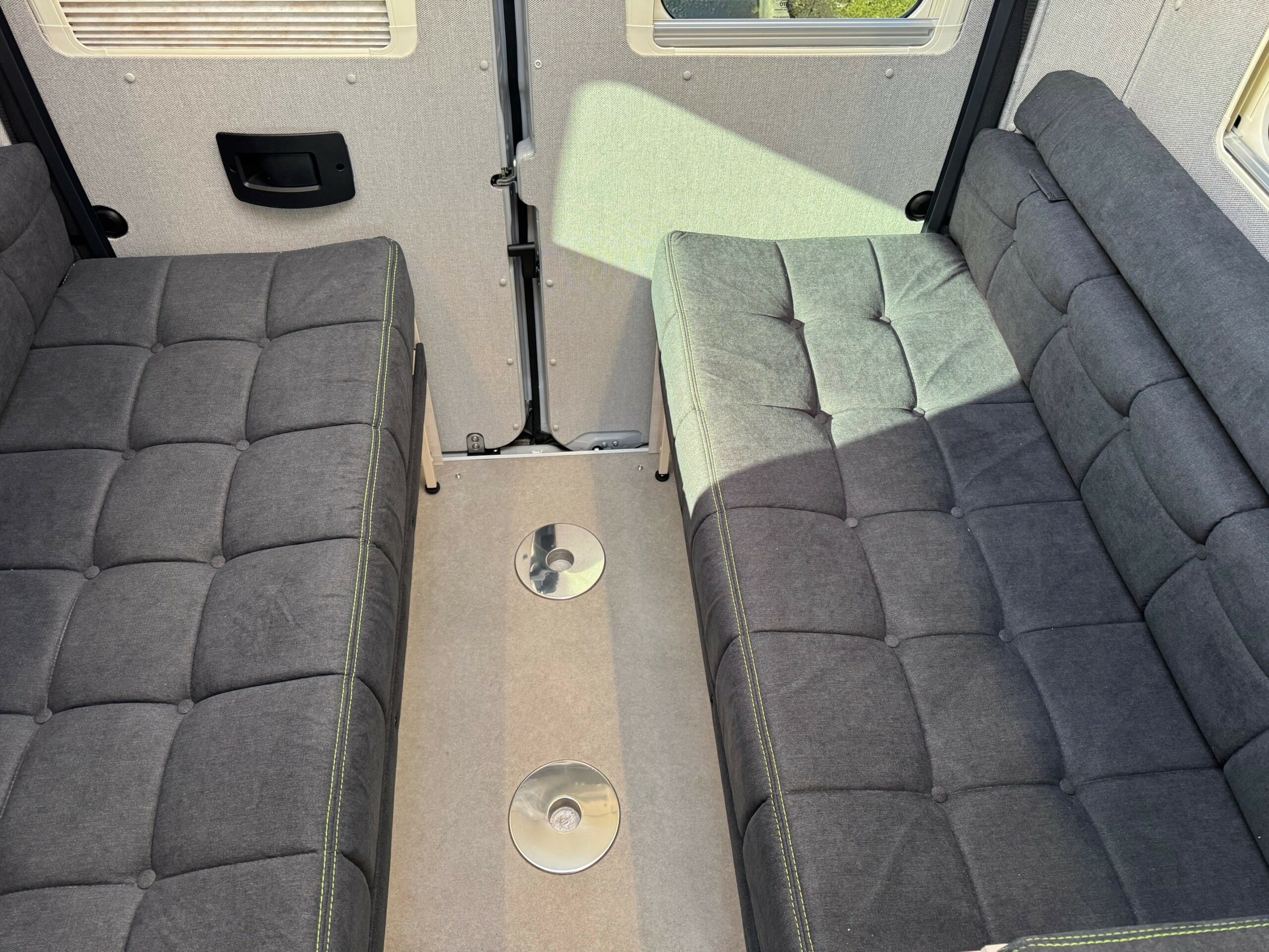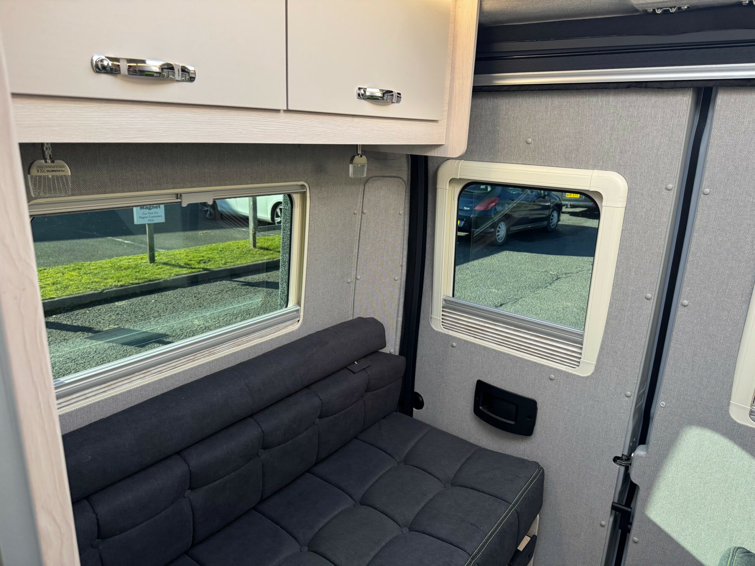Stunning 4 berth 4 belt van conversion. Featuring a versatile twin lounge layout with practical dinette seating in the front that flows through to a generous rear living area, the Active FL 635 delivers maximum flexibility for every journey and is available with the option of a pop-top roof to offer the perfect blend of comfort, space, and innovation. Explore the all-new family-focused campervan range.