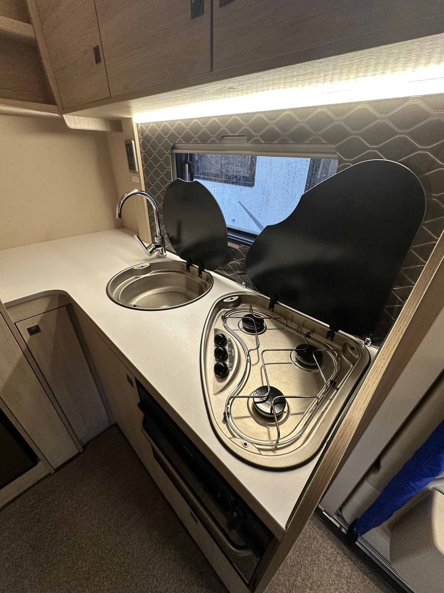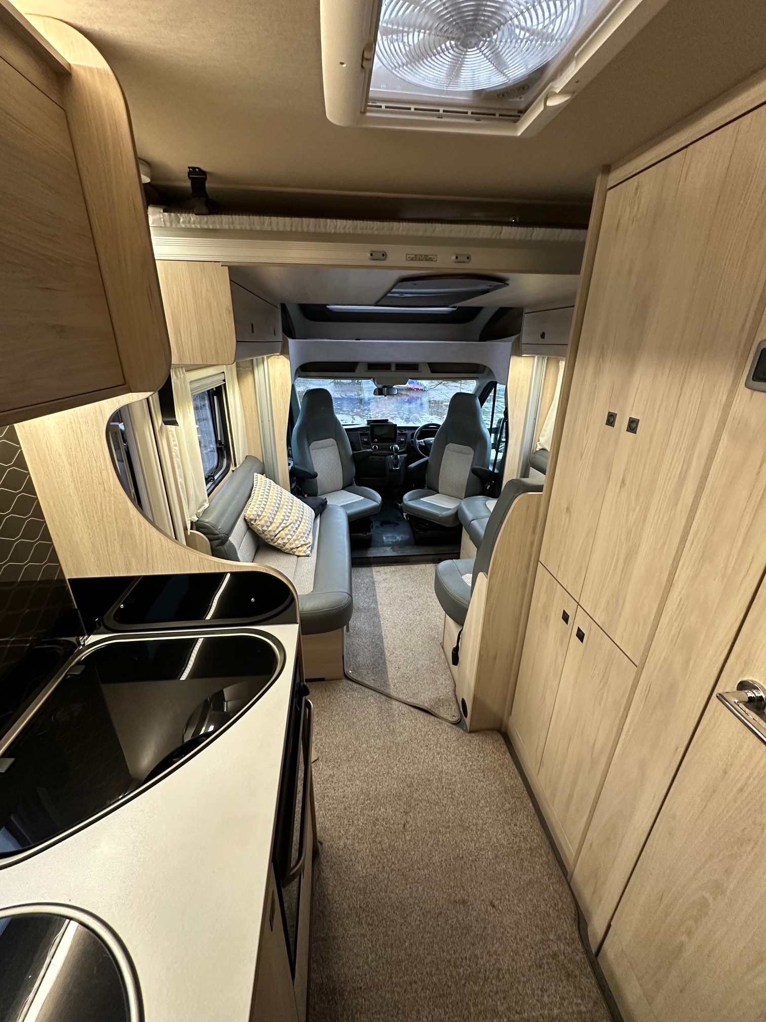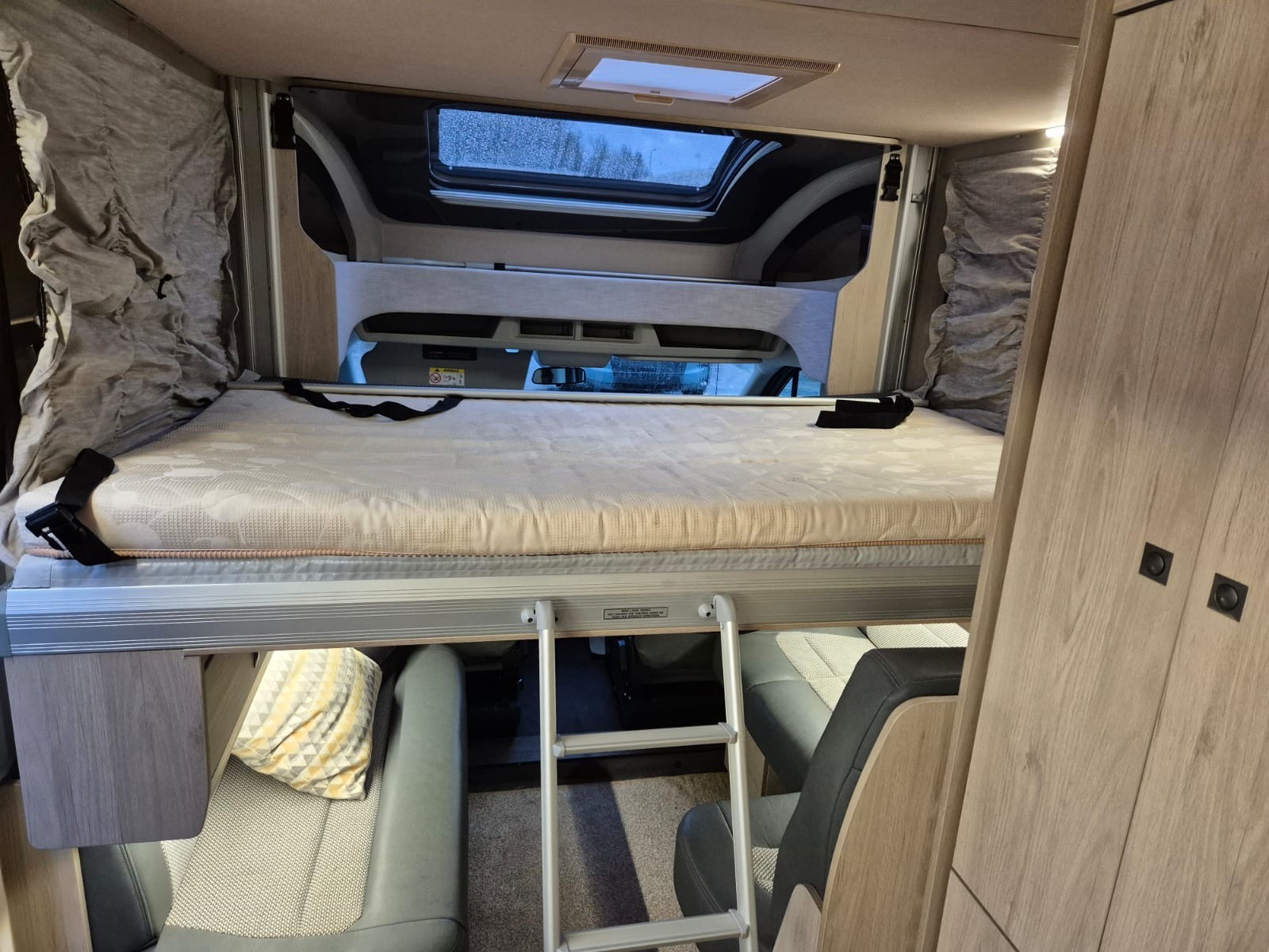 - Sleeping for 4: At night, the lounge converts into a double bed, complemented by a convenient electric drop-down double bed above.