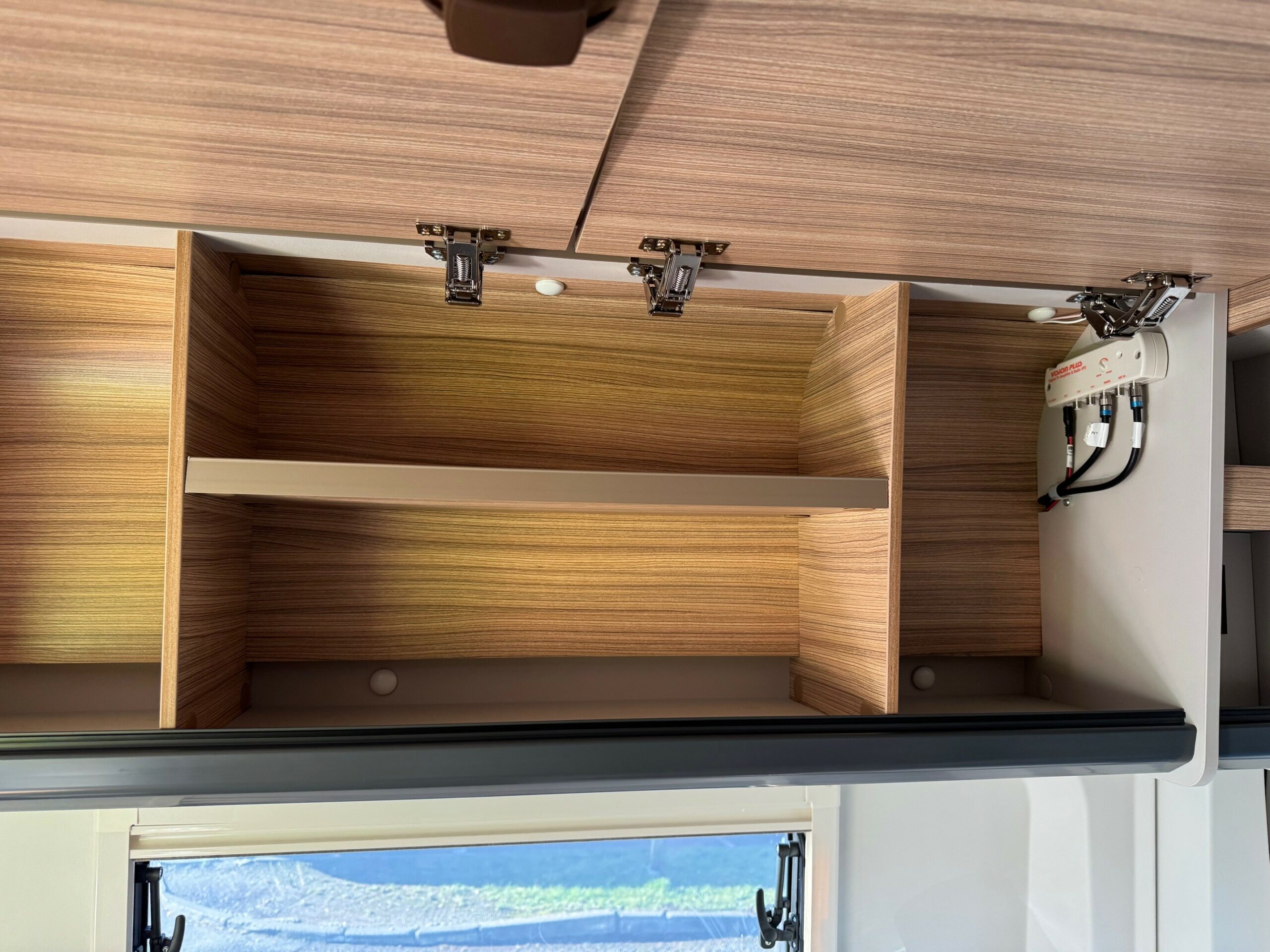 • Front flexi lounge with Aguti travel seats and ISOFIX, converts into twin singles or a double bed