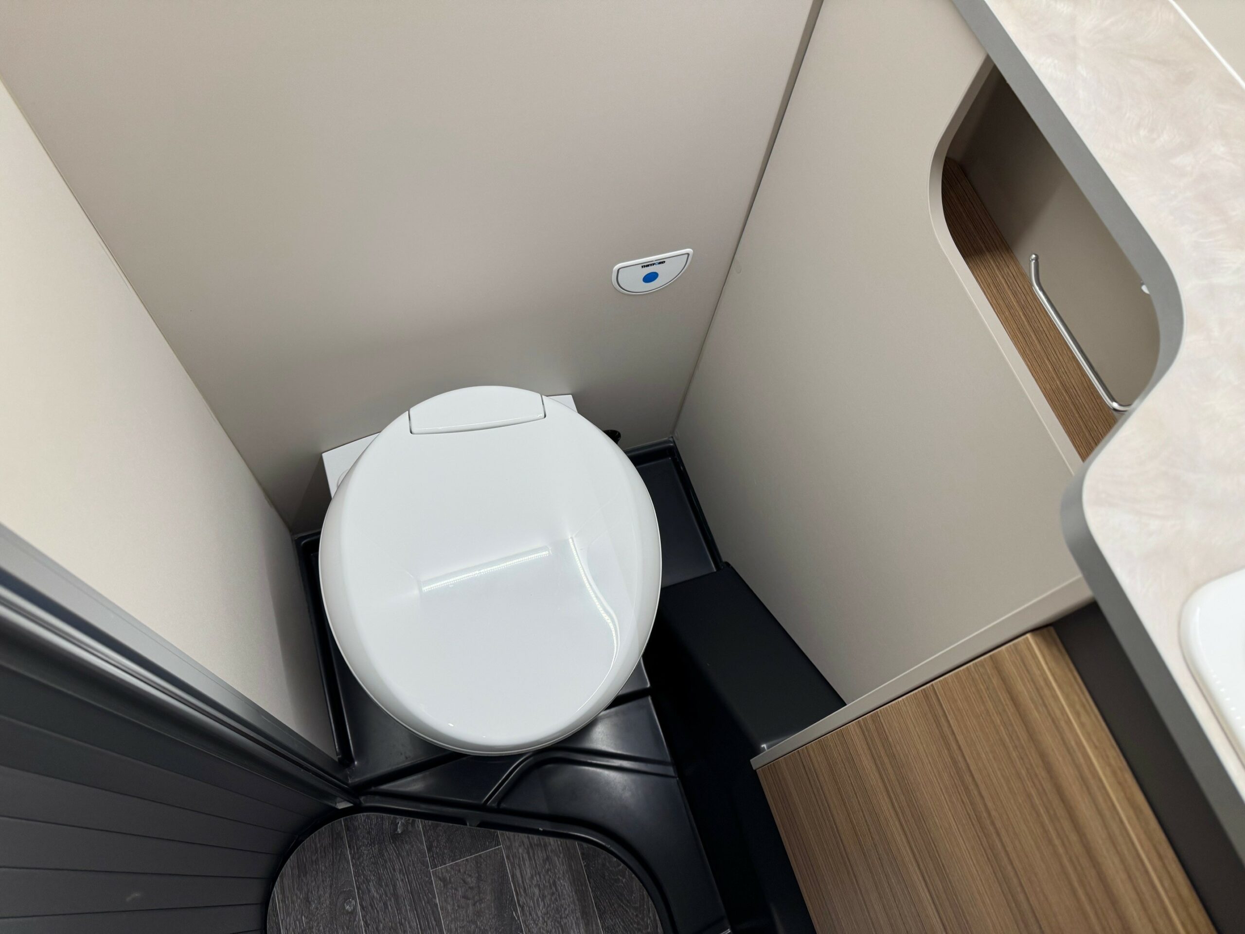 • Space-saving combination washroom with onboard shower and tambour partition door.