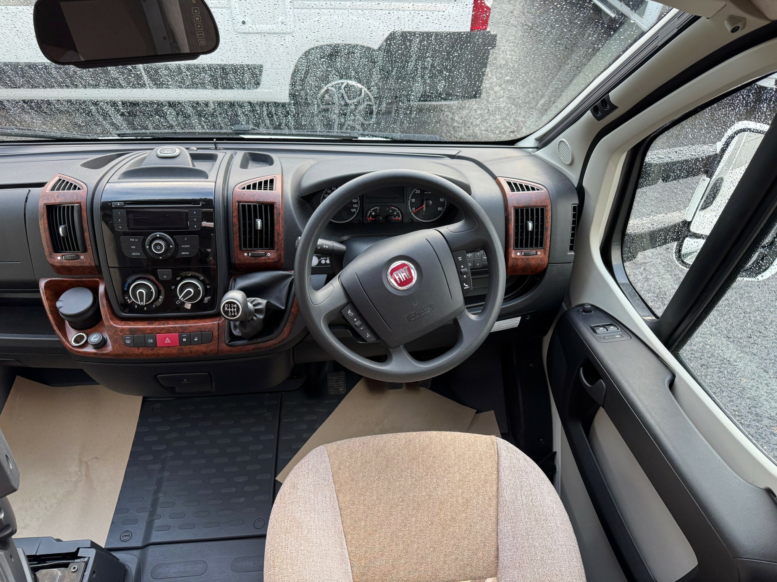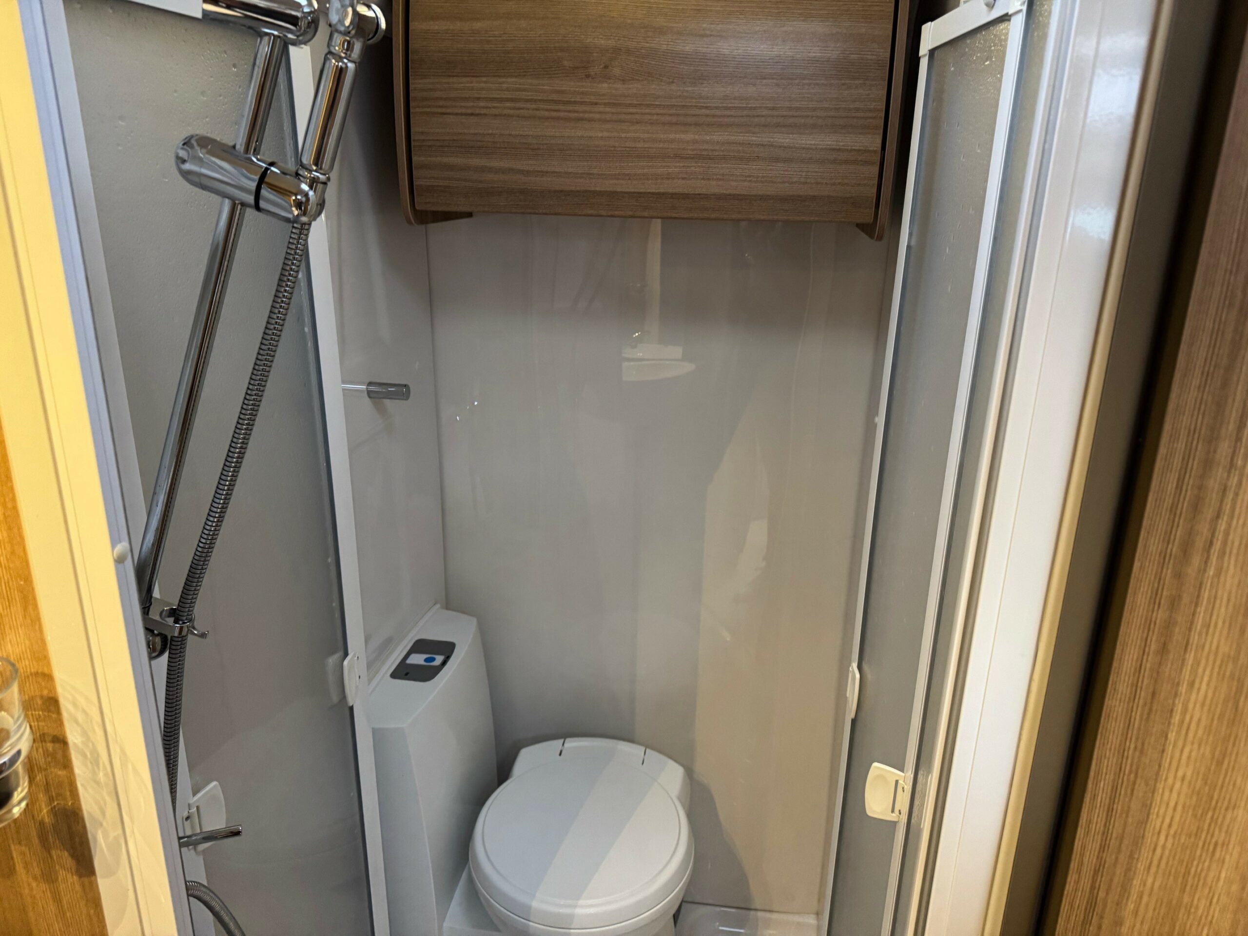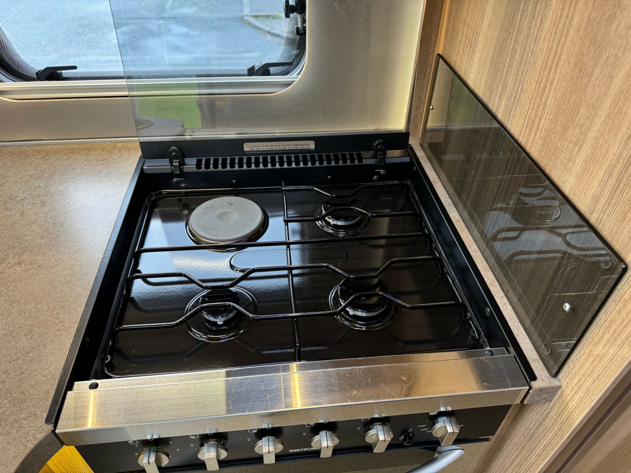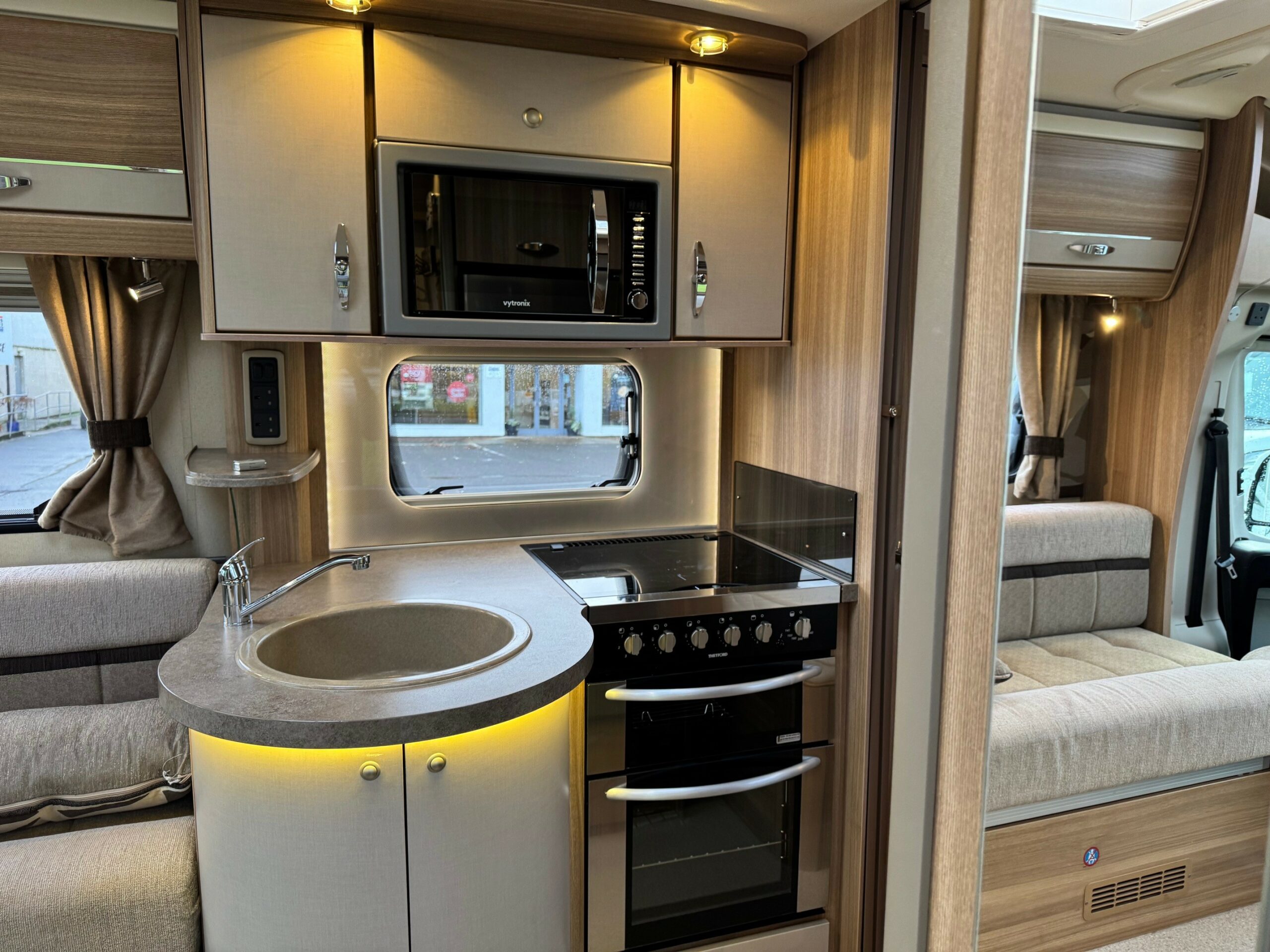 A lovely spacious 4 berth low profile motorhome. Only 7m in length but offering an extremely spacious feel. Rear French bed with storage underneath. Rear side washroom, the configuration allows you to create a separate enclosed shower cubicle. Large Wardrobe. Mid kitchen that has everything you would need for your trips away; microwave, 3 ring gas hob, electric hot plate, oven & separate grill, 165l fridge/freezer. The front lounge has 2 bench seats & 2 captains chairs. The lounge also creates a large double bed.