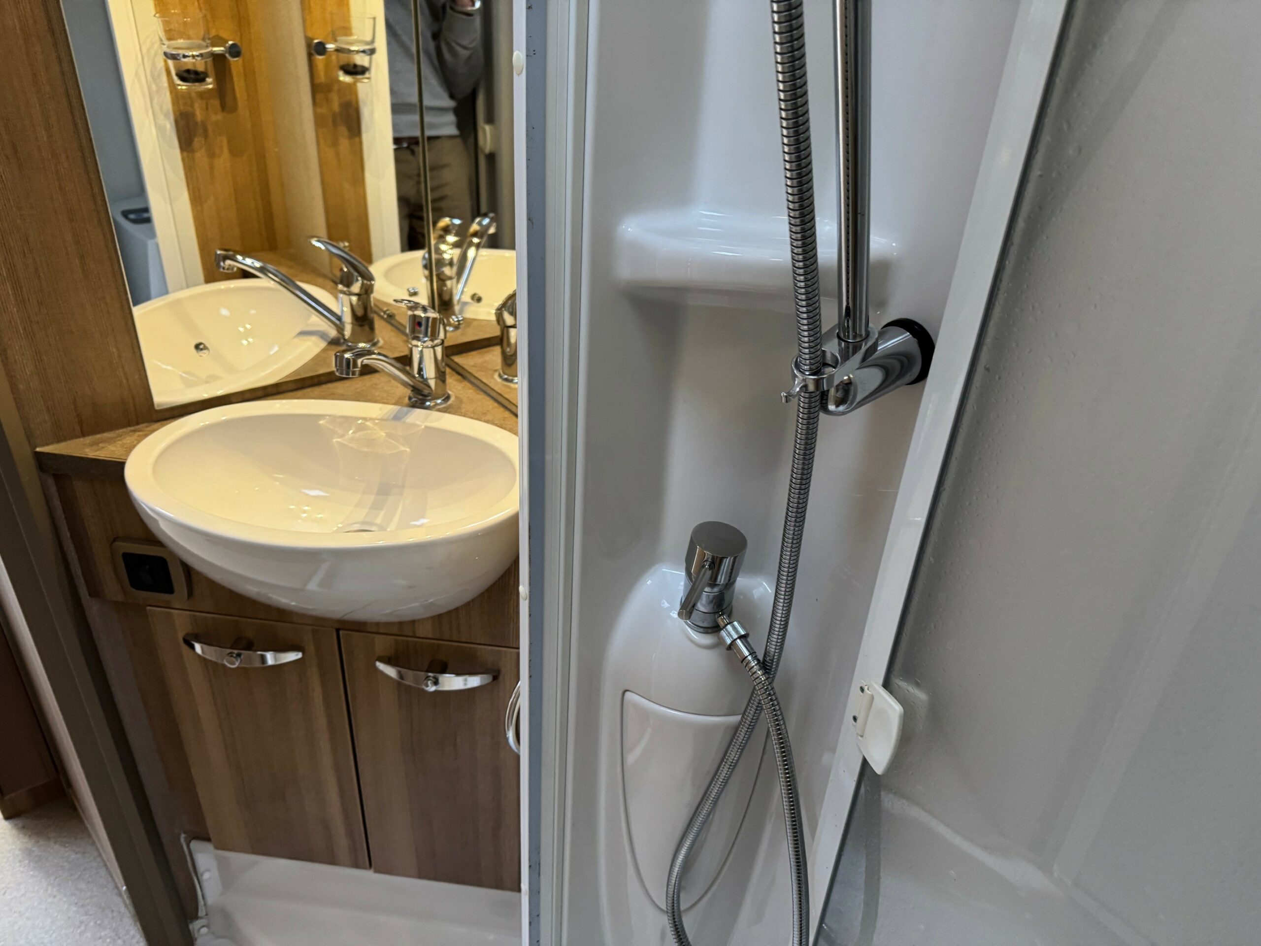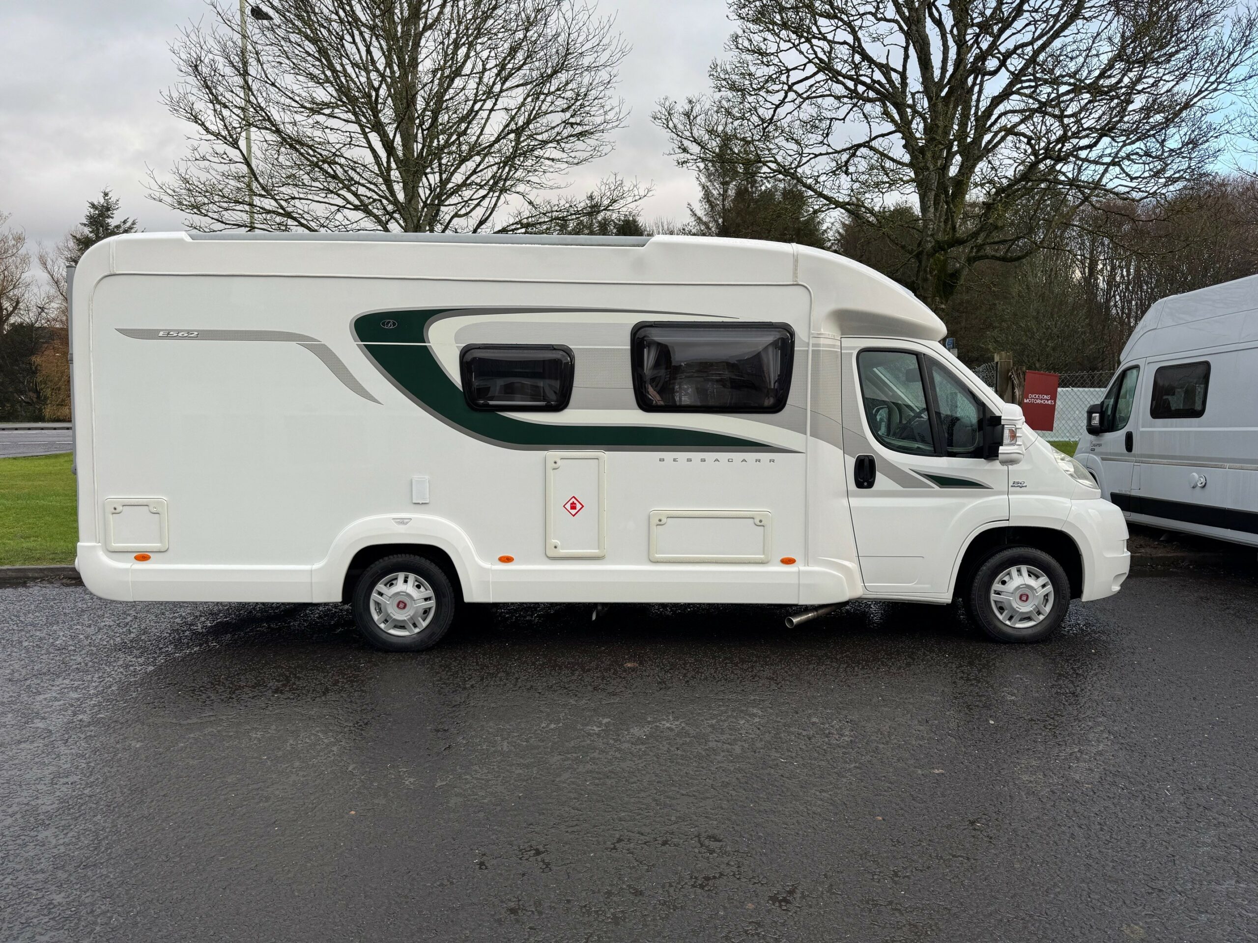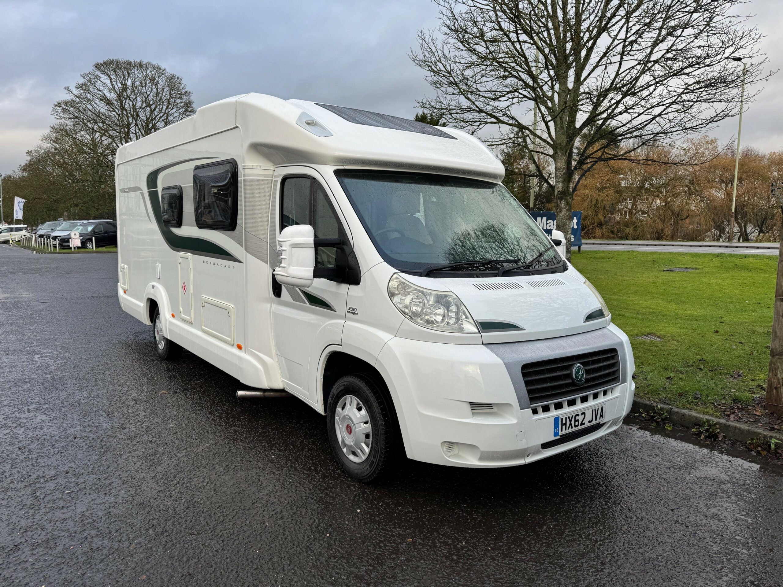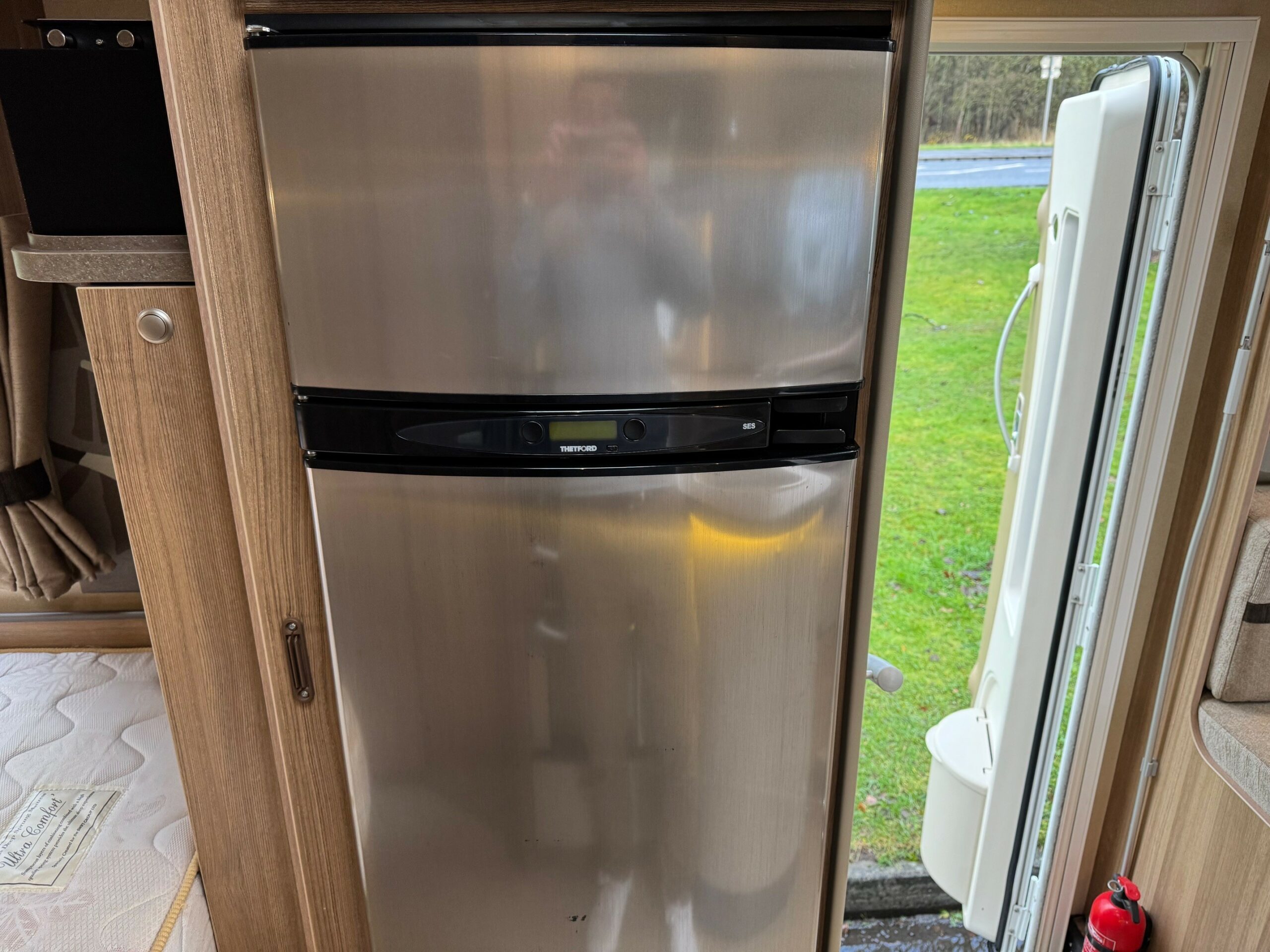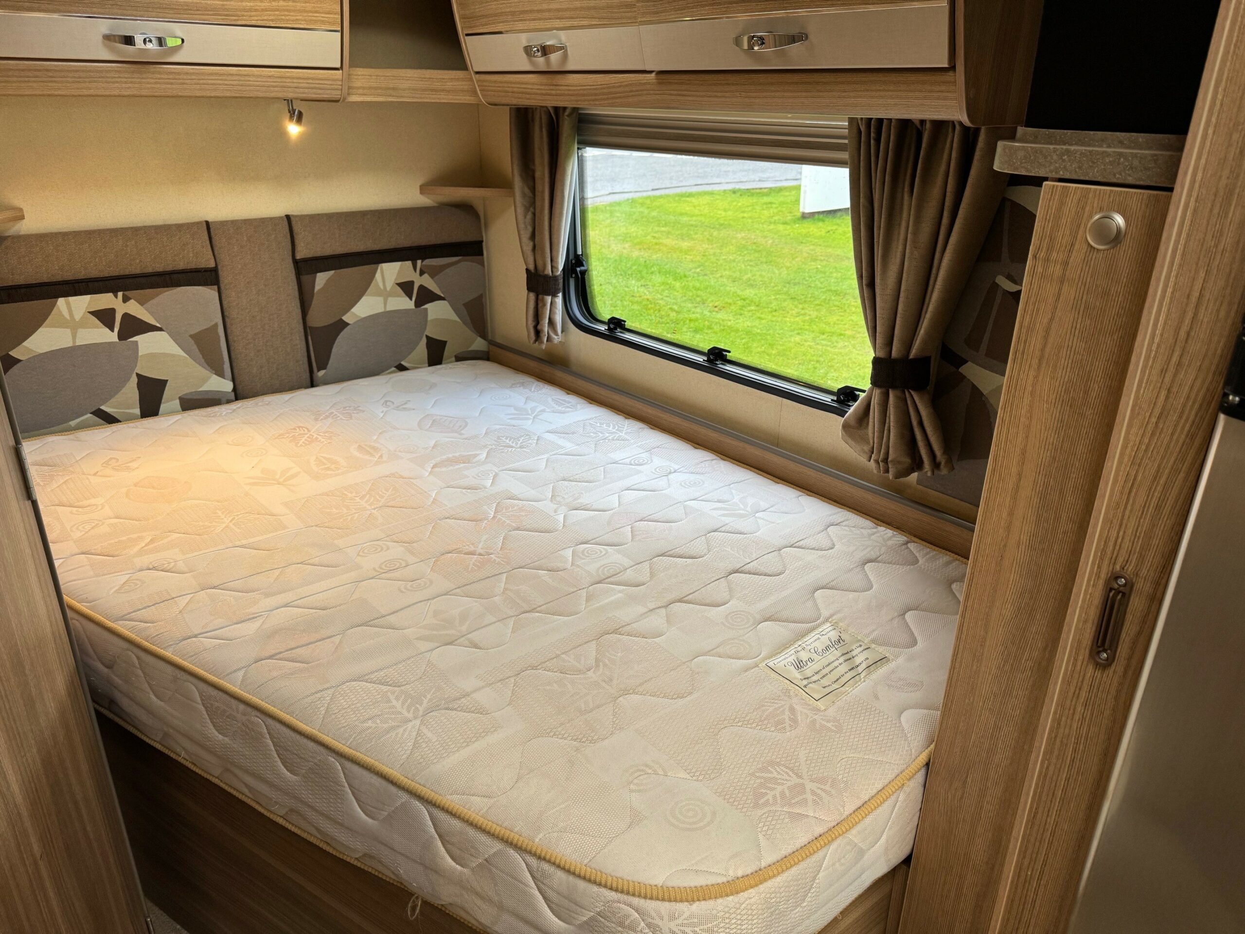 A lovely spacious 4 berth low profile motorhome. Only 7m in length but offering an extremely spacious feel. Rear French bed with storage underneath. Rear side washroom, the configuration allows you to create a separate enclosed shower cubicle. Large Wardrobe. Mid kitchen that has everything you would need for your trips away; microwave, 3 ring gas hob, electric hot plate, oven & separate grill, 165l fridge/freezer. The front lounge has 2 bench seats & 2 captains chairs. The lounge also creates a large double bed.