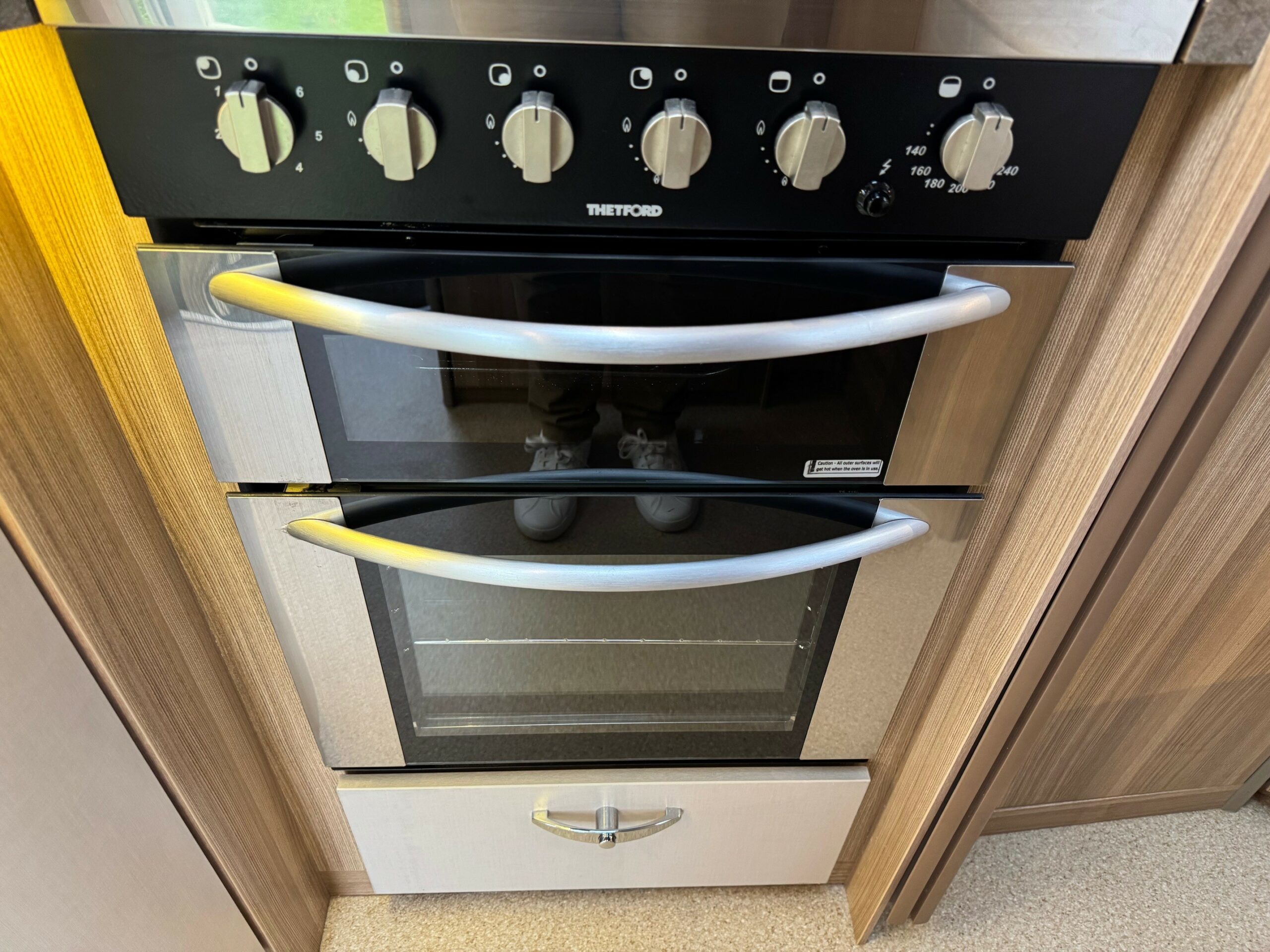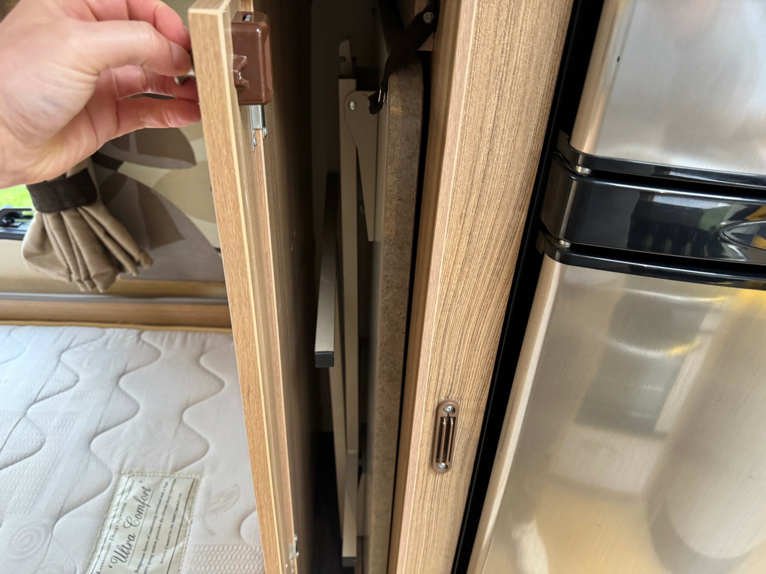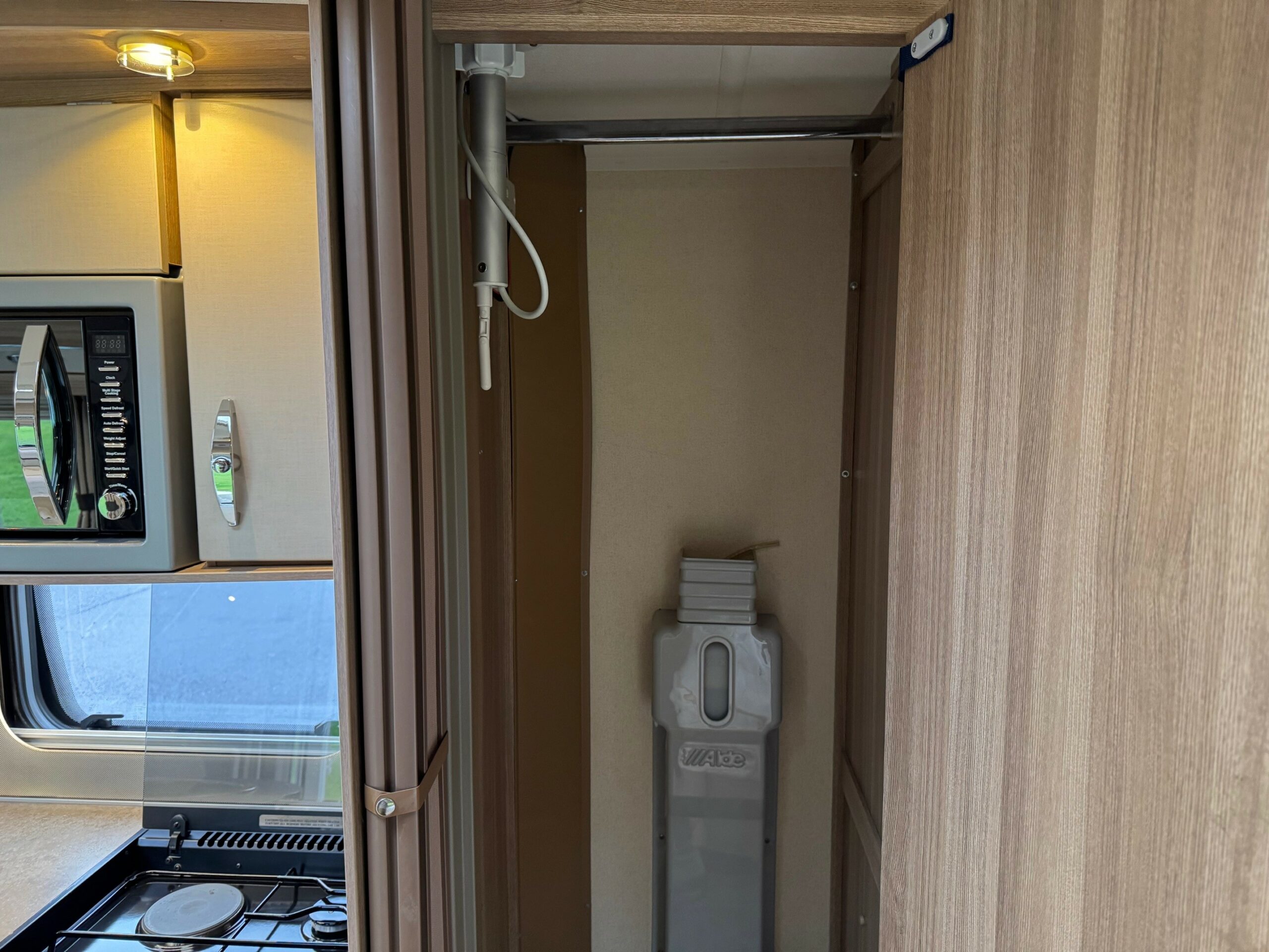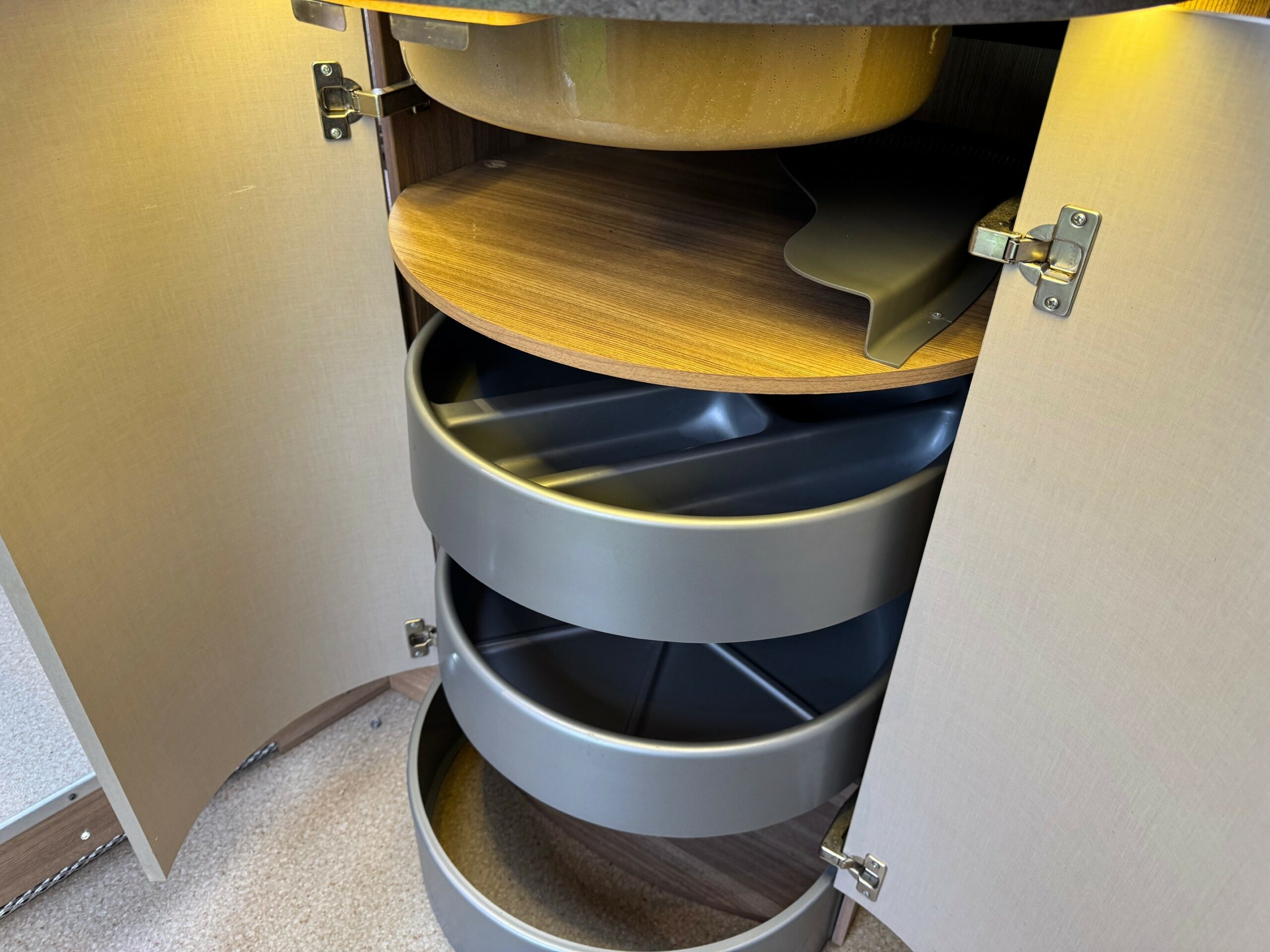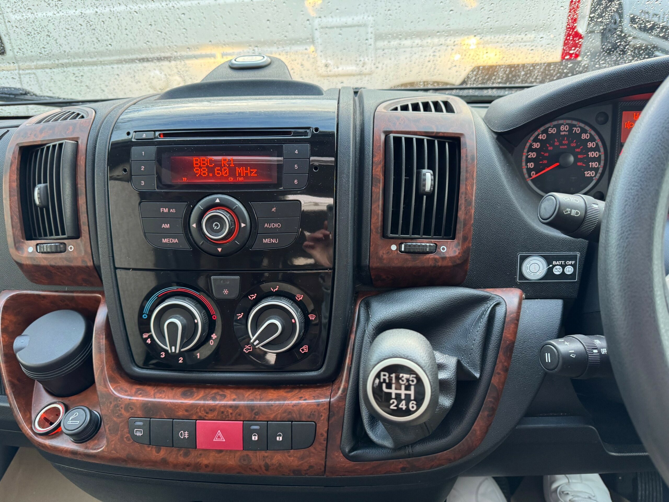 A lovely spacious 4 berth low profile motorhome. Only 7m in length but offering an extremely spacious feel. Rear French bed with storage underneath. Rear side washroom, the configuration allows you to create a separate enclosed shower cubicle. Large Wardrobe. Mid kitchen that has everything you would need for your trips away; microwave, 3 ring gas hob, electric hot plate, oven & separate grill, 165l fridge/freezer. The front lounge has 2 bench seats & 2 captains chairs. The lounge also creates a large double bed.