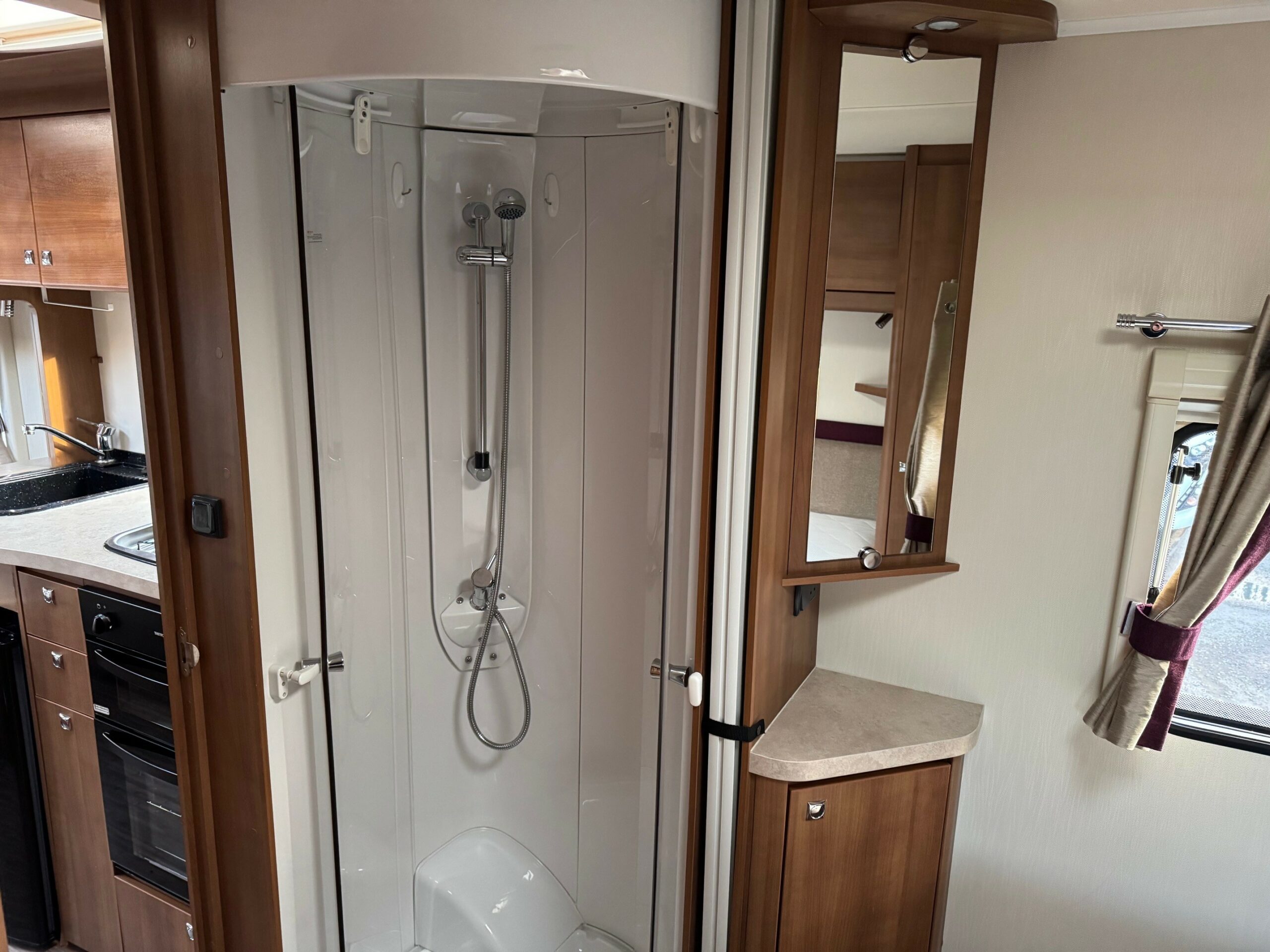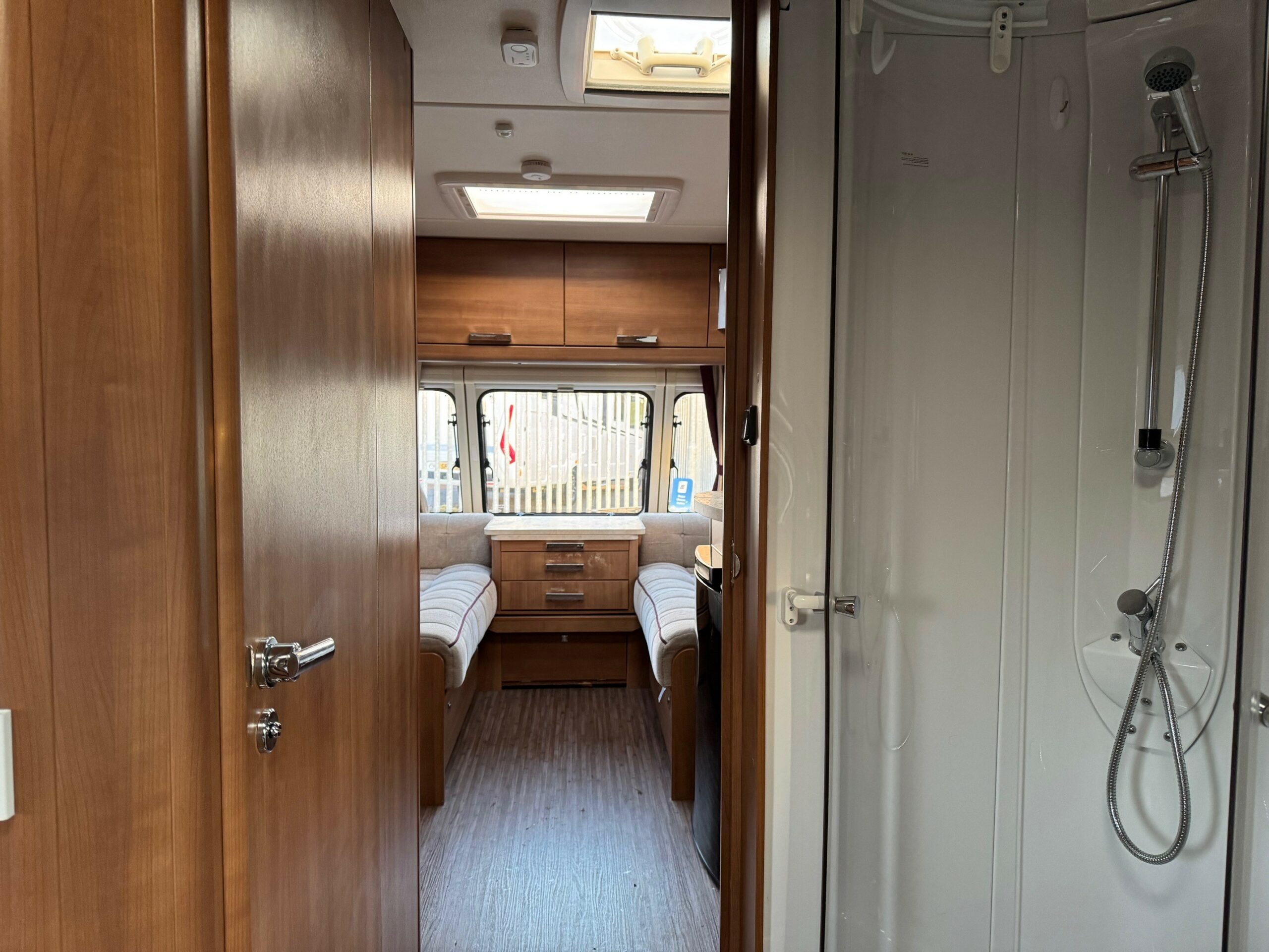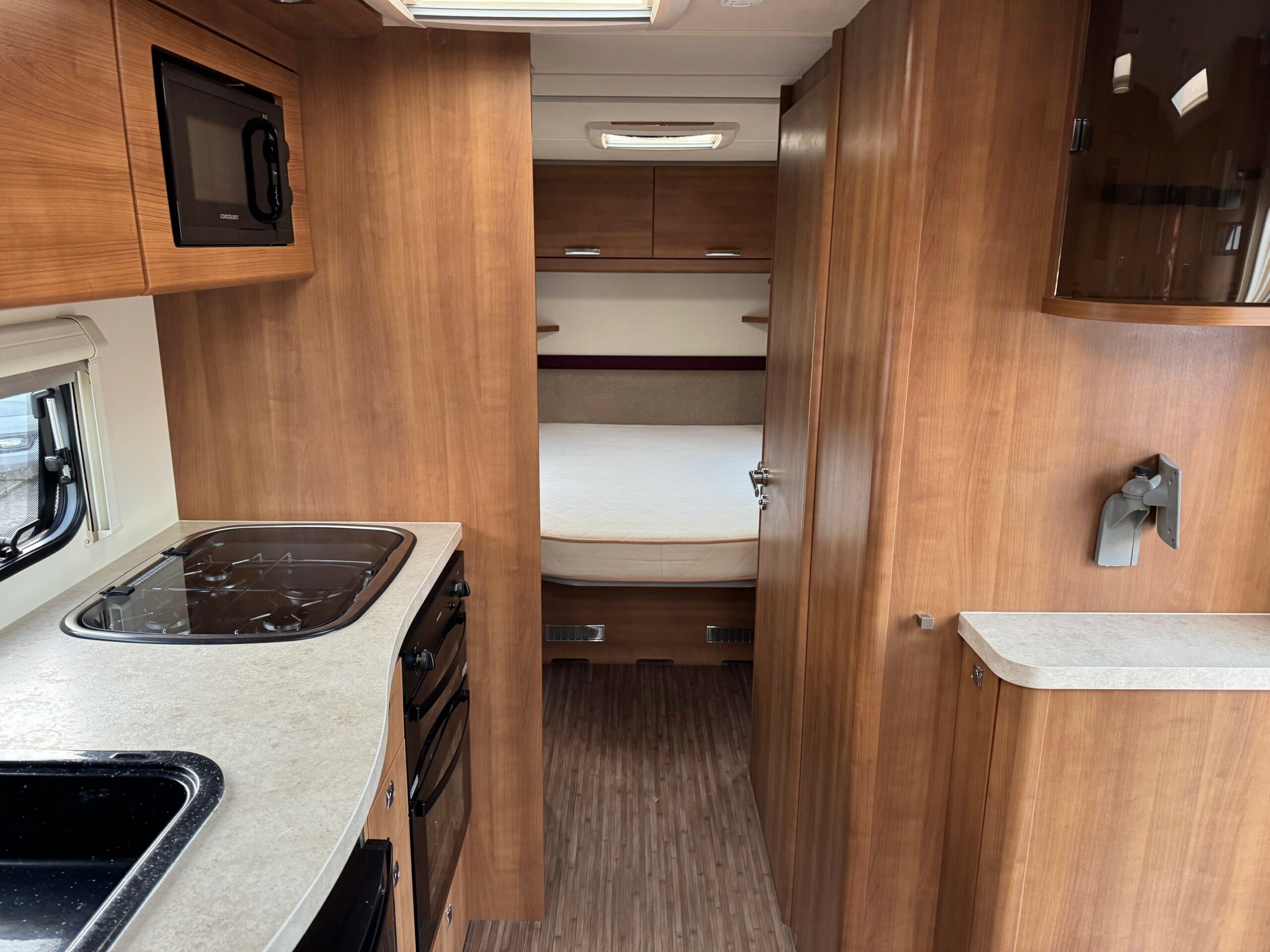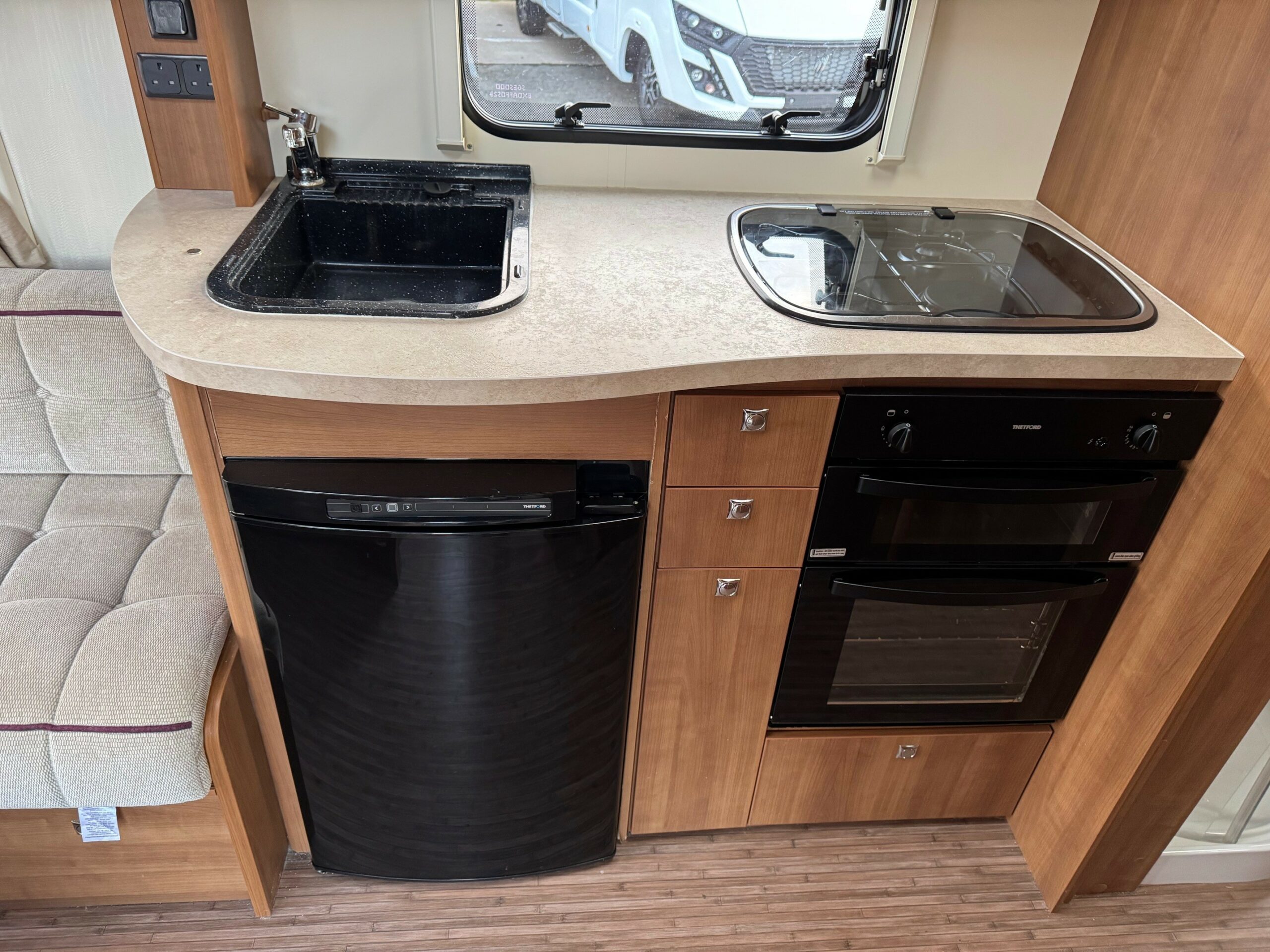 A stunning 4 berth single axle touring caravan. Rear fixed island bed with storage underneath. The bedroom area can be full shut off from the front of the vehicle. Separate toilet & shower. Mid kitchen with 3 ring gas hob, electric hot plate, oven & grill, microwave & 3 way fridge/freezer. Large front lounge with 2 bench seats. The lounge can also create a large double bed. Fitted with ALDE heating & Motor Mover.