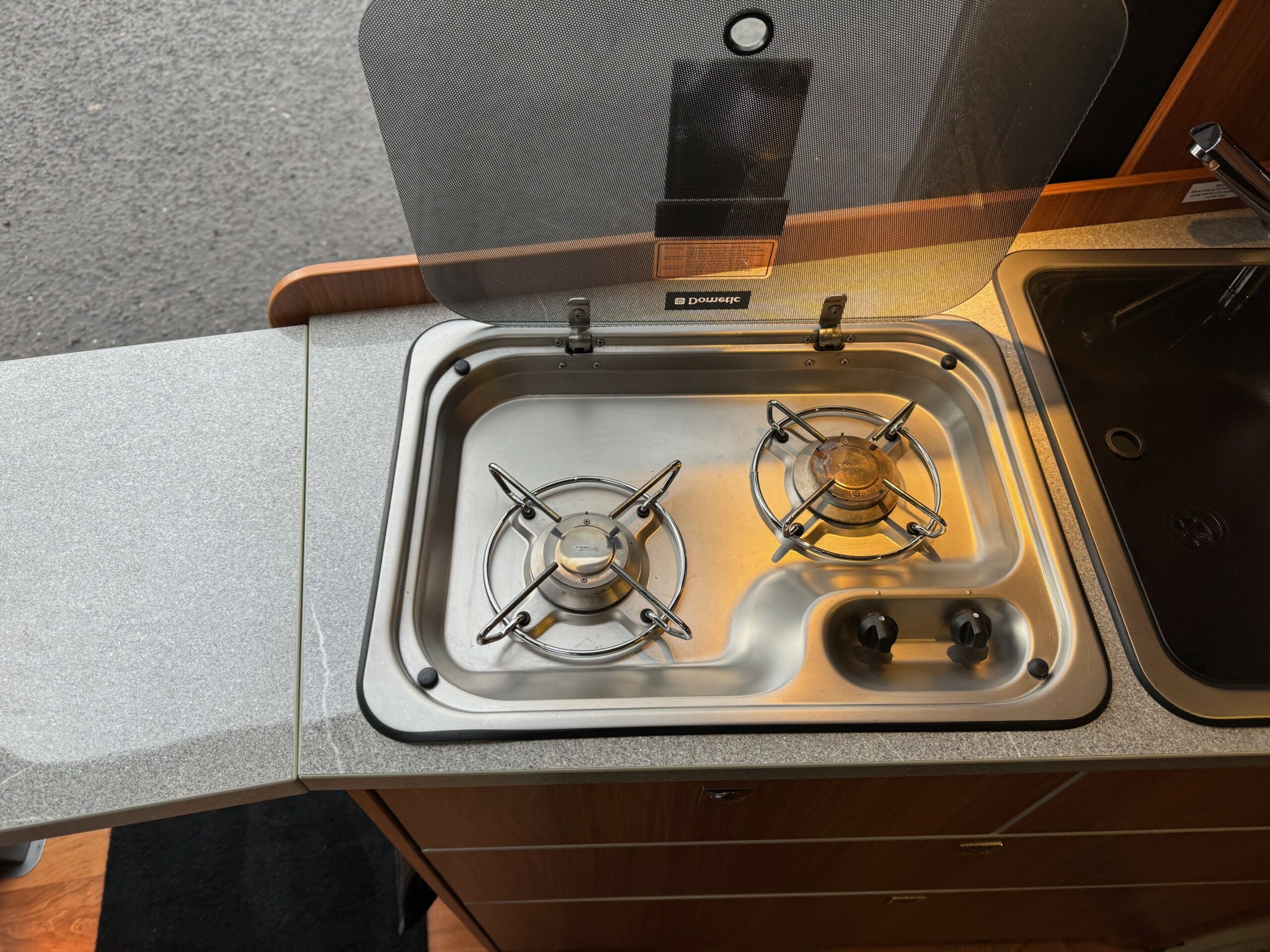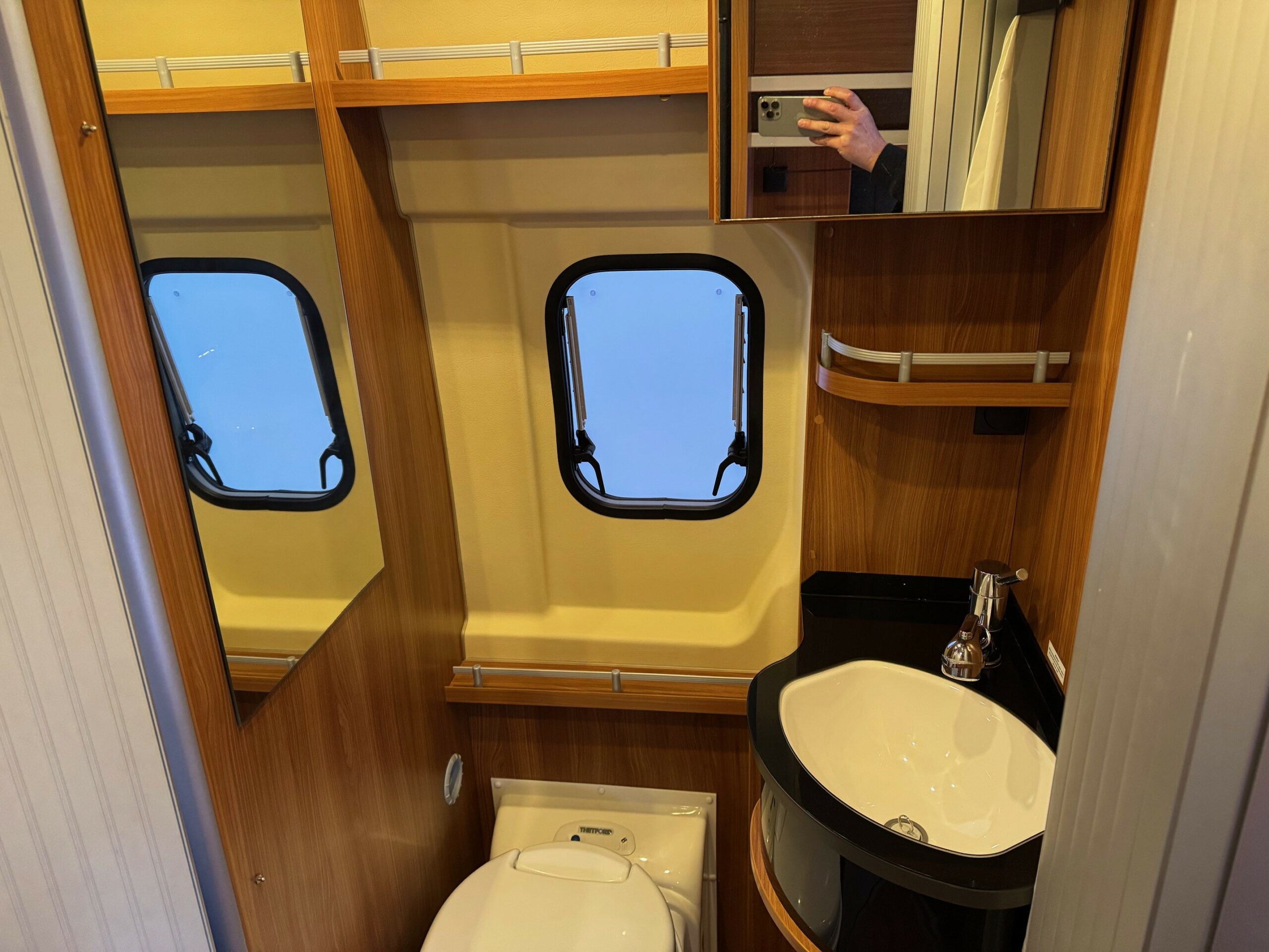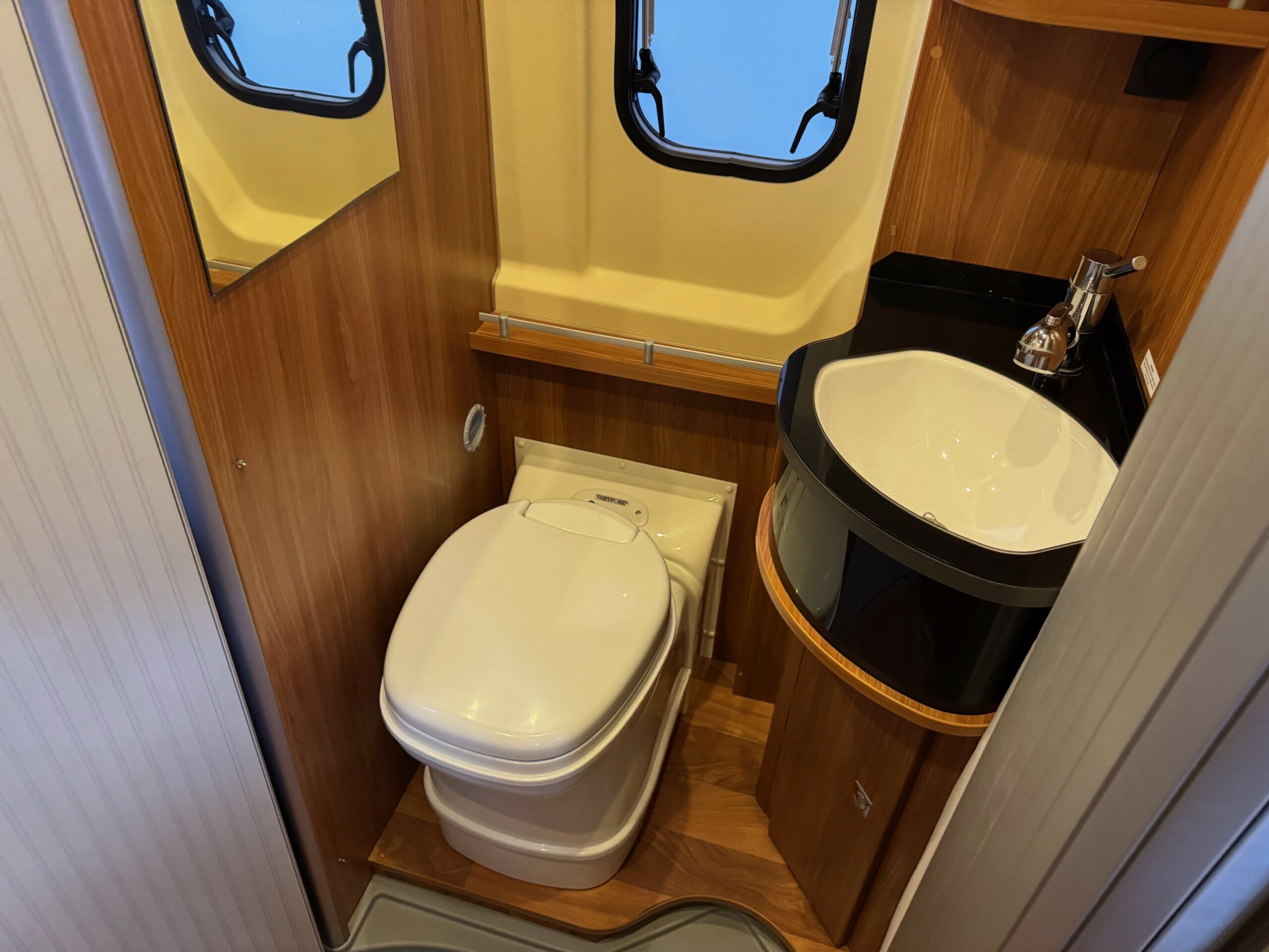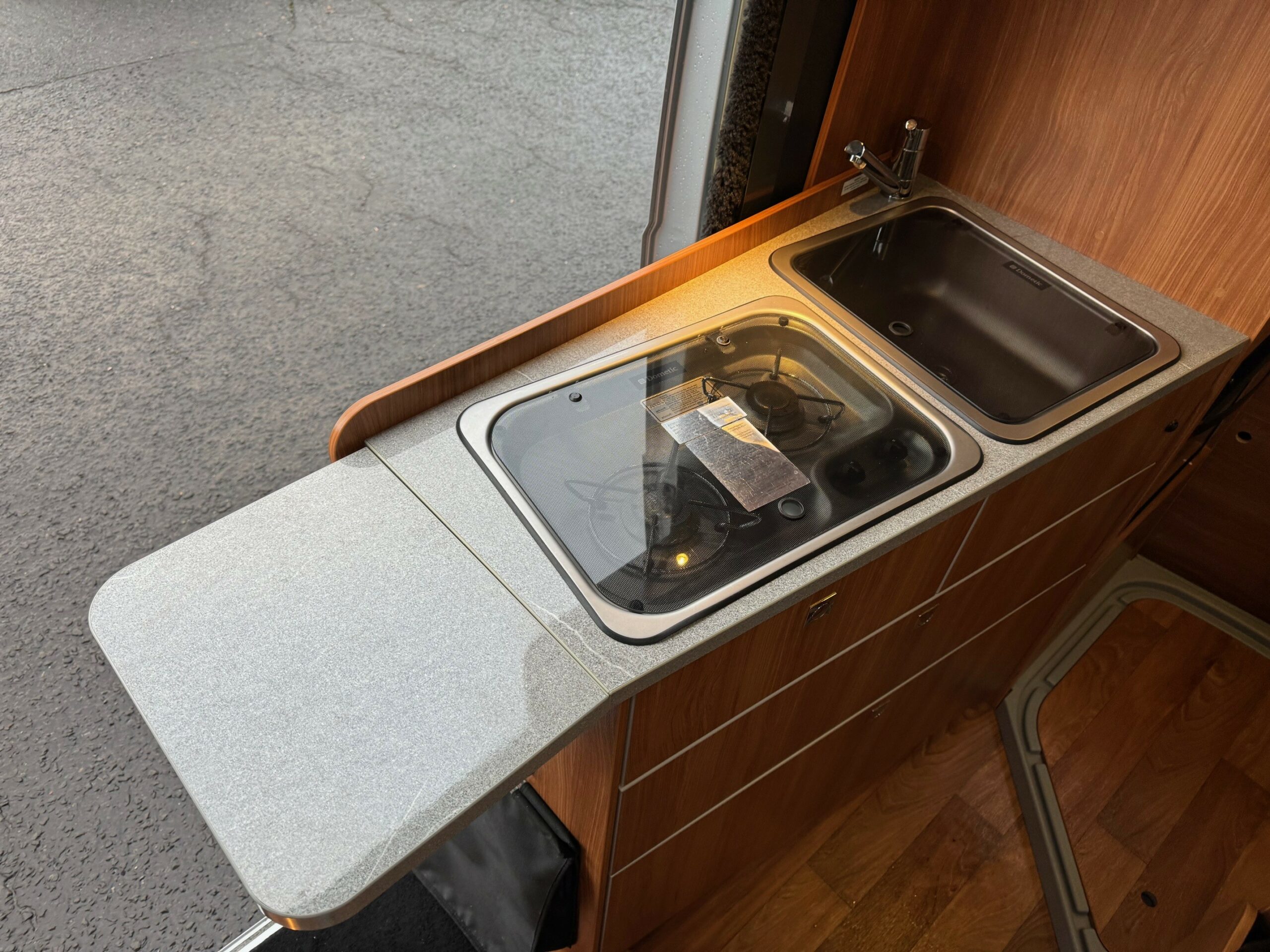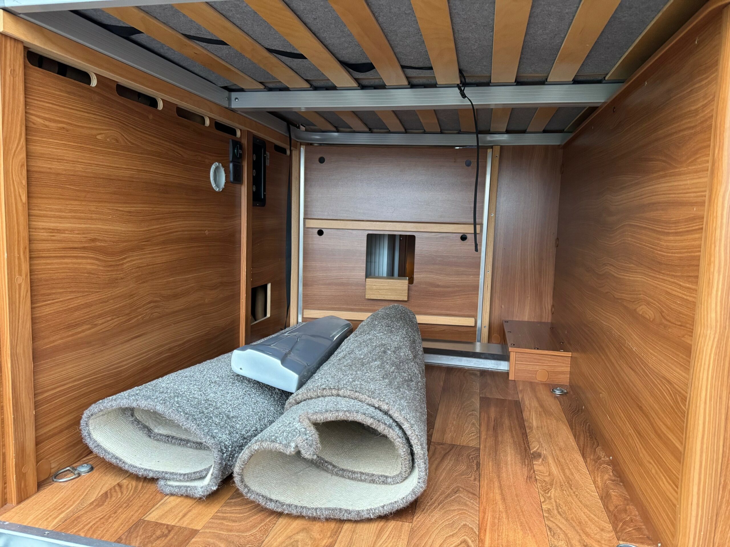 This is a real head turner of a campervan with German build quality. Sub 6m. 4 belted travelling seats. Rear transverse fixed bed with lots of storage underneath. Mid washroom with the clever Globecar washroom enabling to create a fully enclosed shower cubicle. Large fridge/freezer, 2 ring gas hob & oven/grill. Front lounge/dining area with extendable table, 2 captains chairs and forward facing seats.