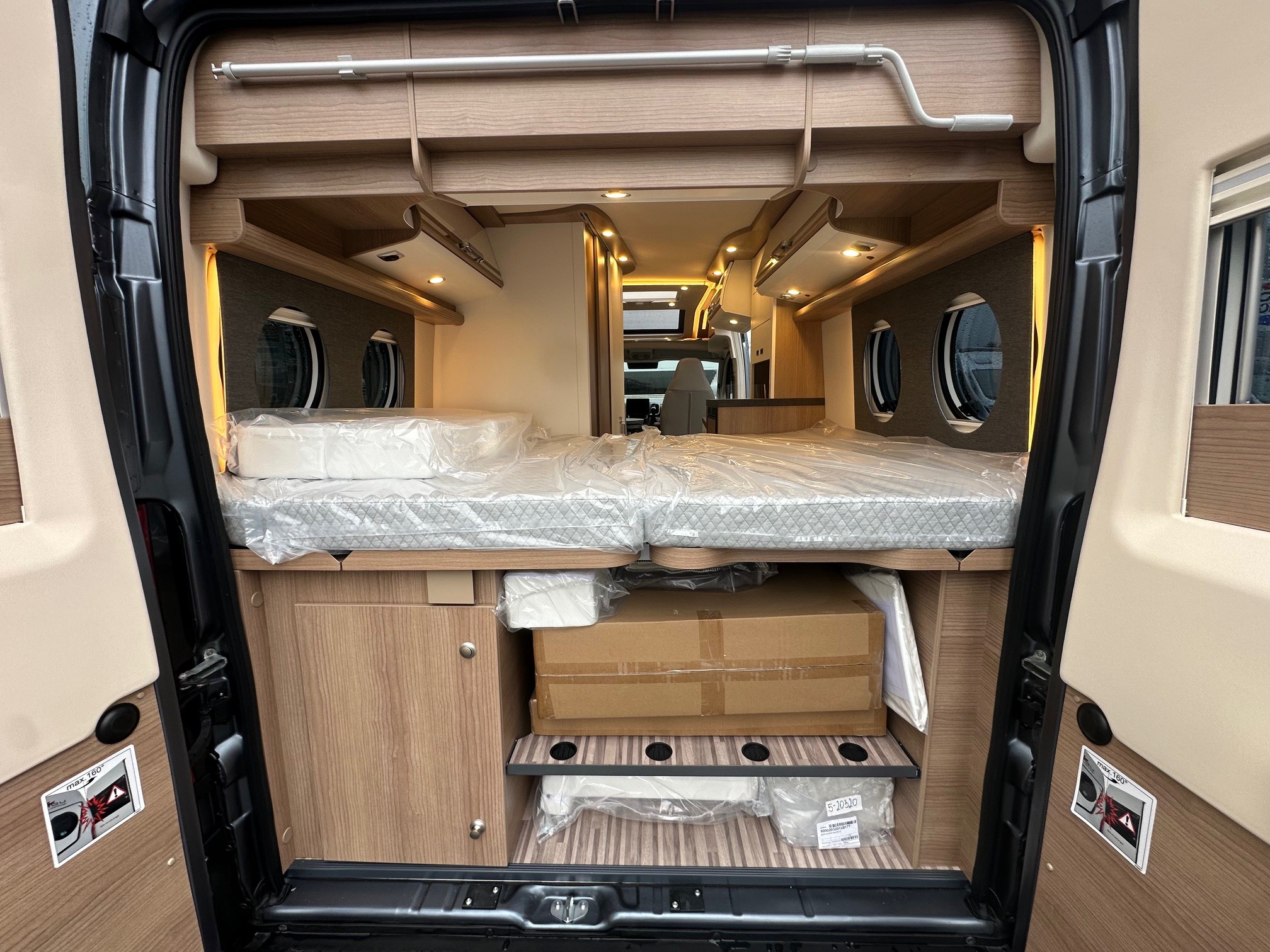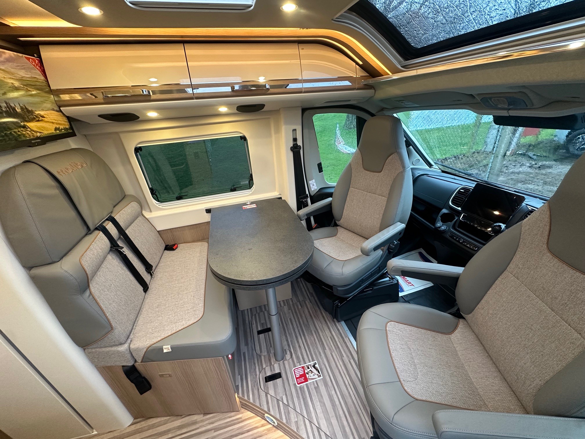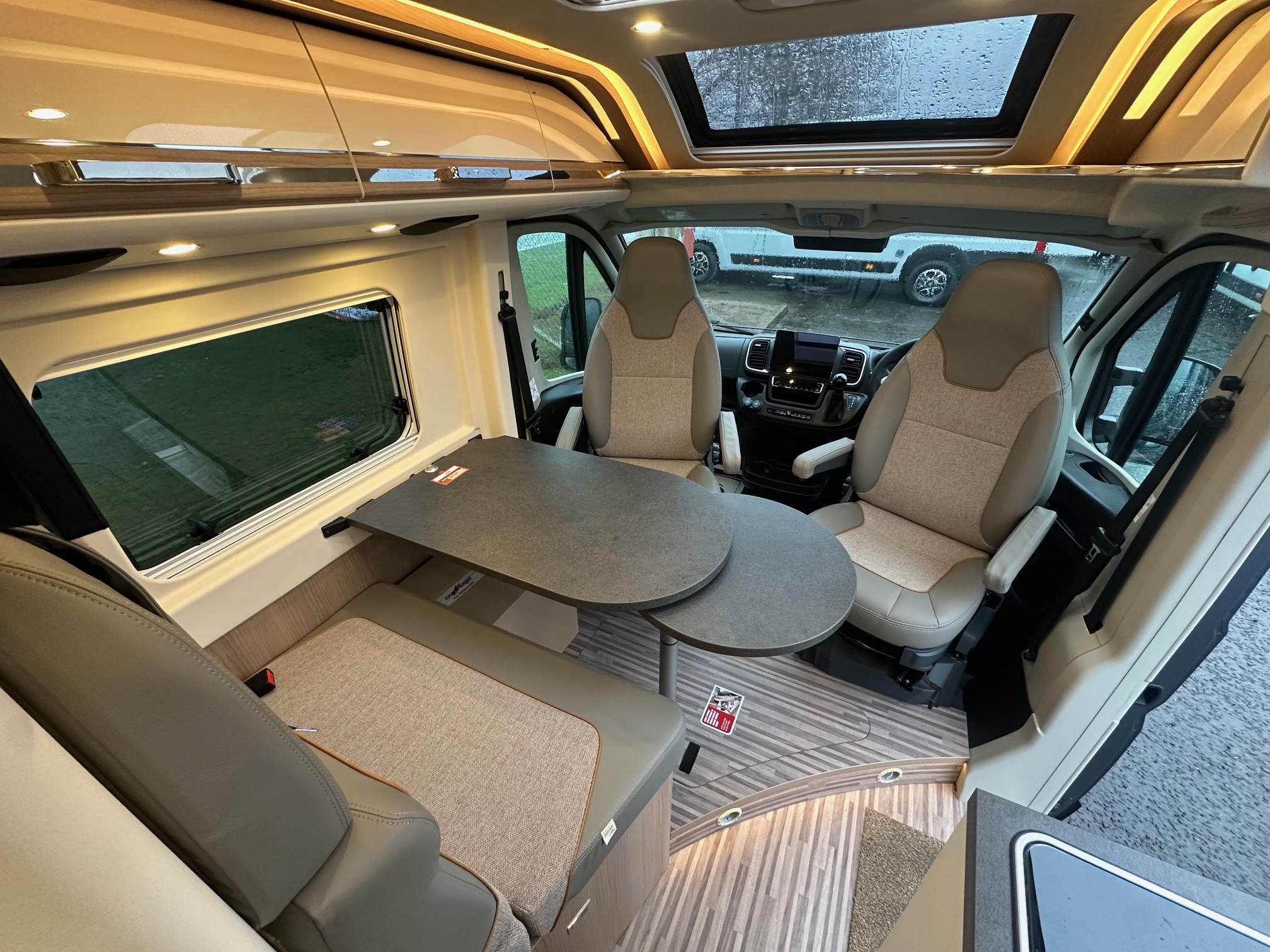 - Spacious Living: The GT Pack provides an enhanced feeling of space with features like upgraded ambient LED lighting and a ceiling canopy that extends the view into the cab area. The lounge area can be converted with the 3rd berth bed make up kit, offering flexible sleeping arrangements.