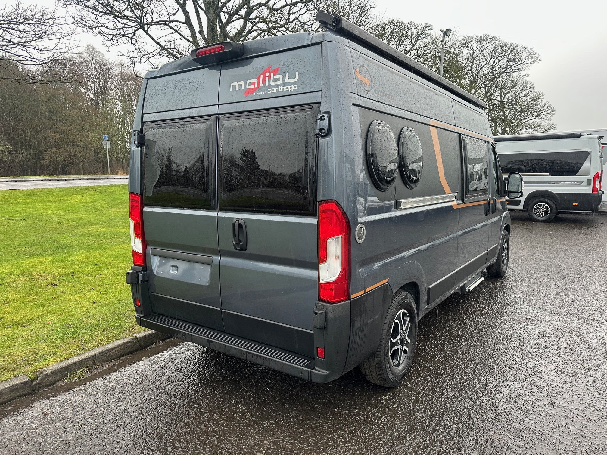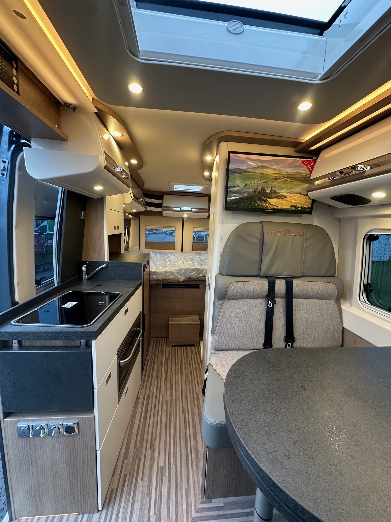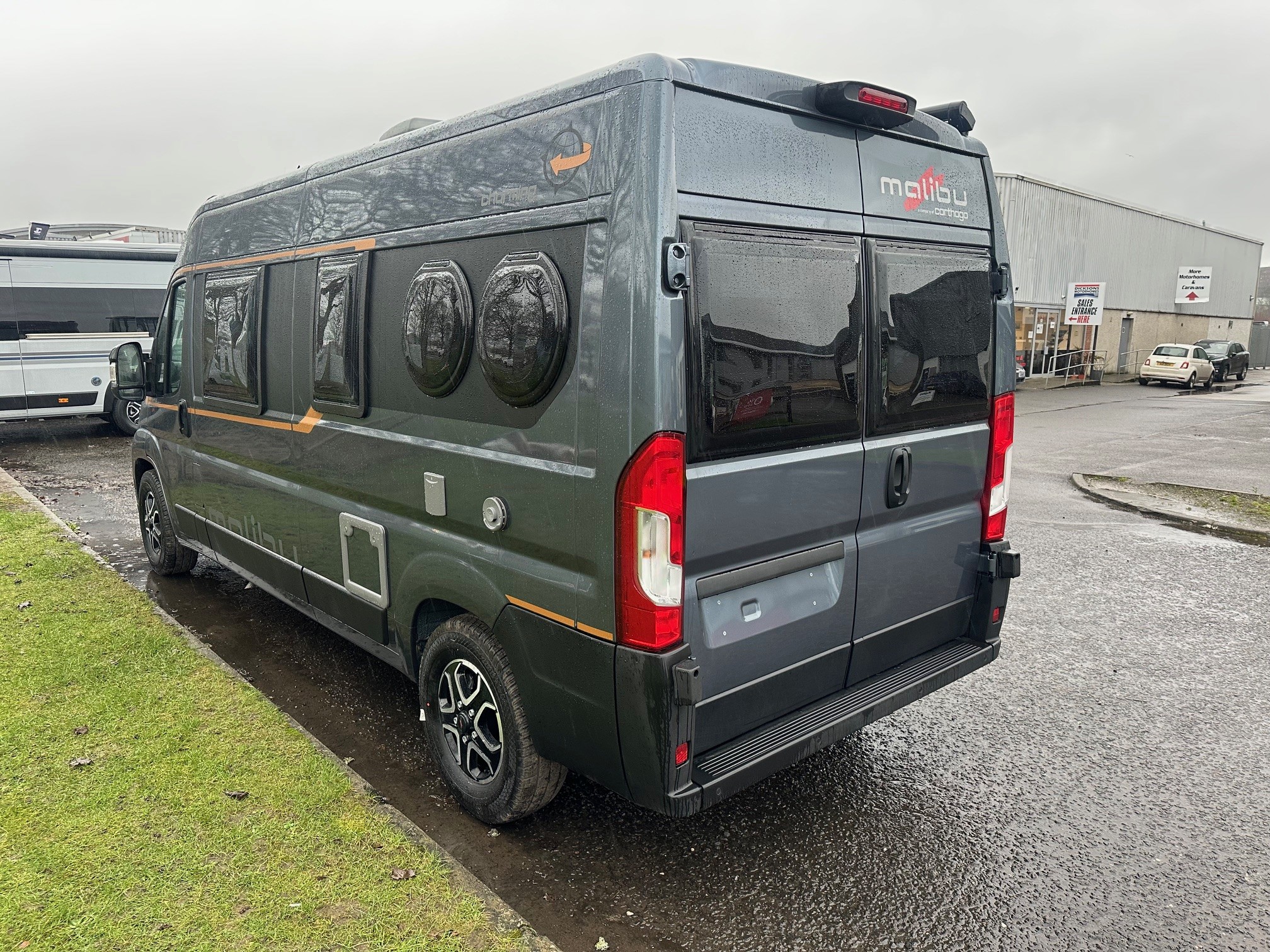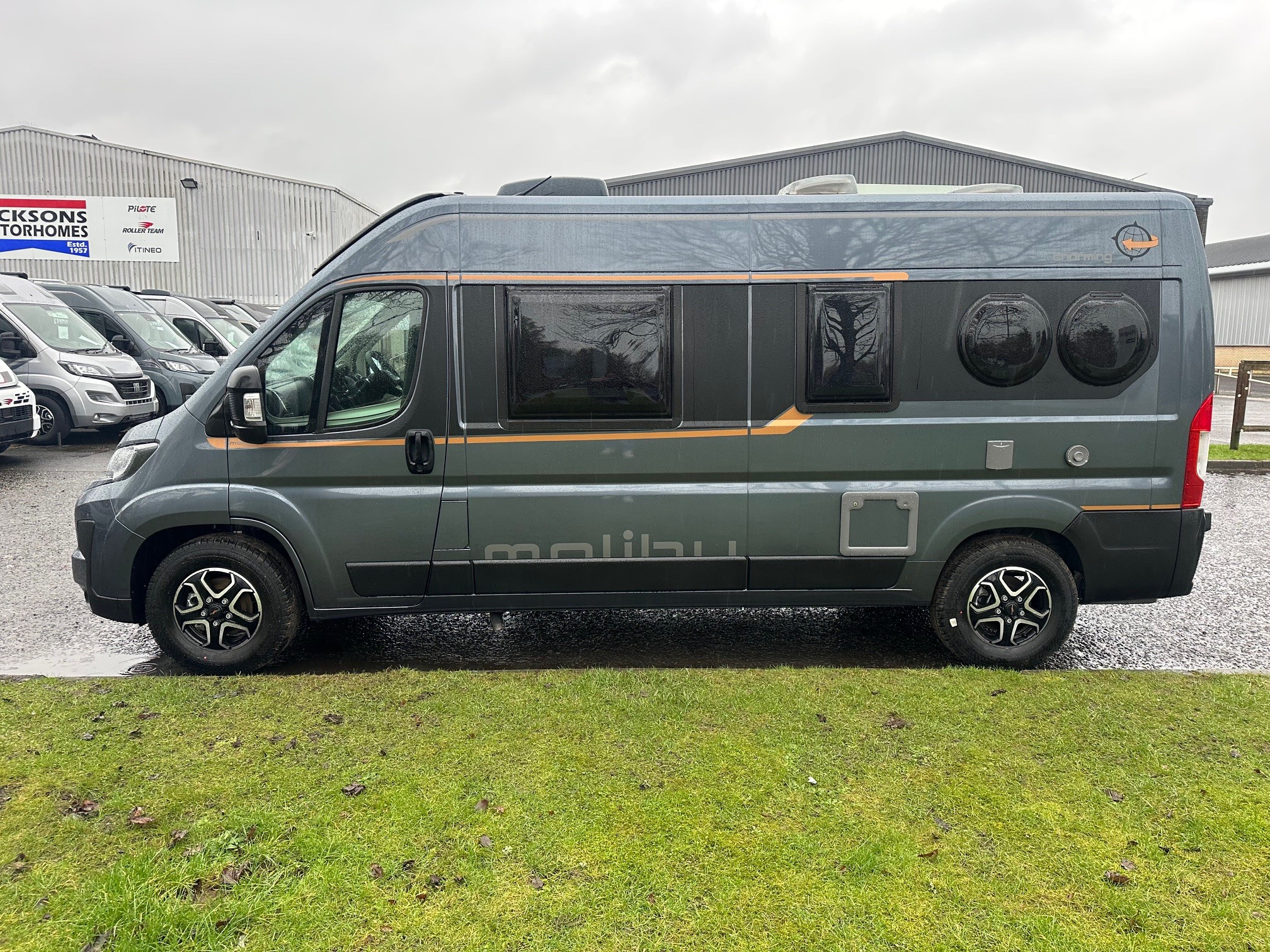 - Attention to Detail: The vehicle comes complete with the Malibu table and chair set, and the Malibu world of sleep and decorative cushions, blanket and fitted sheet package ensures maximum comfort from day one. Porthole windows on the driver and passenger side in the bedroom add a distinctive, stylish touch to the rear sleeping area.