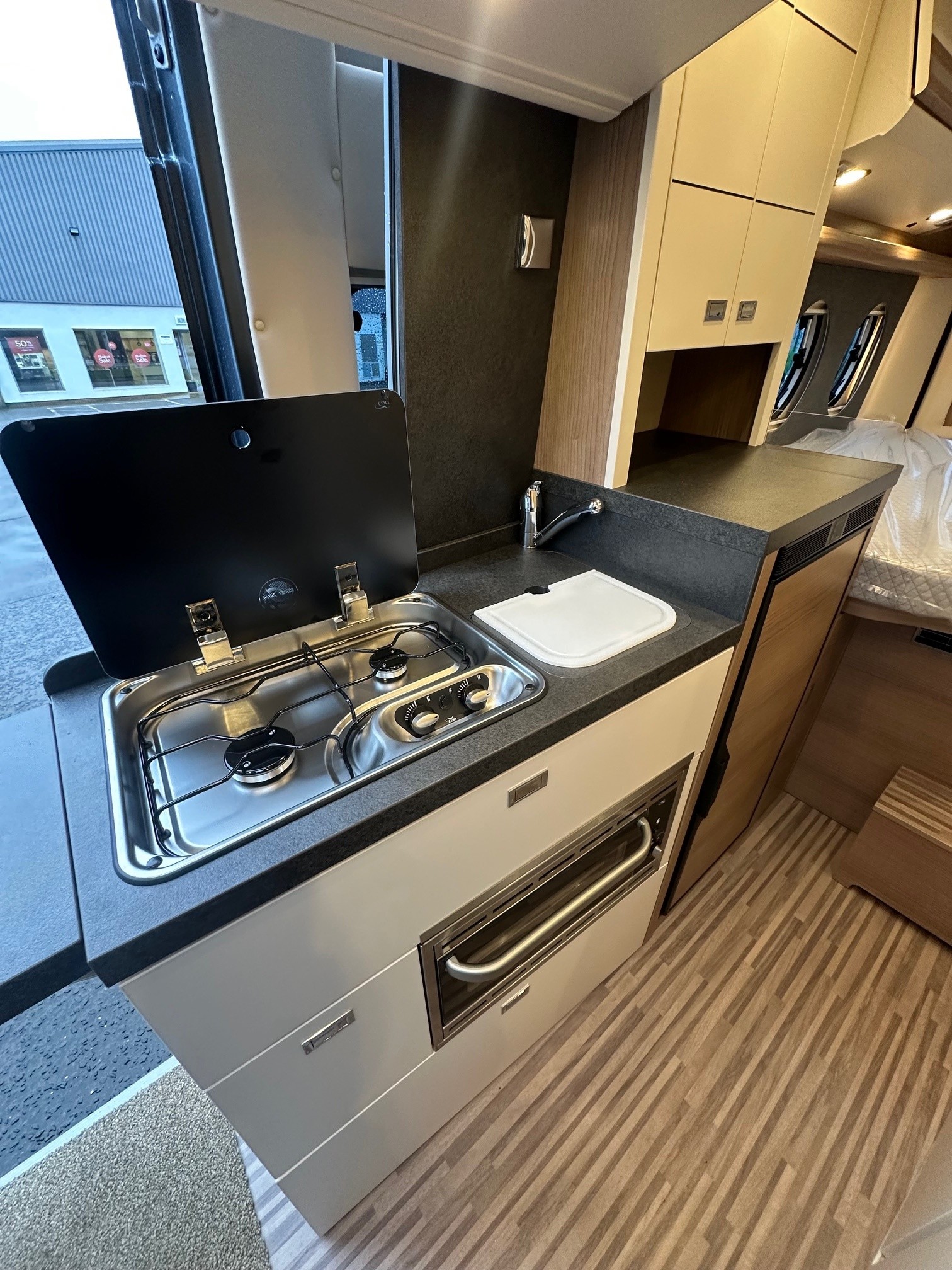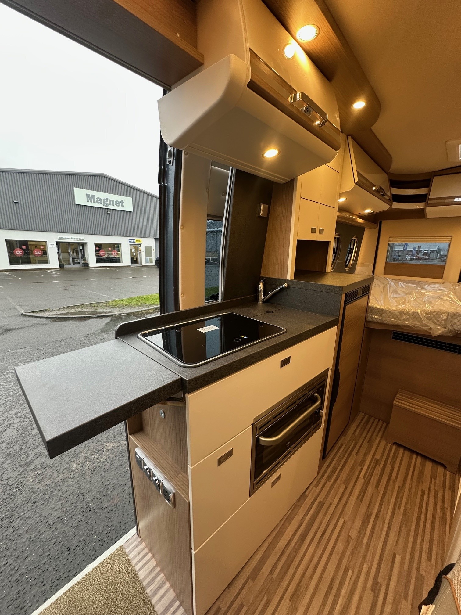 - Gourmet Kitchen: The XL comfort kitchen includes extra-wide, deep drawers, an 84L compressor fridge, and a fitted oven and grill for home-cooked meals on the road.