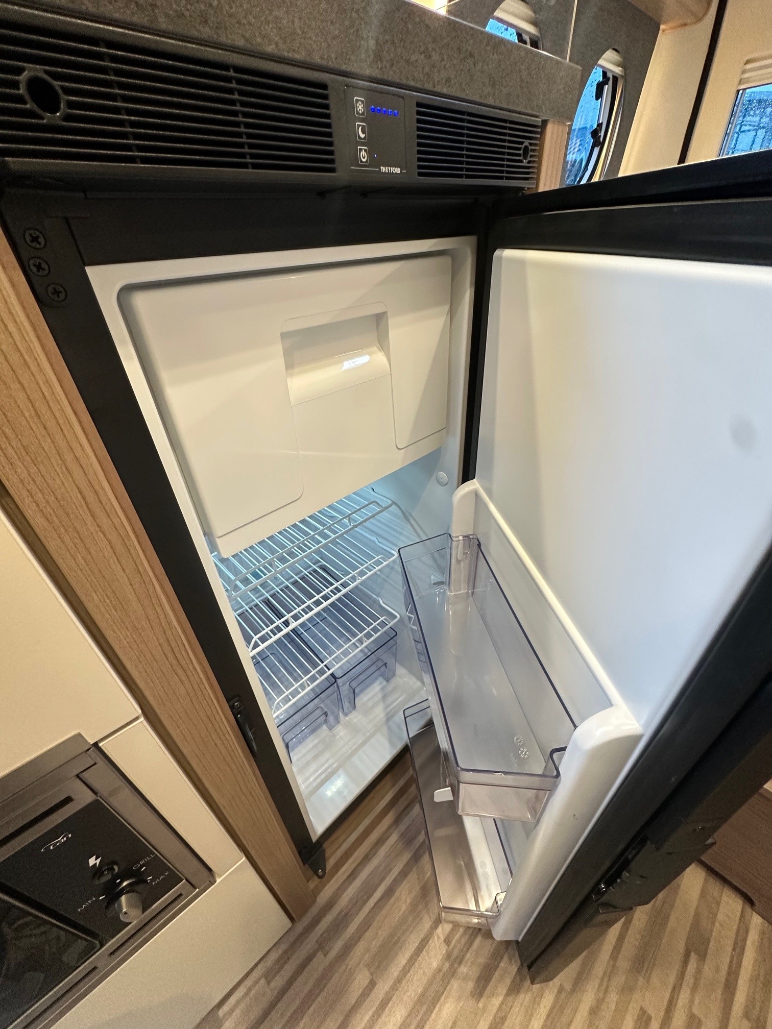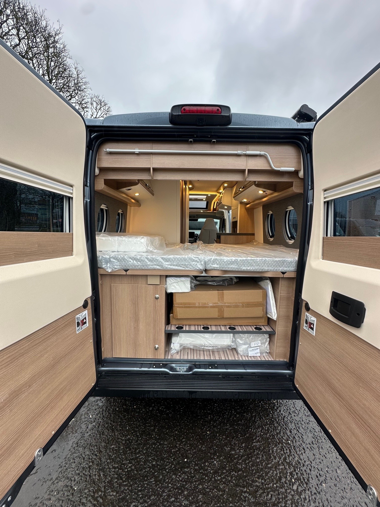 - Practical Extras: A fitted awning extends your outdoor living space, and a TV bracket for a 24″ TV is already in place for your entertainment needs. A removable double floor in the rear storage offers versatile storage solutions for all your gear.
