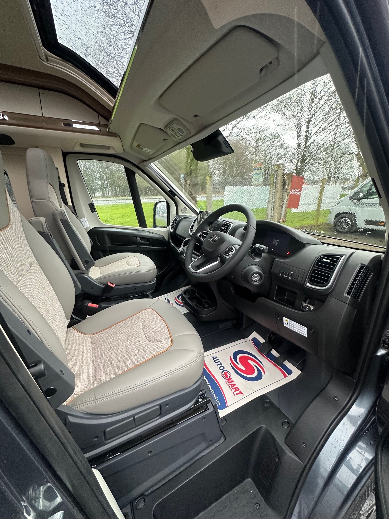 . This specific model, finished in a stunning Iron Metallic Grey paintwork and benefiting from a desirable right-hand drive pack and Fiat automatic gearbox, is loaded with an extensive list of factory upgrades, making it a true home-away-from-home on the road.