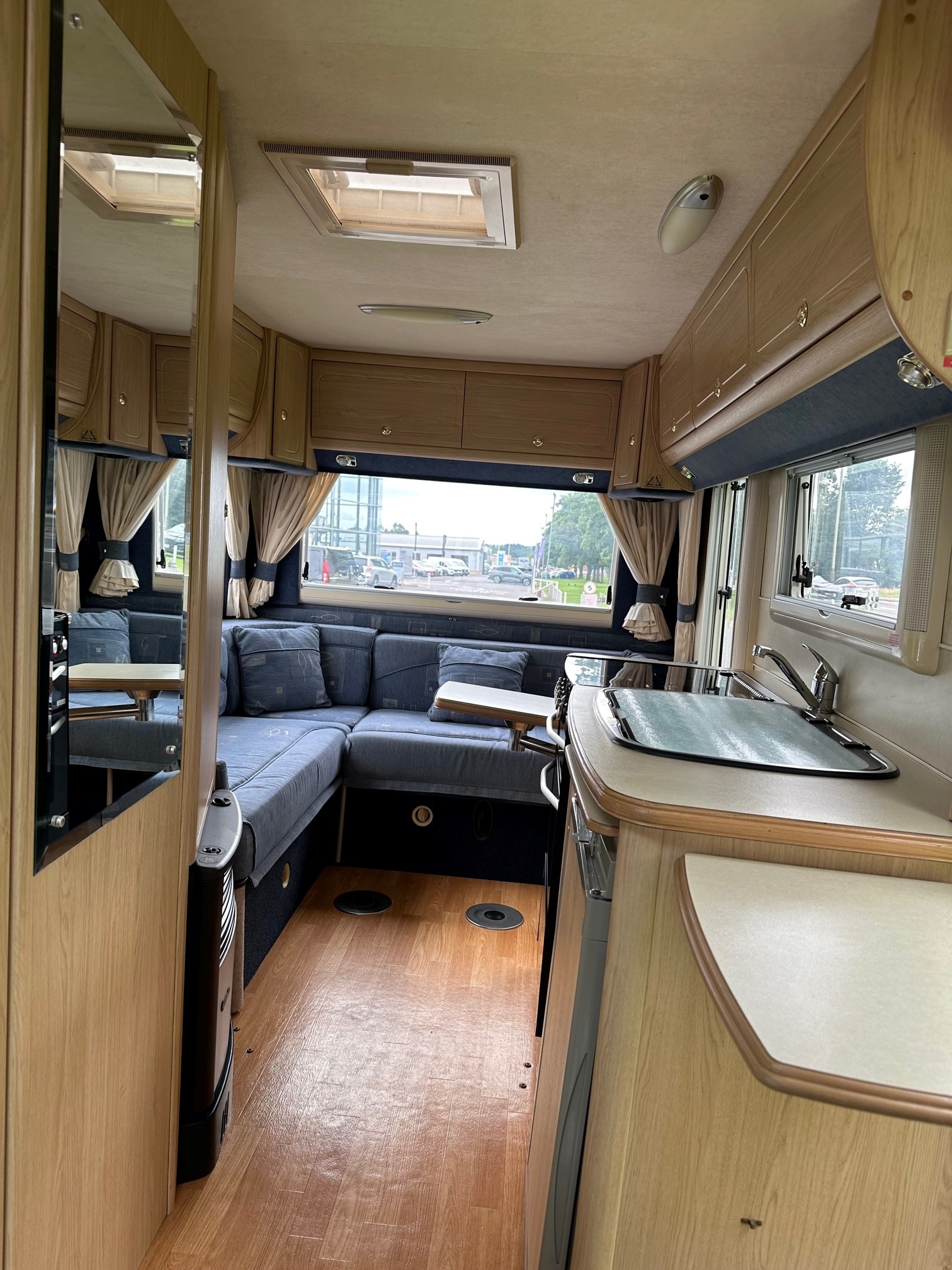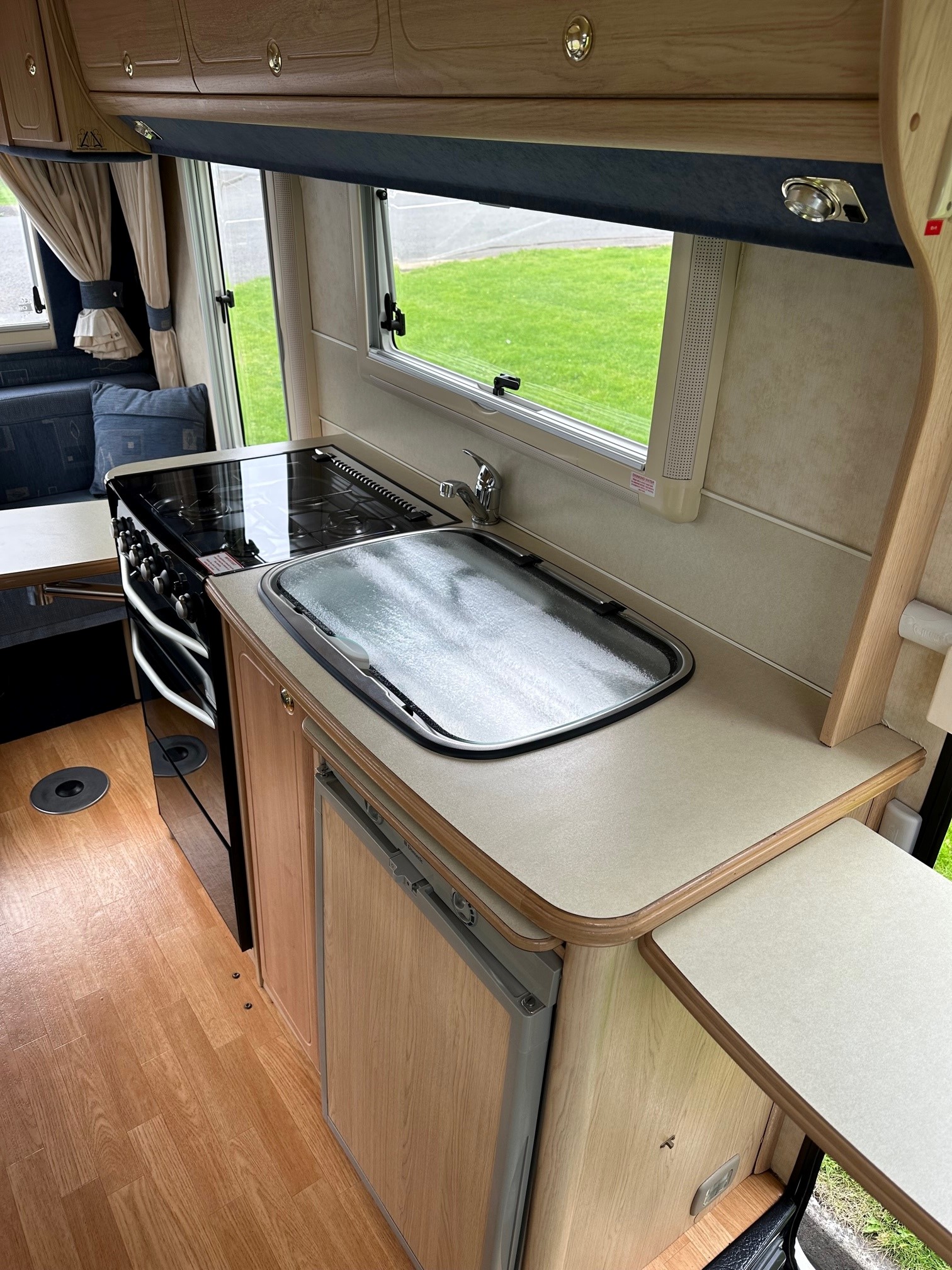 - Well-Equipped Galley:Â Features a full oven, grill, 3-burner gas hob with an electric hot plate, and a 3-way fridge.