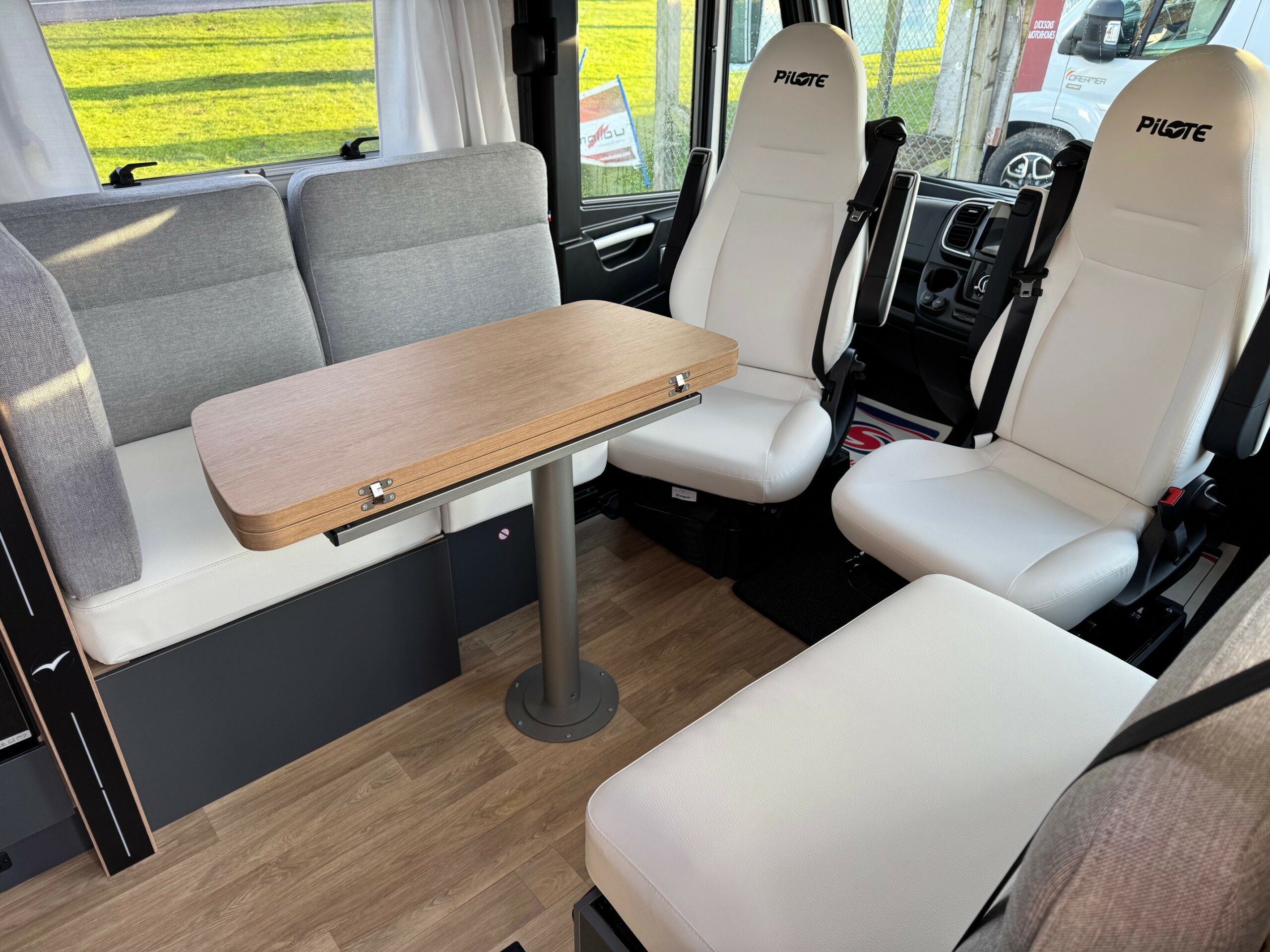 This highly spec’d 7.5m A-Class with exteremely popular layout of rear fixed island bed above a large garage. Wardrobes either side of the island bed along with high and low level storage cupboards. Mid washroom with separate shower cubicle. The kitchen area has large fridge/freezer, 36l oven/grill, 2 ring gas hob and generous storage for all your cooking equipment. Spacious front lounge with 2 side facing seats both belted. Folding dining table & 2 captains chairs.
