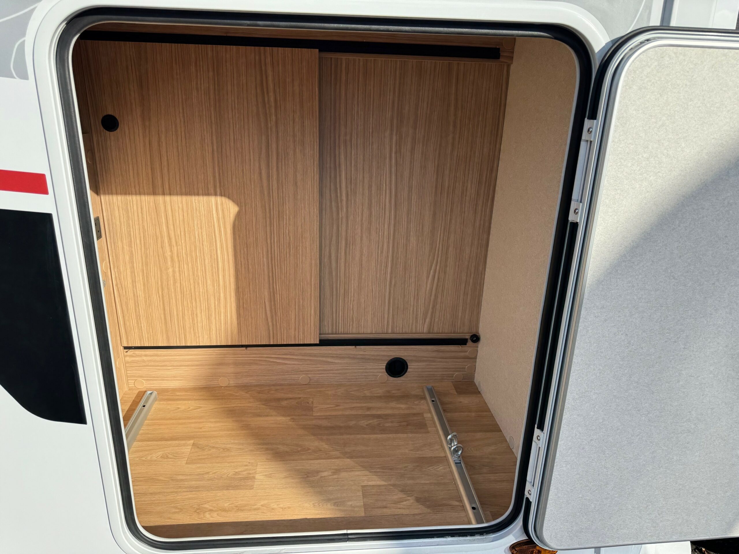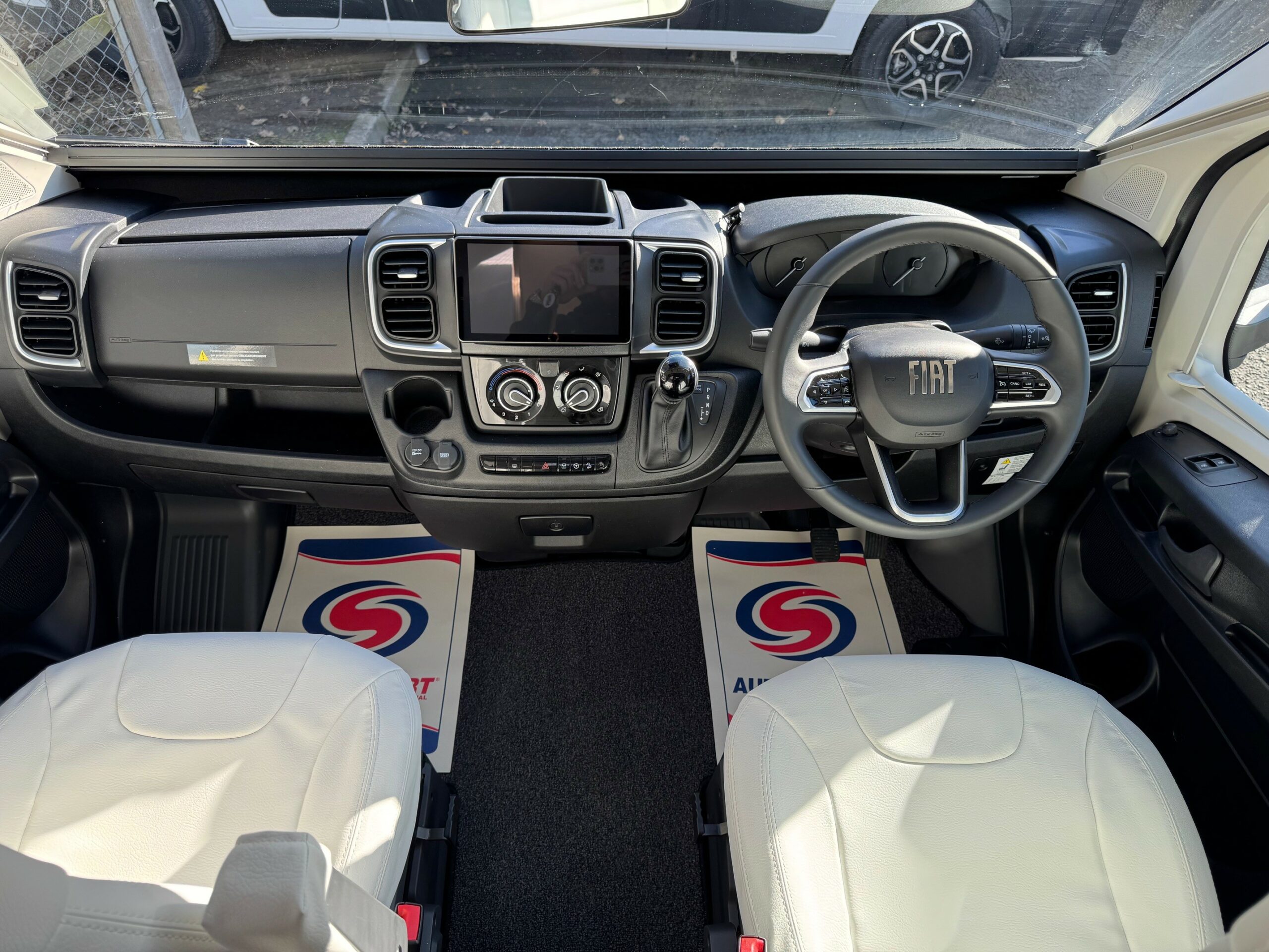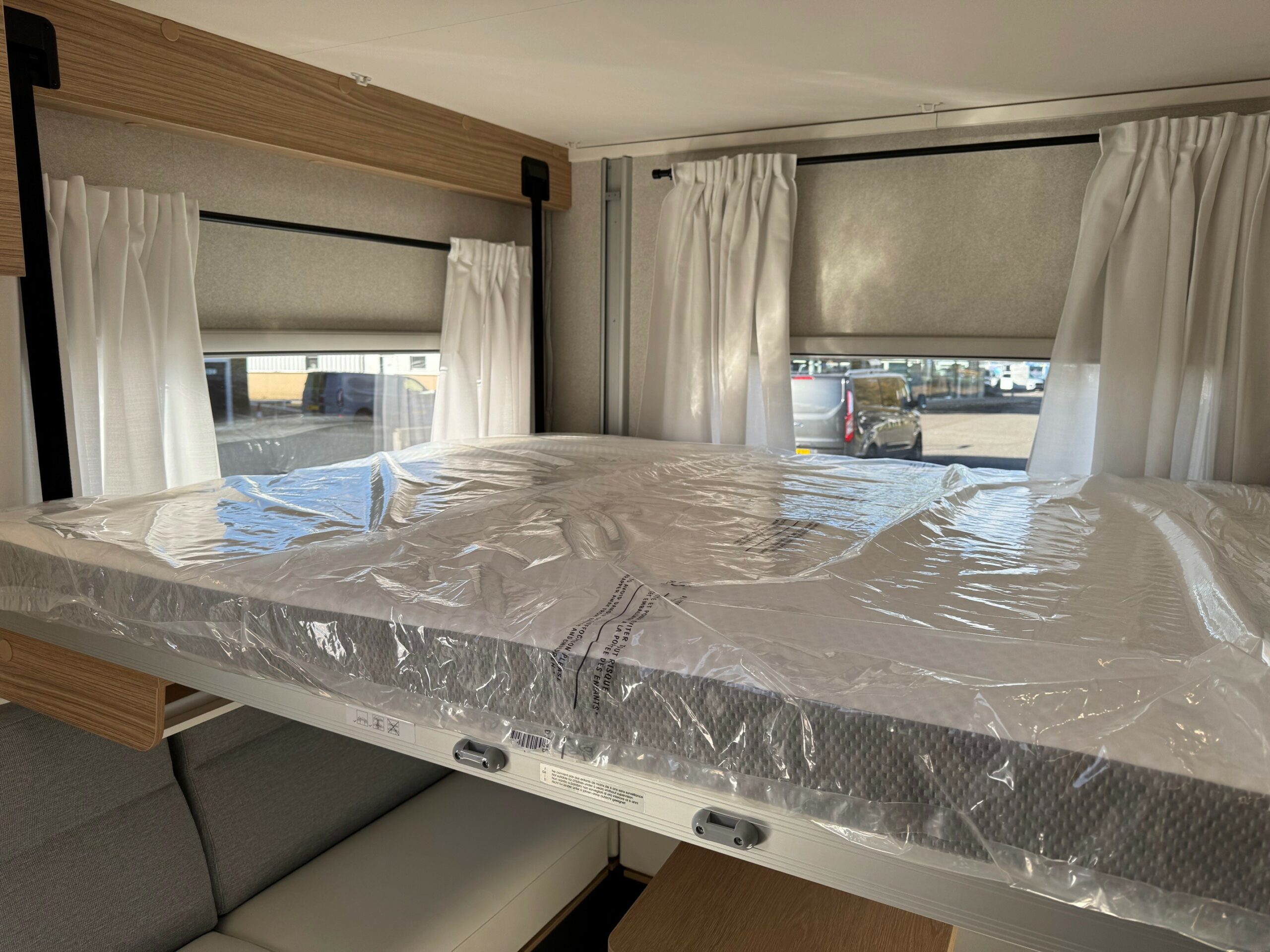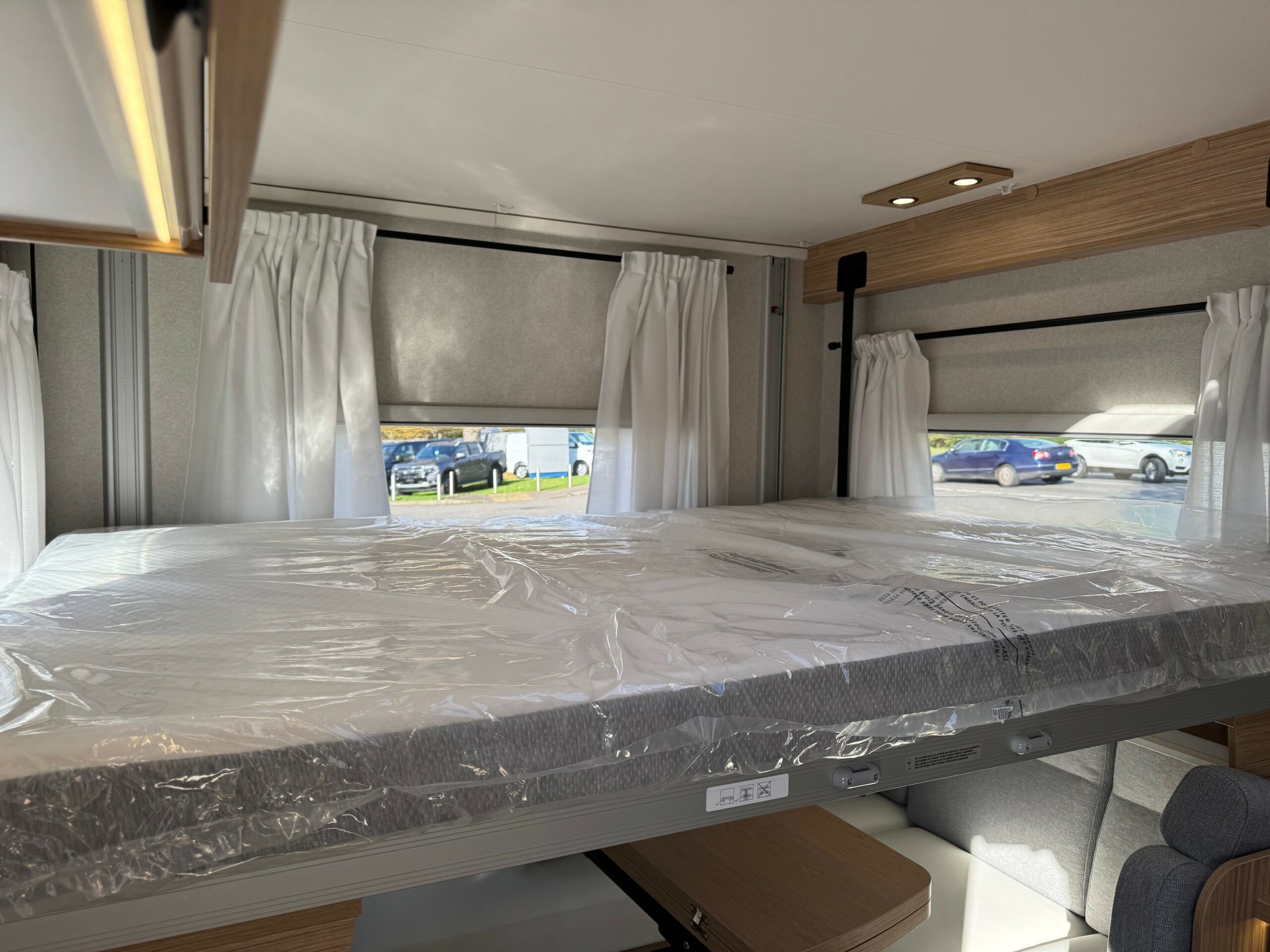 The vehicle comes fitted with as standard; Awning, 140bhp Auto engine, EPB Pack, Rims Pack, 9″ Media Centre Inc Apple/Android Car Play, TV Bracket, 200Ah Lithium Battery, x2 100w Solar Panels, TRUMA 6 DIESEL/ELECTRIC Heating, External Shower, Sliding Skirt Locker Drawer etc.