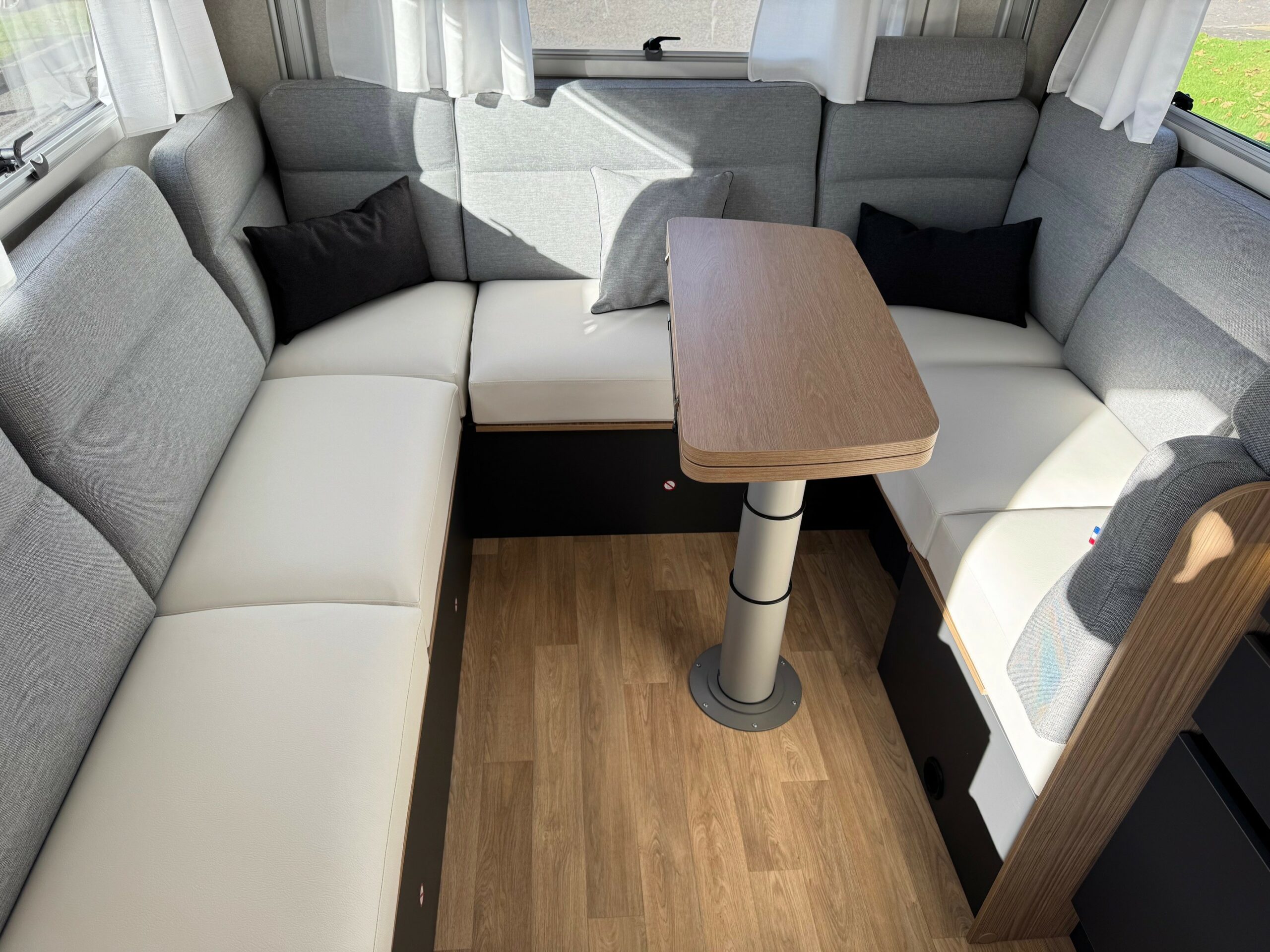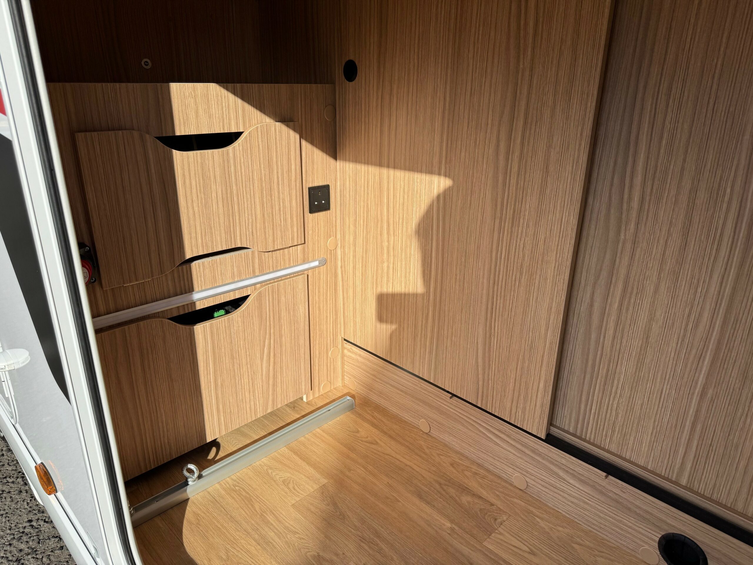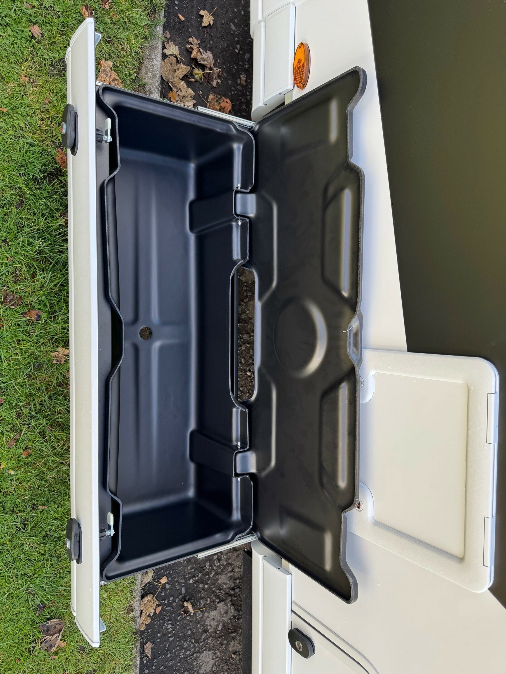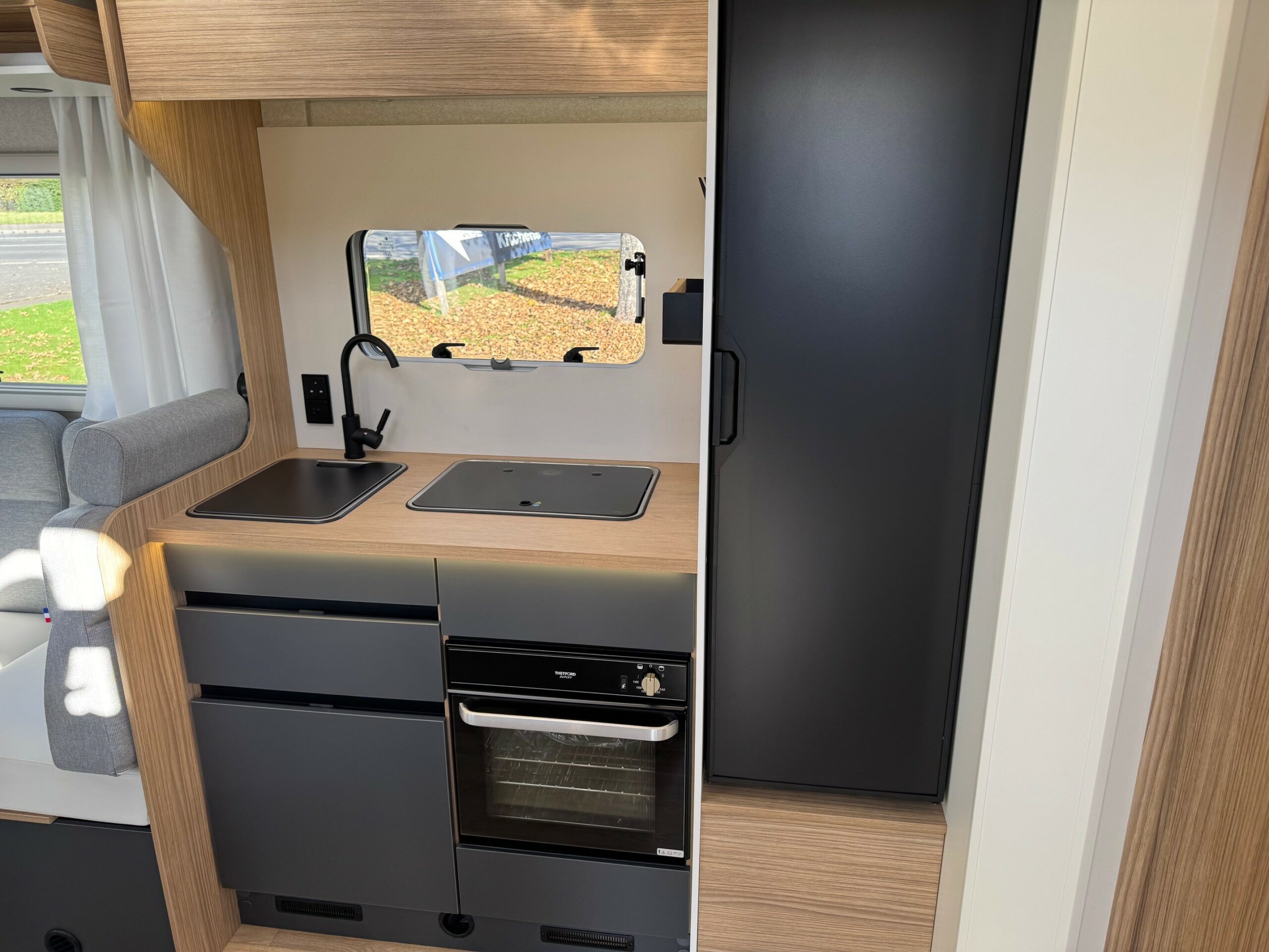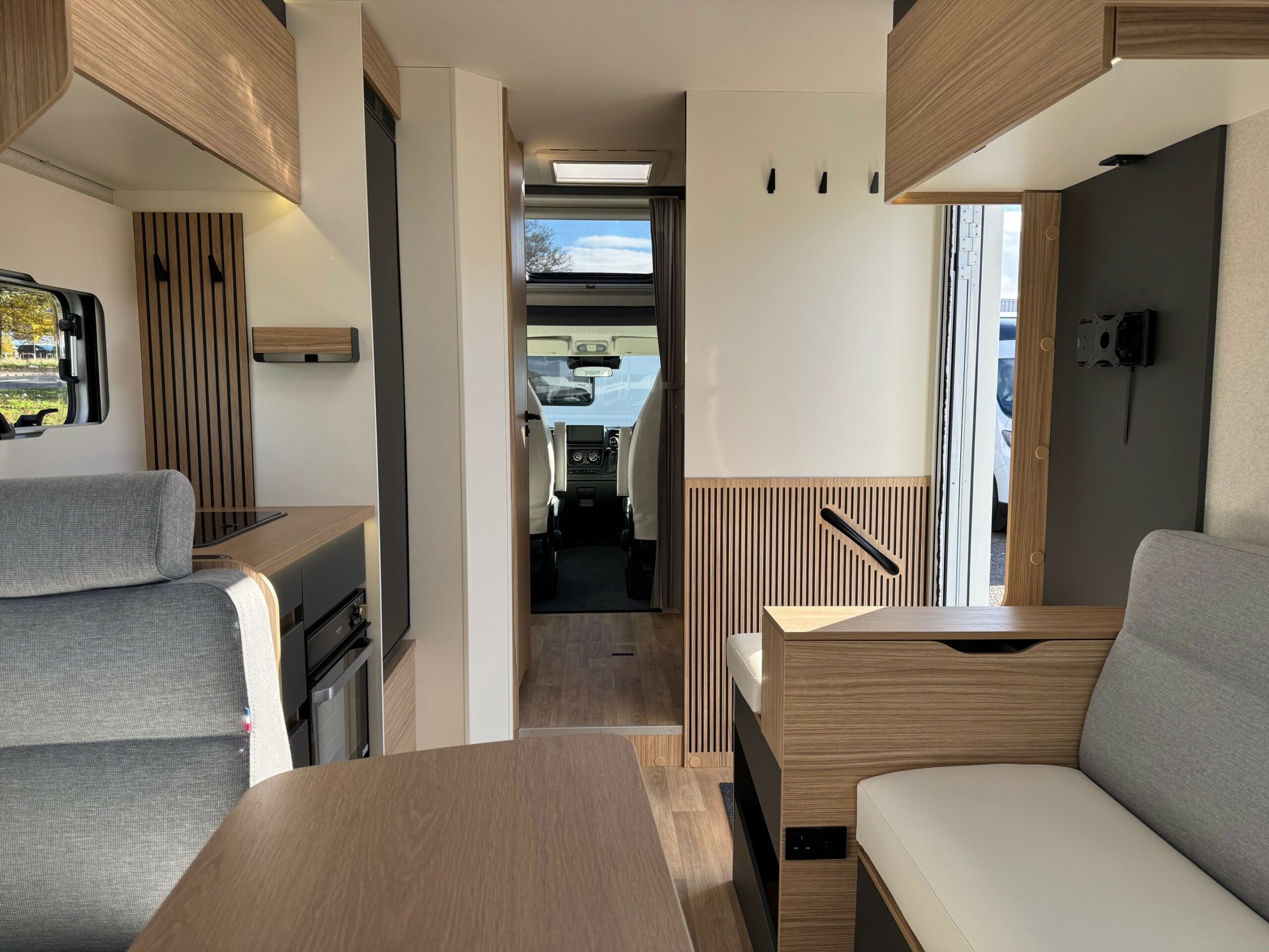 The vehicle comes fitted with as standard; Awning, 140bhp Auto engine, EPB Pack, Rims Pack, 9″ Media Centre Inc Apple/Android Car Play, TV Bracket, 200Ah Lithium Battery, x2 100w Solar Panels, TRUMA 6 DIESEL/ELECTRIC Heating, External Shower, Sliding Skirt Locker Drawer etc.