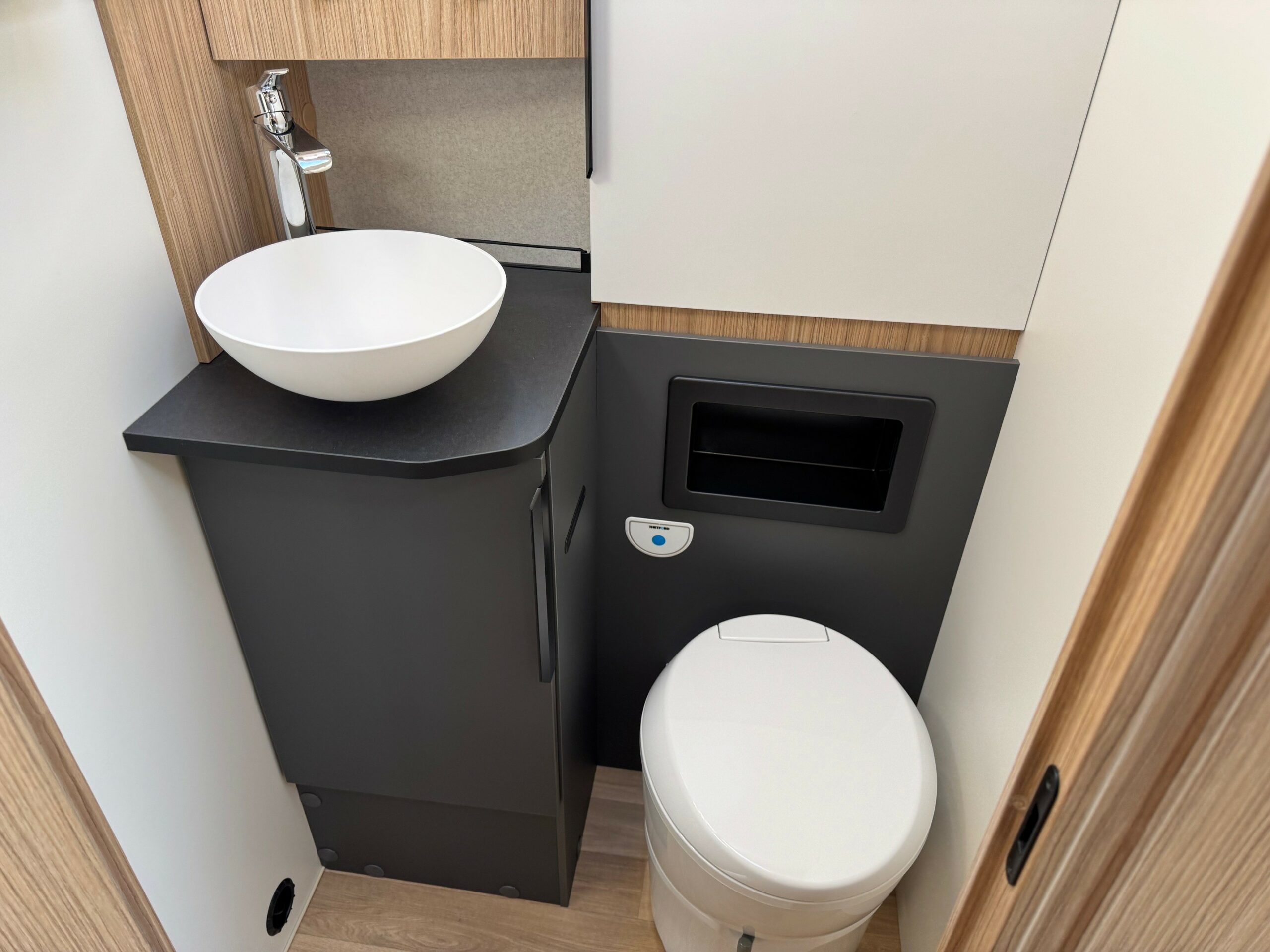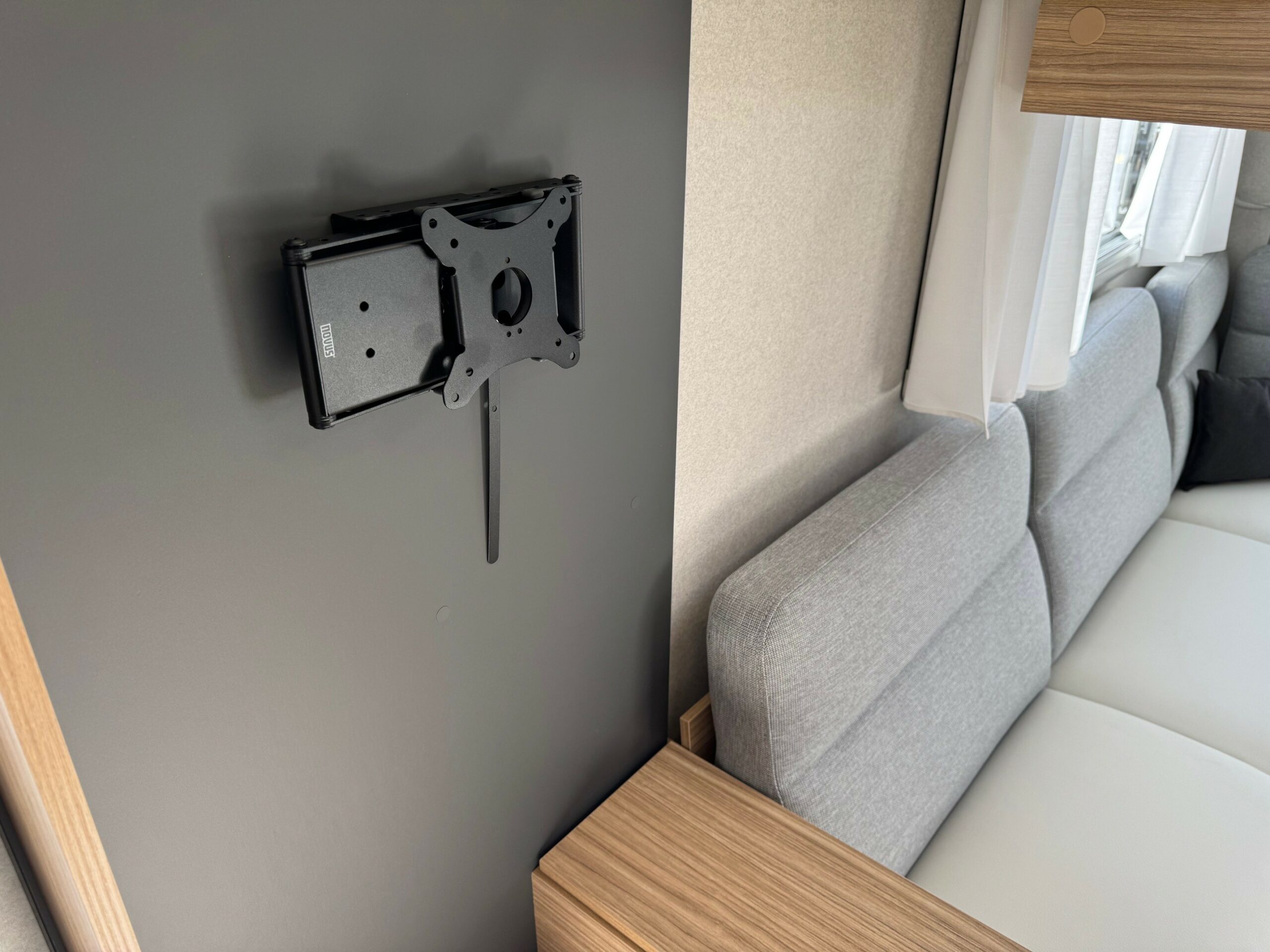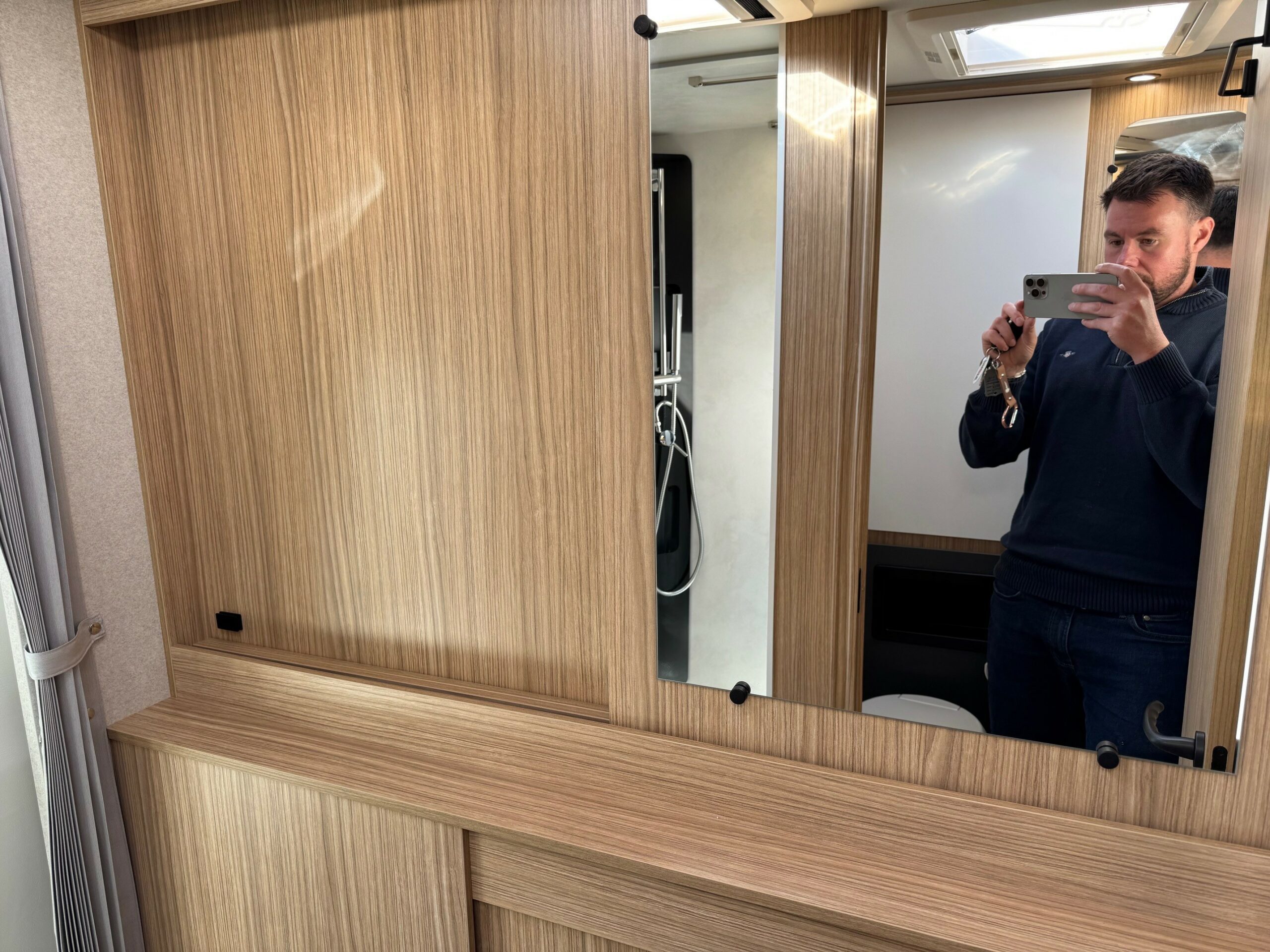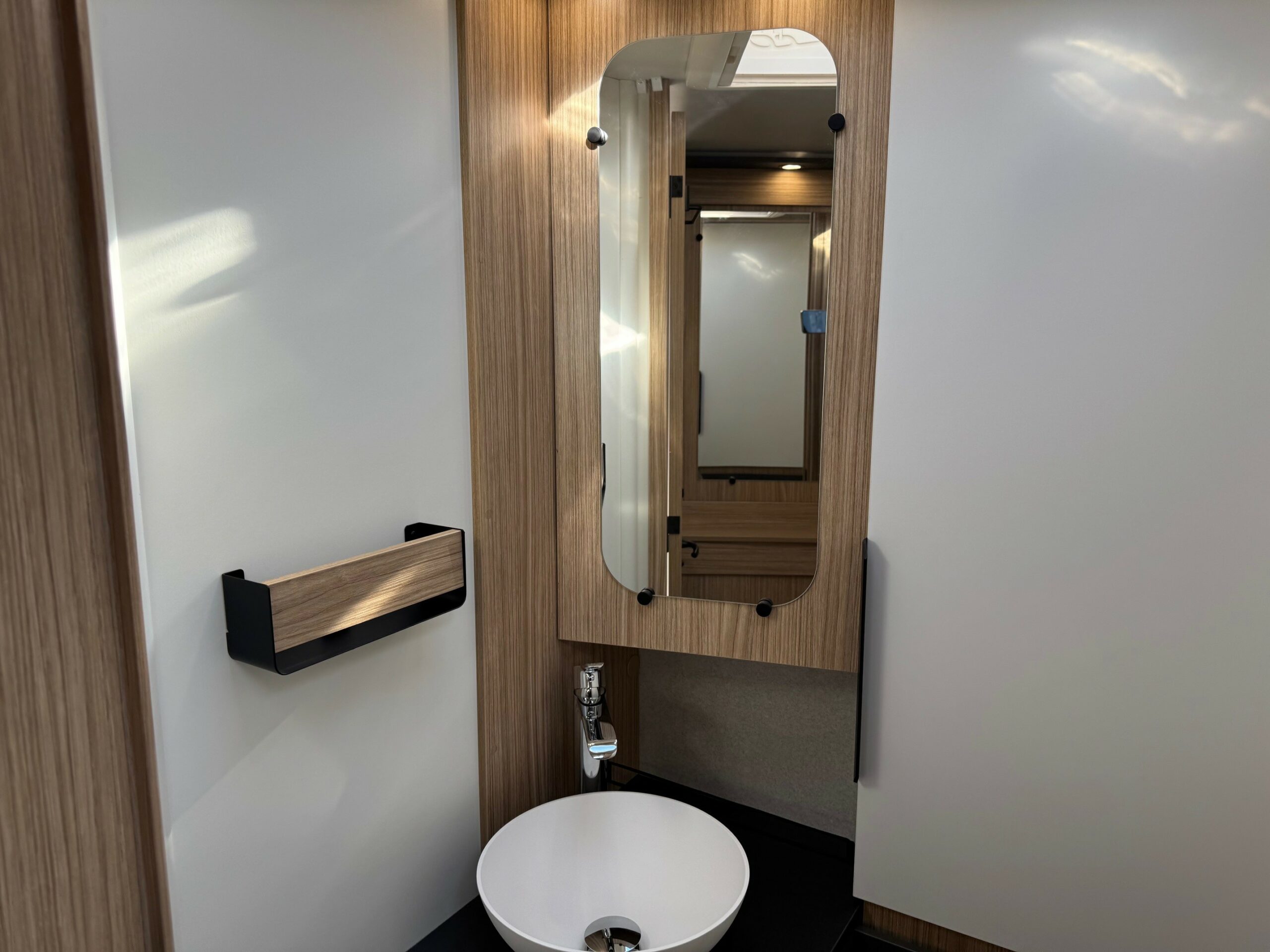 The vehicle comes fitted with as standard; Awning, 140bhp Auto engine, EPB Pack, Rims Pack, 9″ Media Centre Inc Apple/Android Car Play, TV Bracket, 200Ah Lithium Battery, x2 100w Solar Panels, TRUMA 6 DIESEL/ELECTRIC Heating, External Shower, Sliding Skirt Locker Drawer etc.