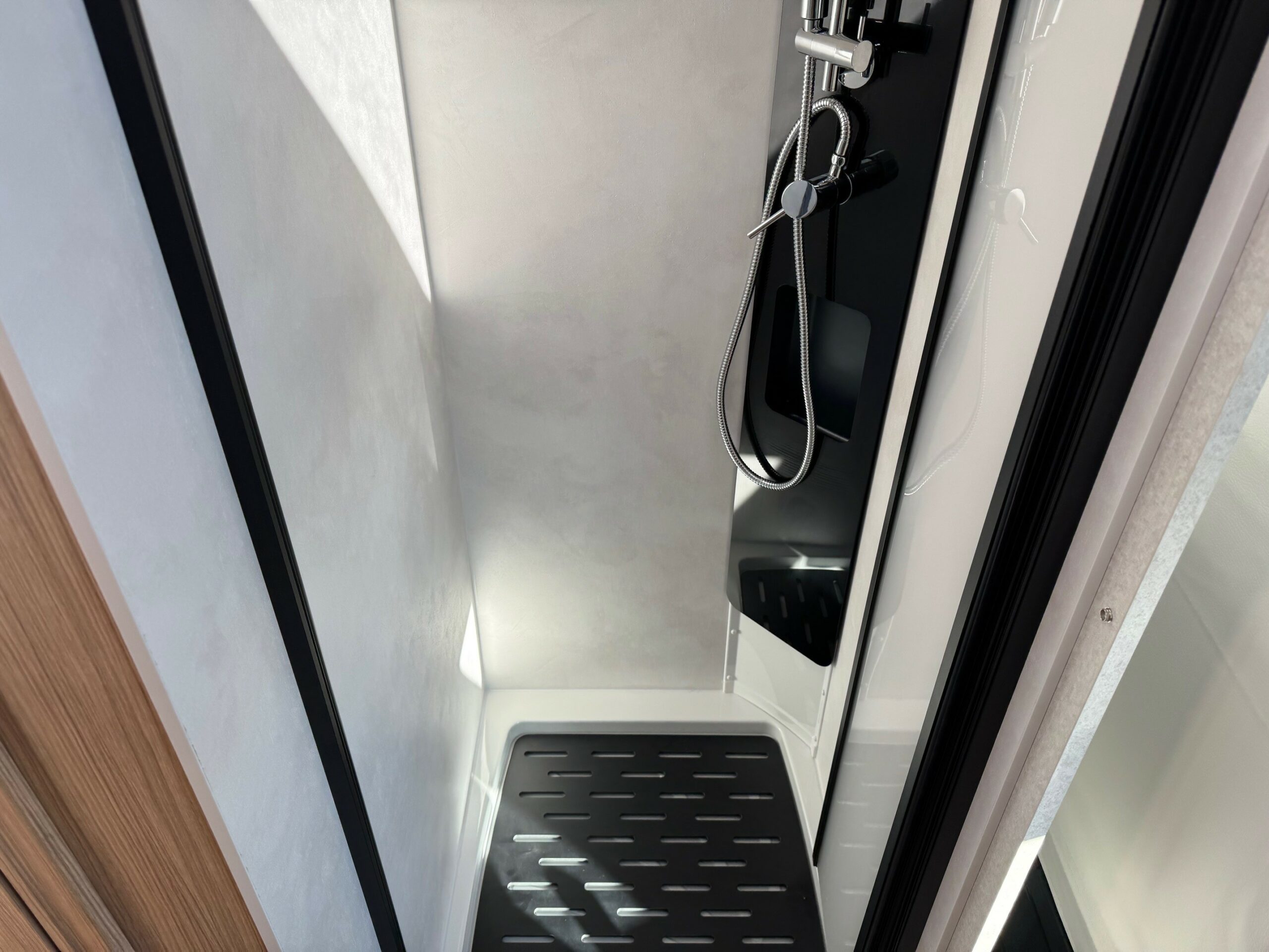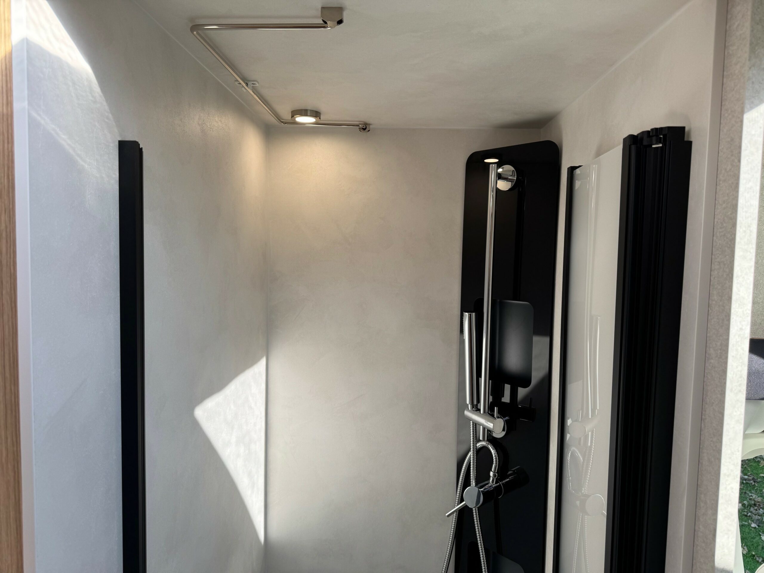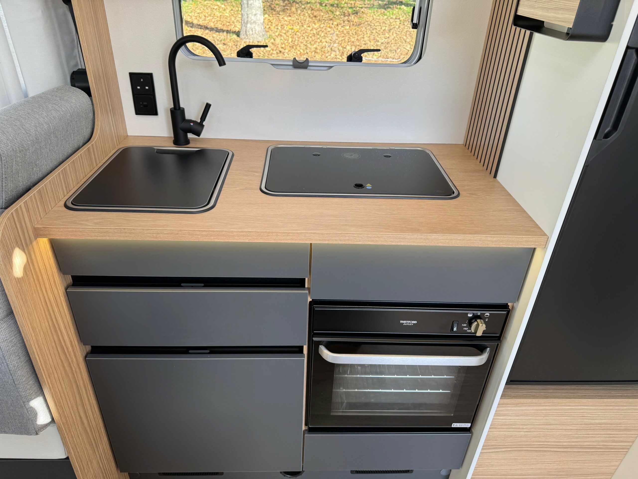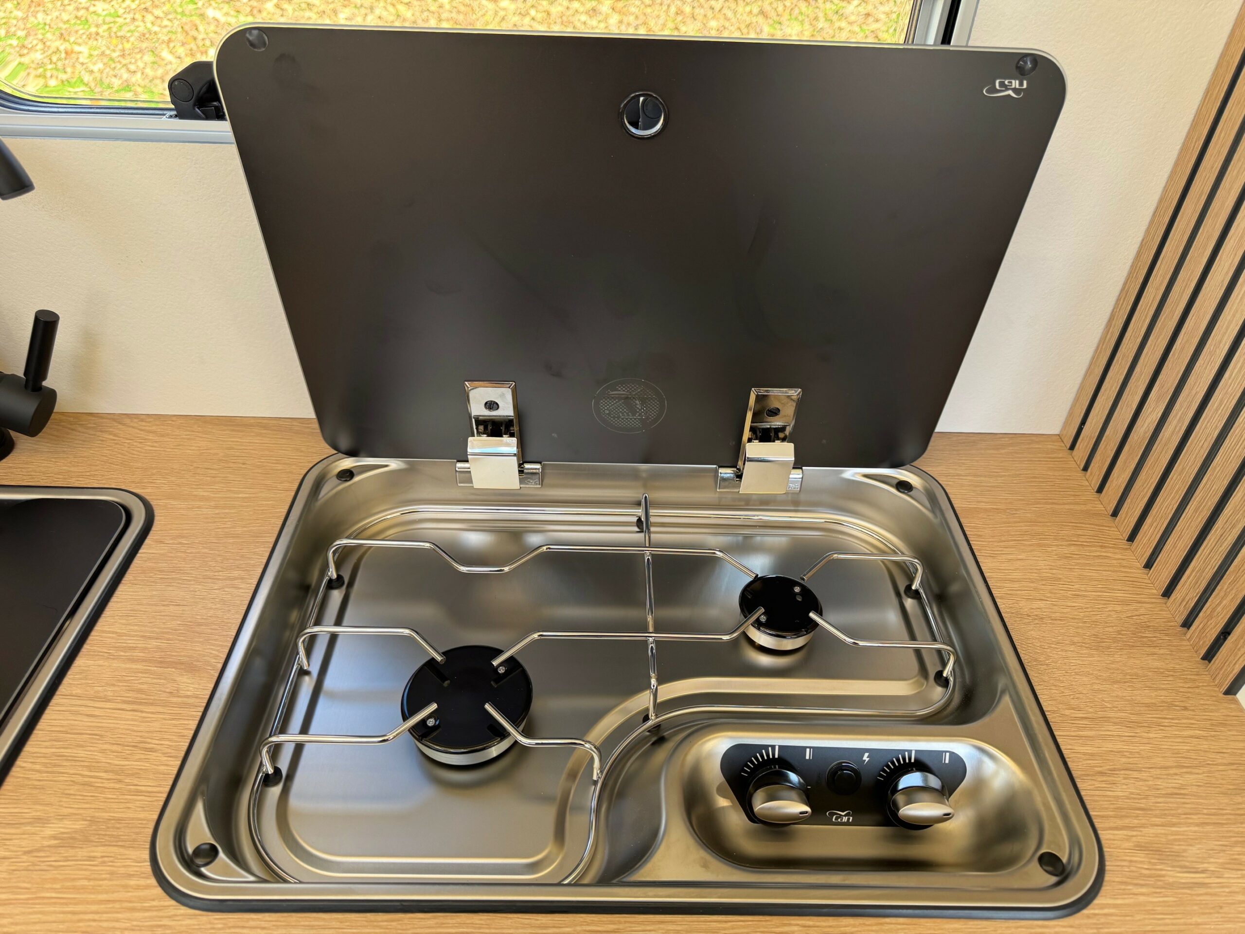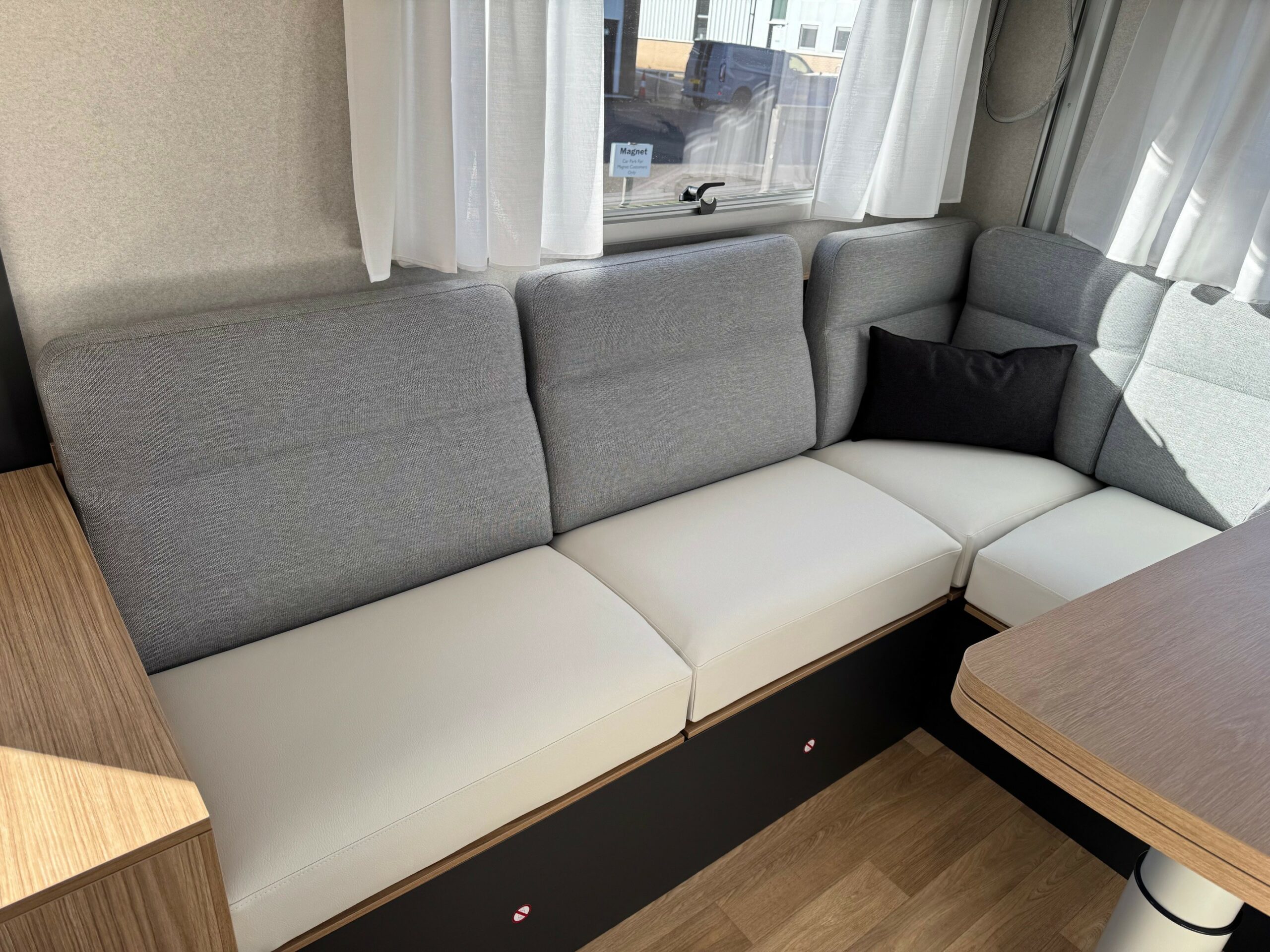 The vehicle comes fitted with as standard; Awning, 140bhp Auto engine, EPB Pack, Rims Pack, 9″ Media Centre Inc Apple/Android Car Play, TV Bracket, 200Ah Lithium Battery, x2 100w Solar Panels, TRUMA 6 DIESEL/ELECTRIC Heating, External Shower, Sliding Skirt Locker Drawer etc.