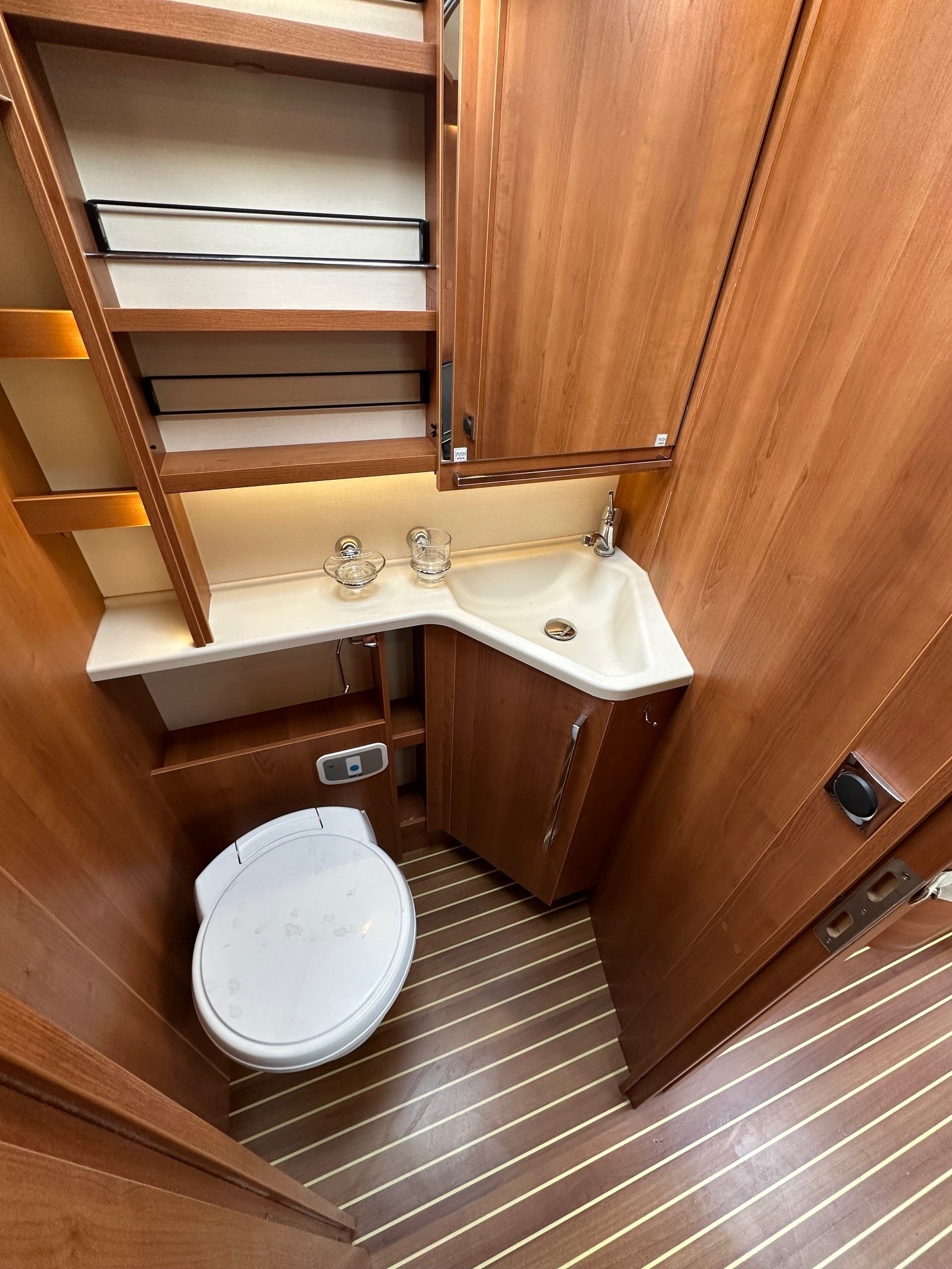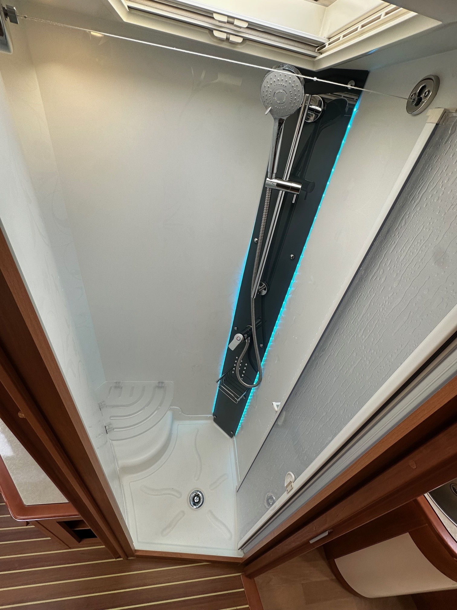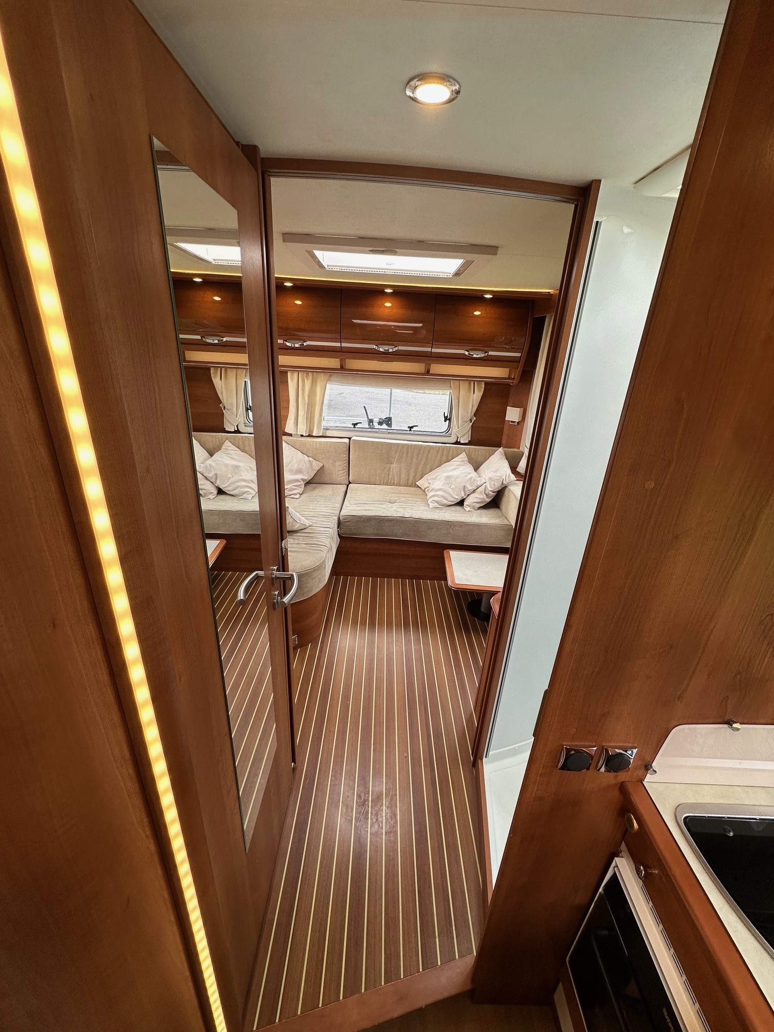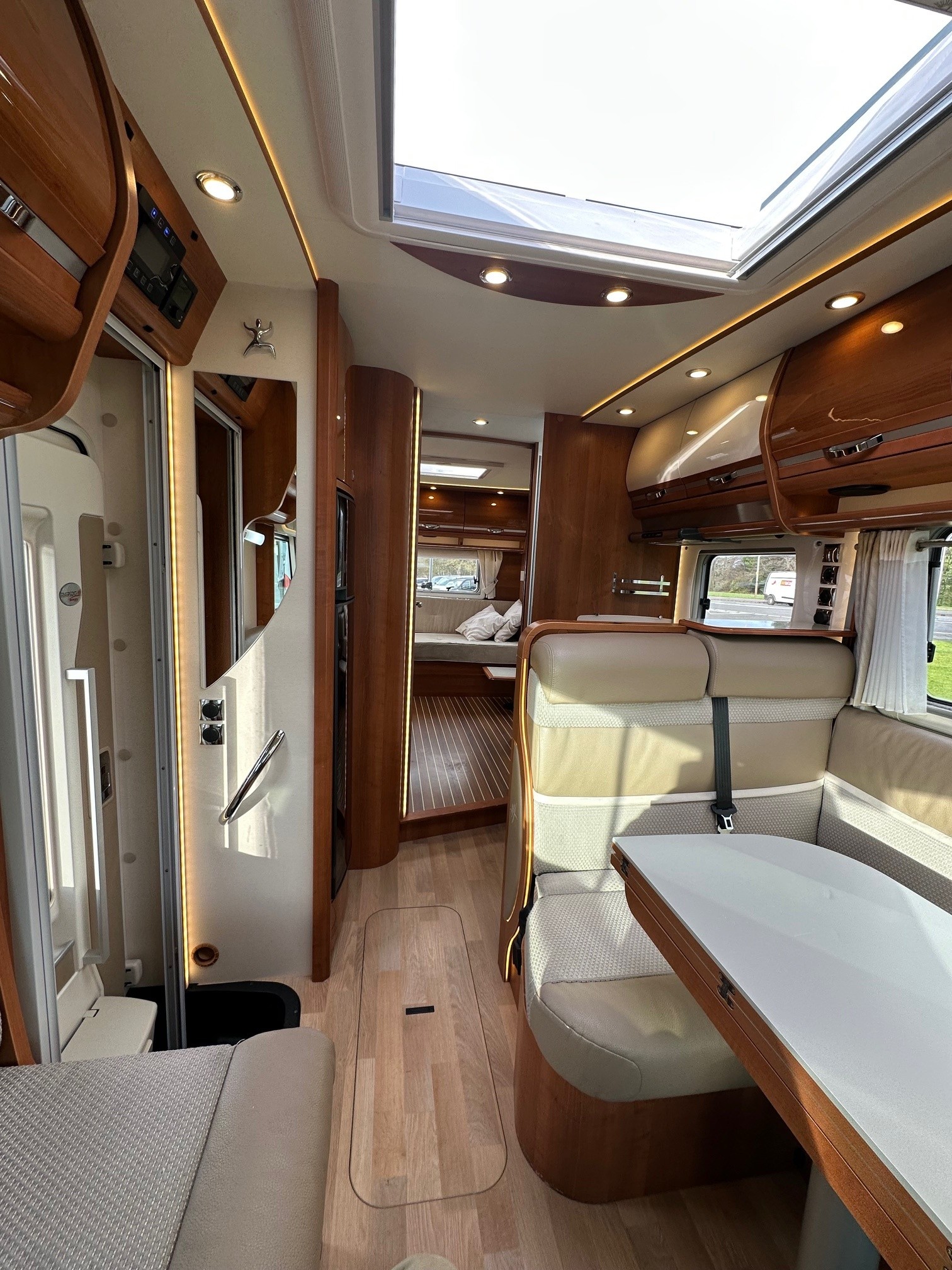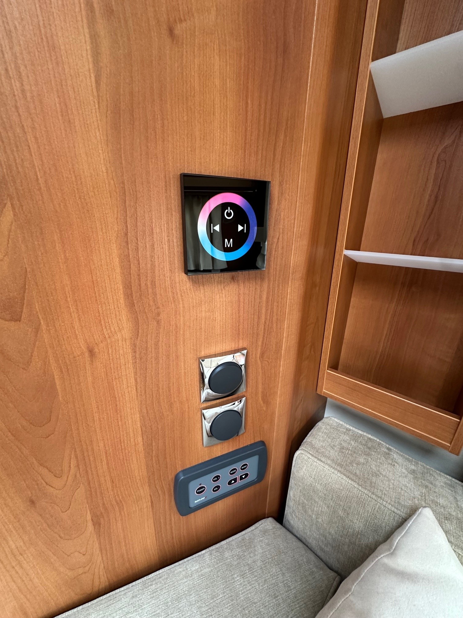 There’s no garage here, the low-level of the lounge cannot allow one, but there is a surprisingly roomy locker below that has two external doors – one big, one smaller – so it’s easy to get at your stuff. And you might stow plenty in here as there’s space for all your kit, save full-sized bikes. Neatly grouped in here are the electrics and drain valves, all heated and easy to get at,