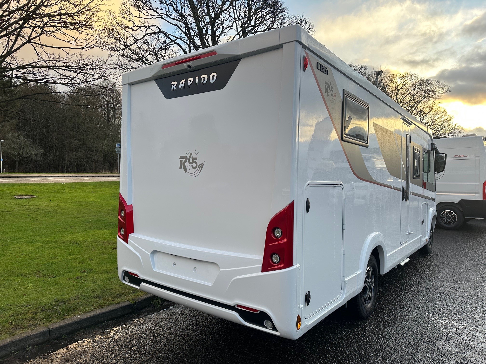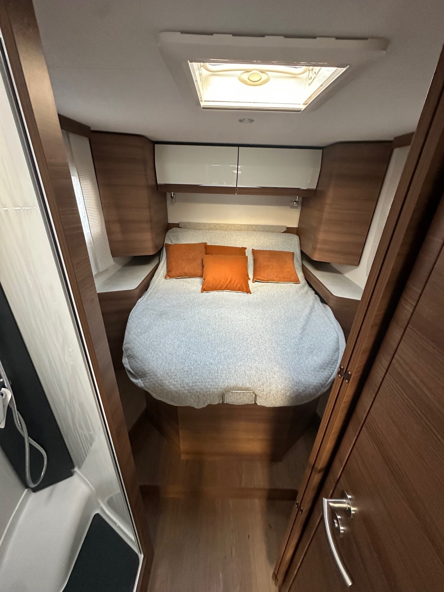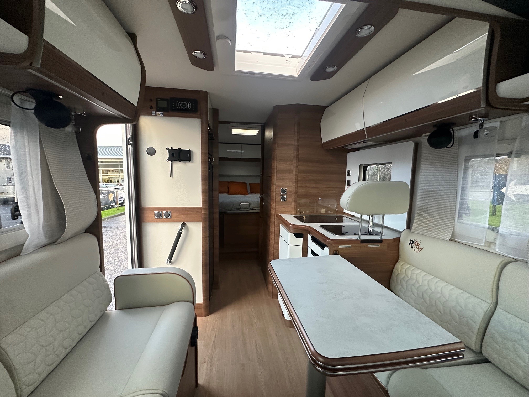 • 65 Years Edition Pack: Celebrate over 65 years of Rapido’s expertise with exclusive features including special exterior decor, embroidered upholstery, 16″ two-tone light alloy wheel rims, an electric parking brake, a lithium battery, a factory-fitted solar panel, and a heated waste water tank.