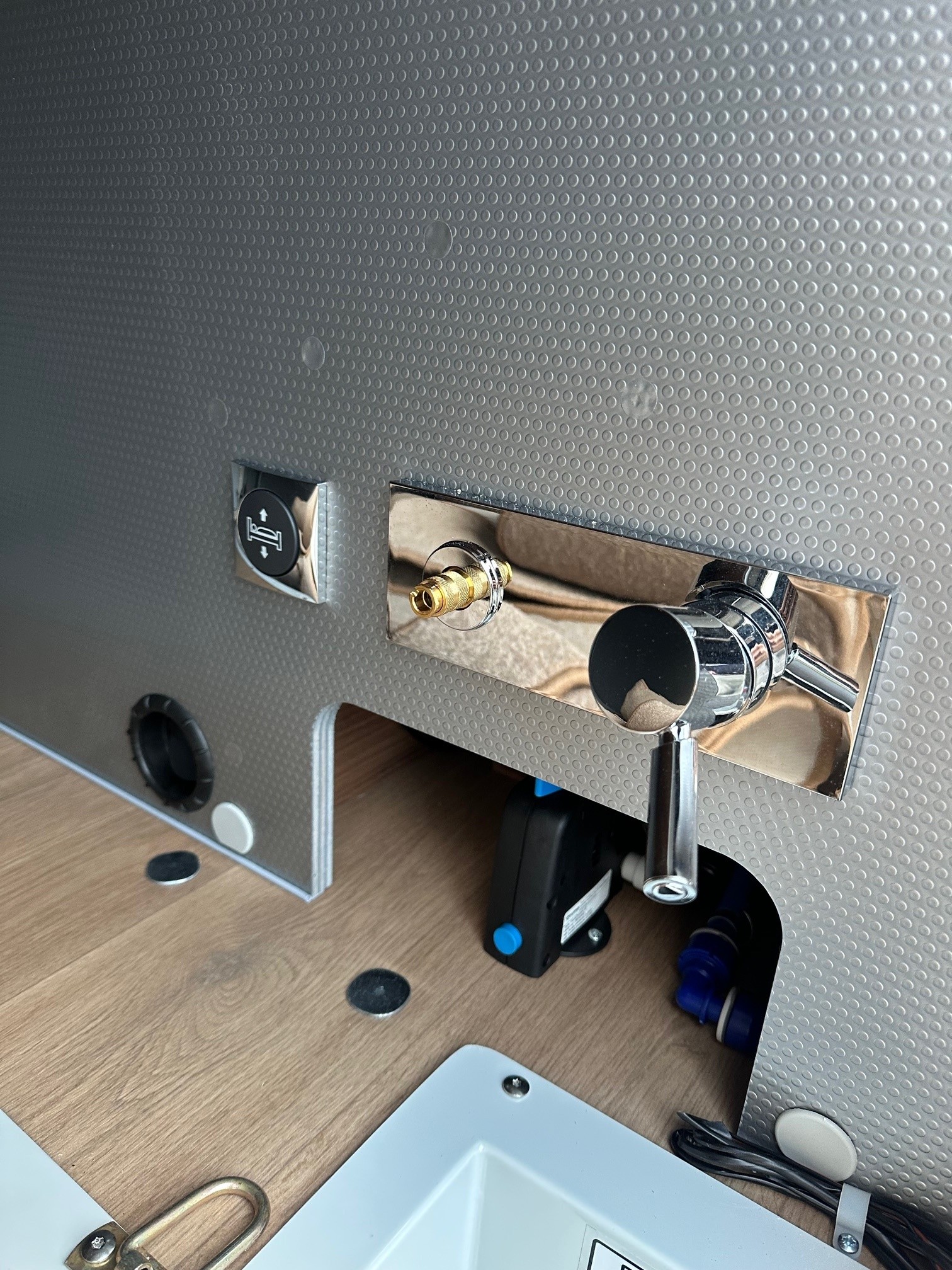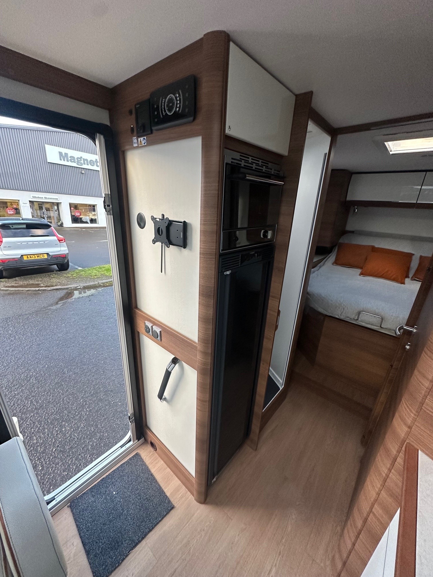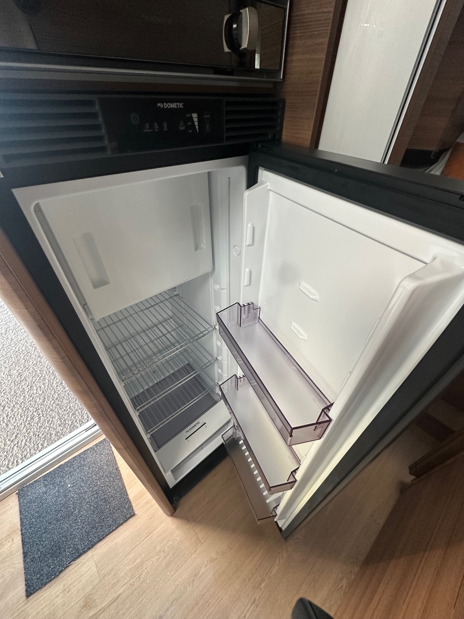 • Gourmet kitchen with a large 149-litre compressor refrigerator and an oven, perfect for creating meals on the road.