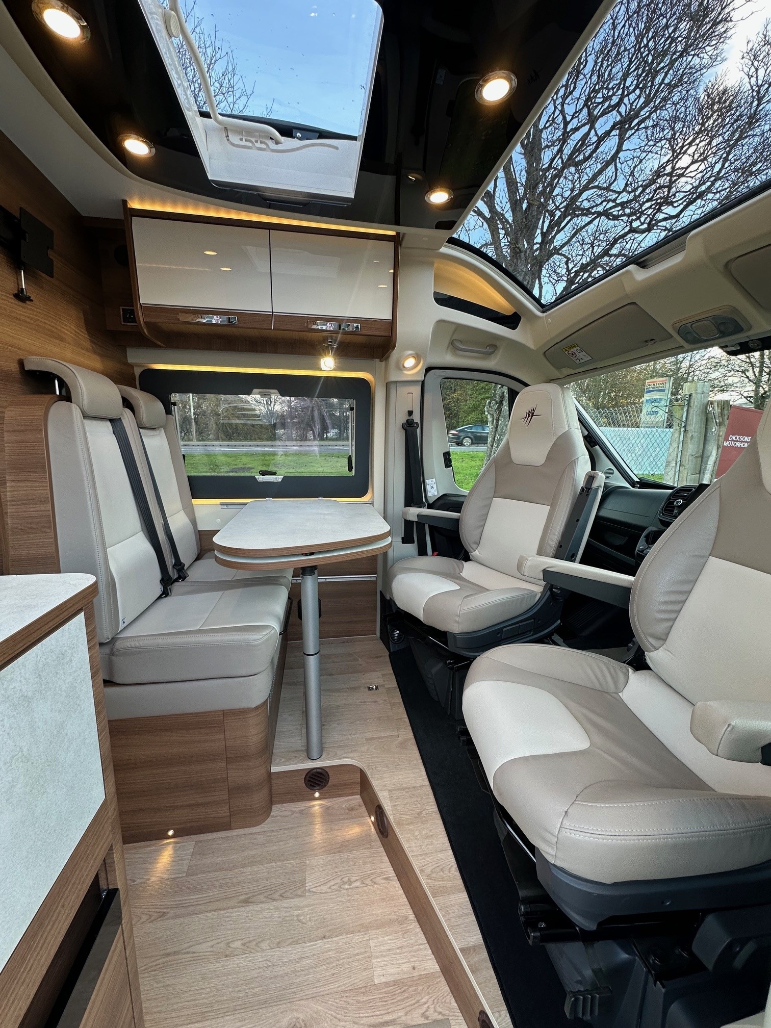 - Enhanced Driving & Safety: The Fiat 140 bhp automatic engine provides a smooth, powerful drive. The inclusion of the Rapido Van Pack and Connect Pack adds features like a DAB PIONEER® multimedia system with Apple CarPlay/Android Auto, a reversing camera, Traction+ with Hill Descent Control, and cab blinds for privacy.