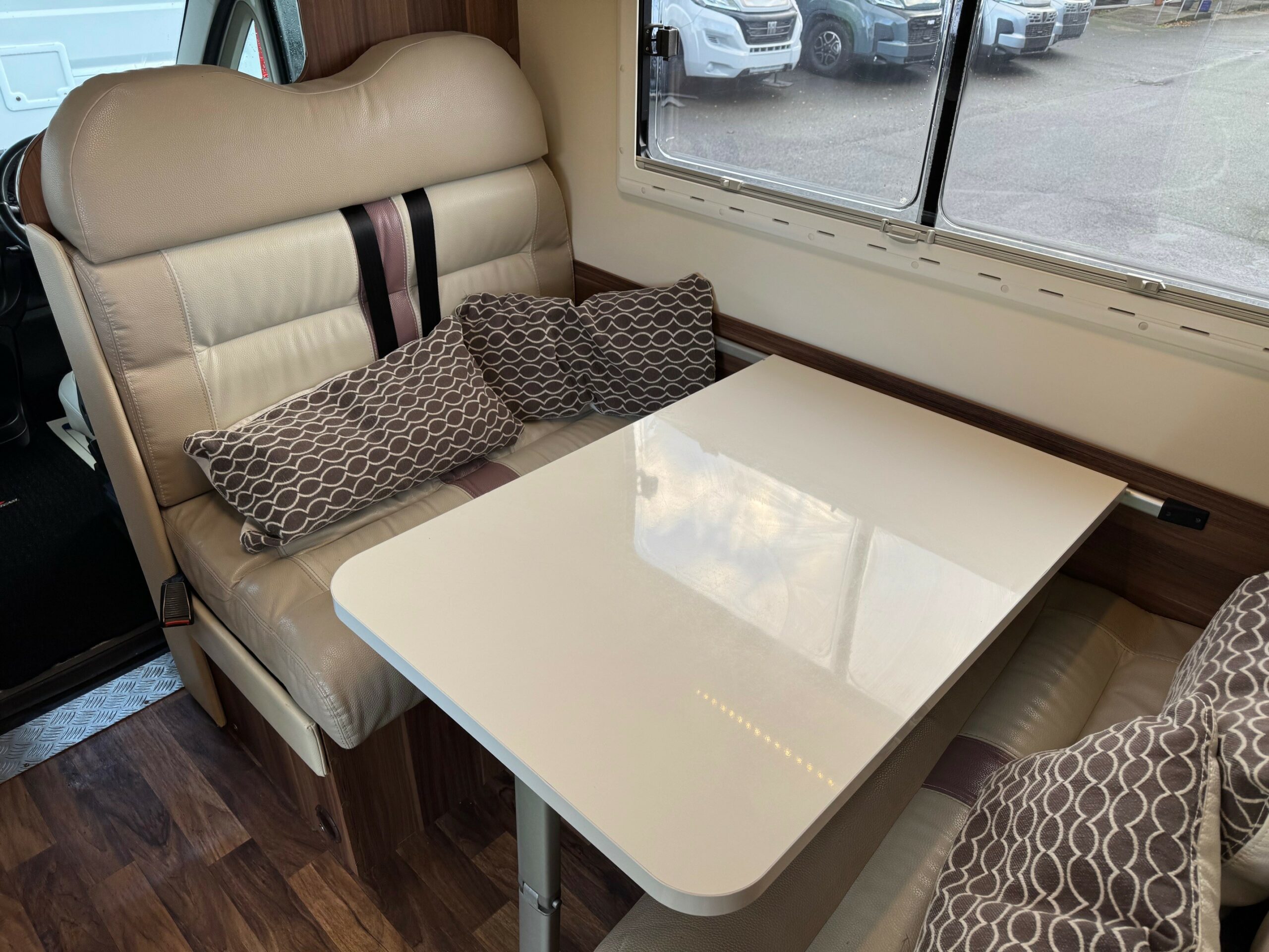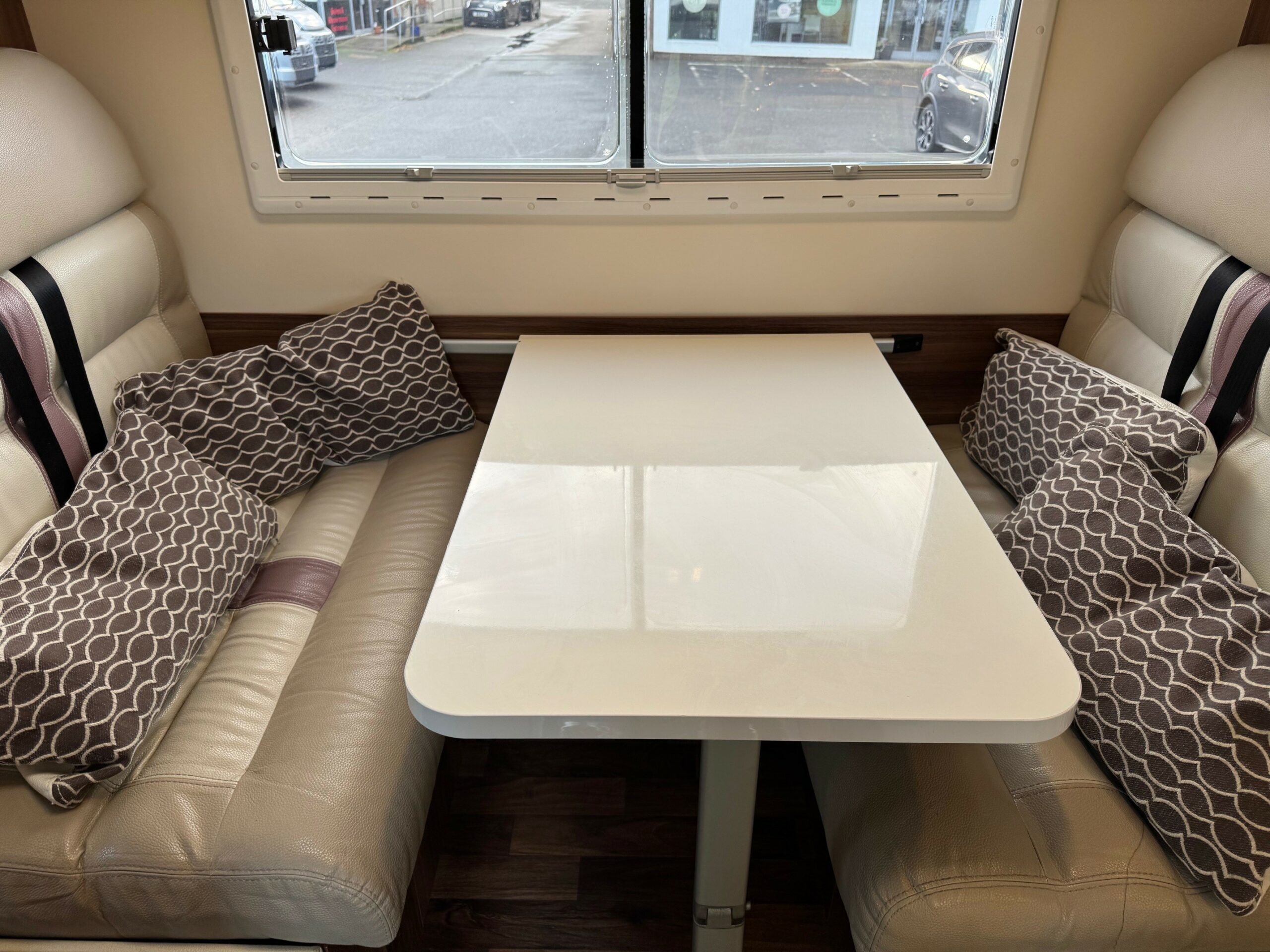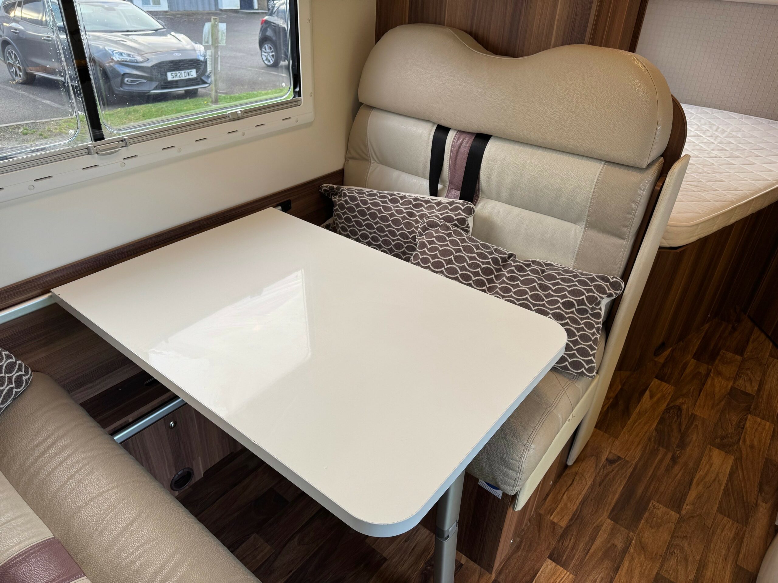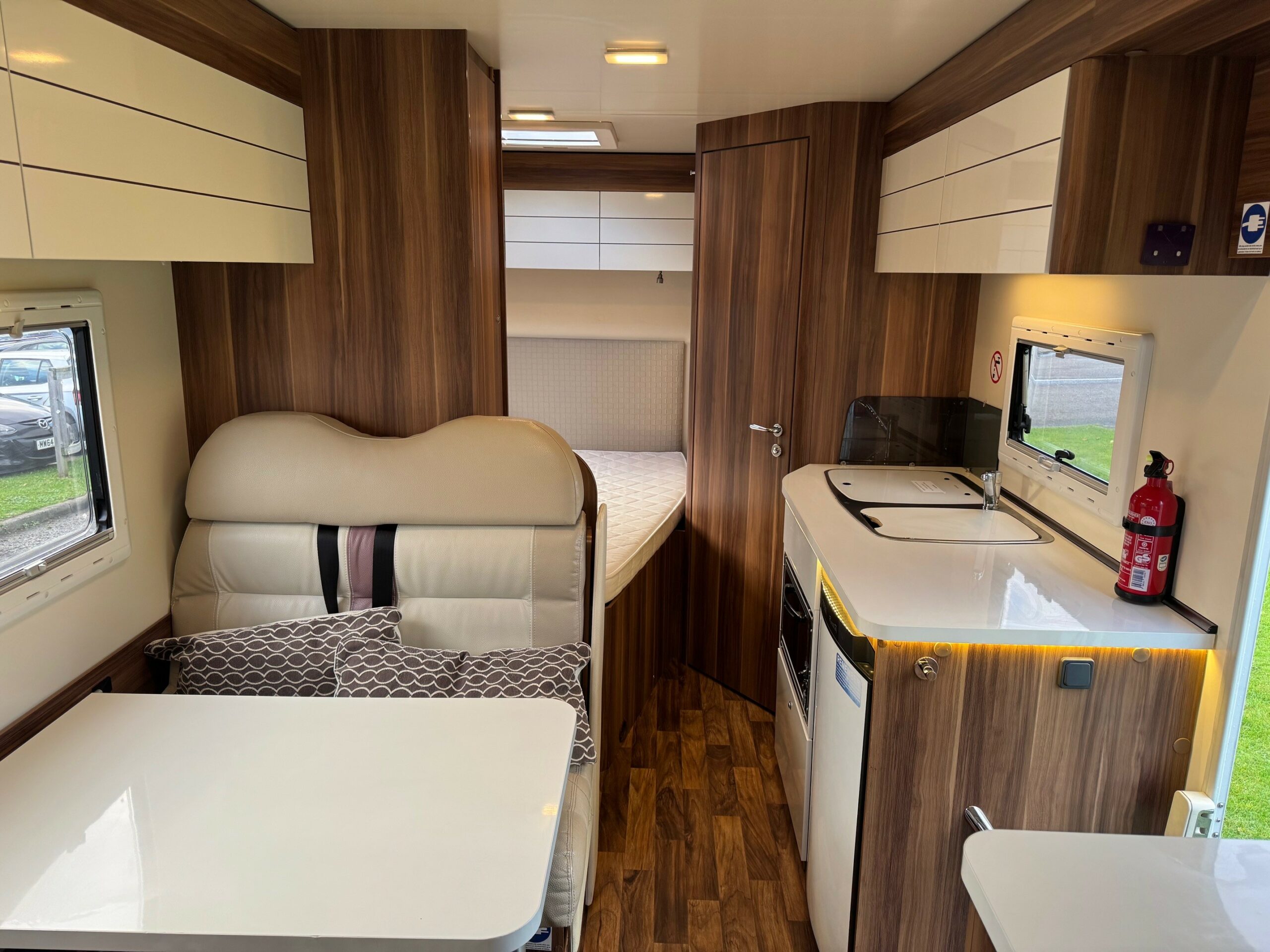 For Sale- 2017 Roller Team Autoroller. 6 berth 6 belt sub 7m coachbuilt. Rear French bed with storage underneath. Toilet room with separate shower cubicle. Well proportioned kitchen with oven, 3 ring hob & undercounter fridge/freezer. Front lounge/dining area with forward & rear facing seats. The dinin area converts into a double bed. Large overcab bed.