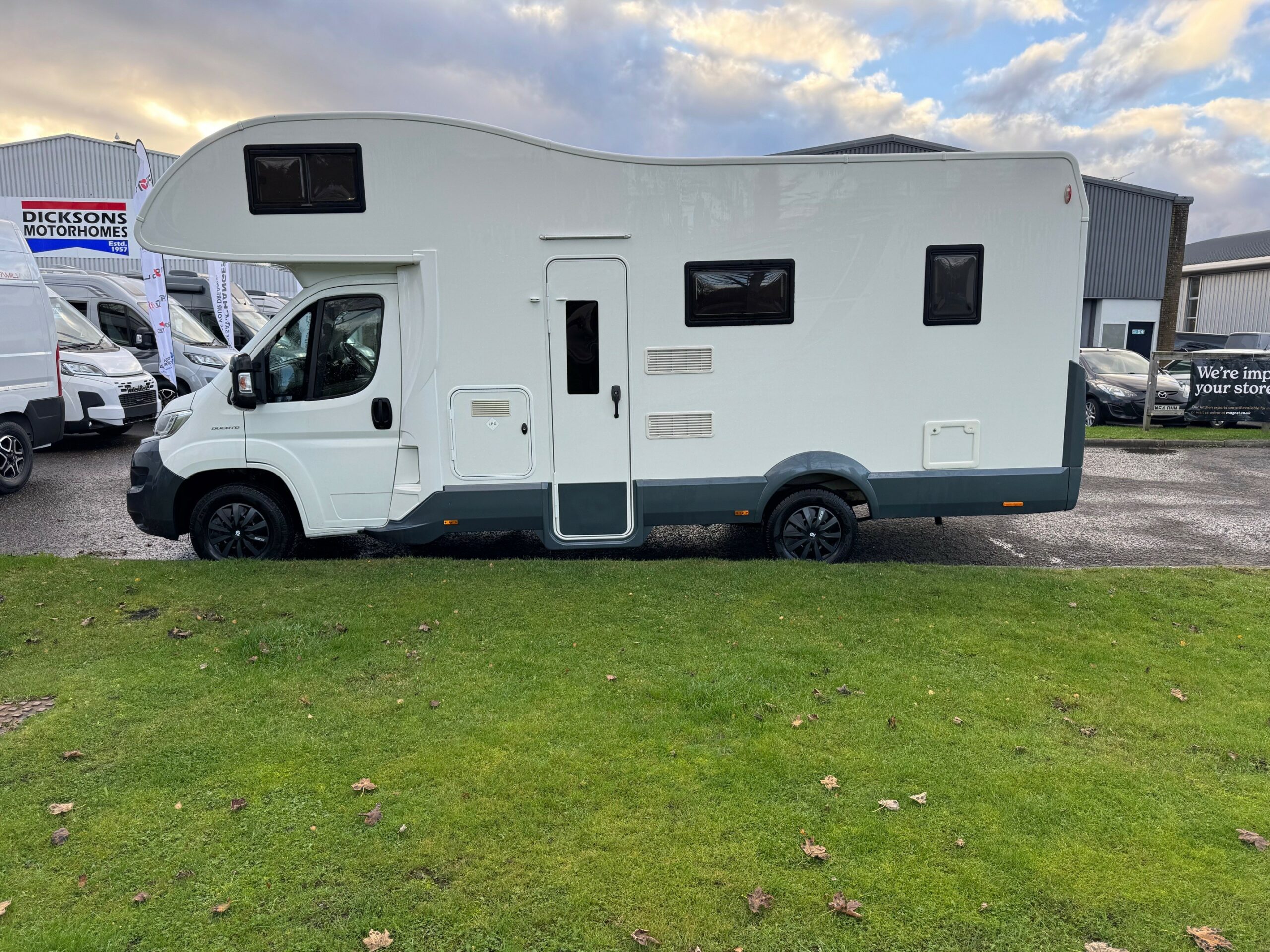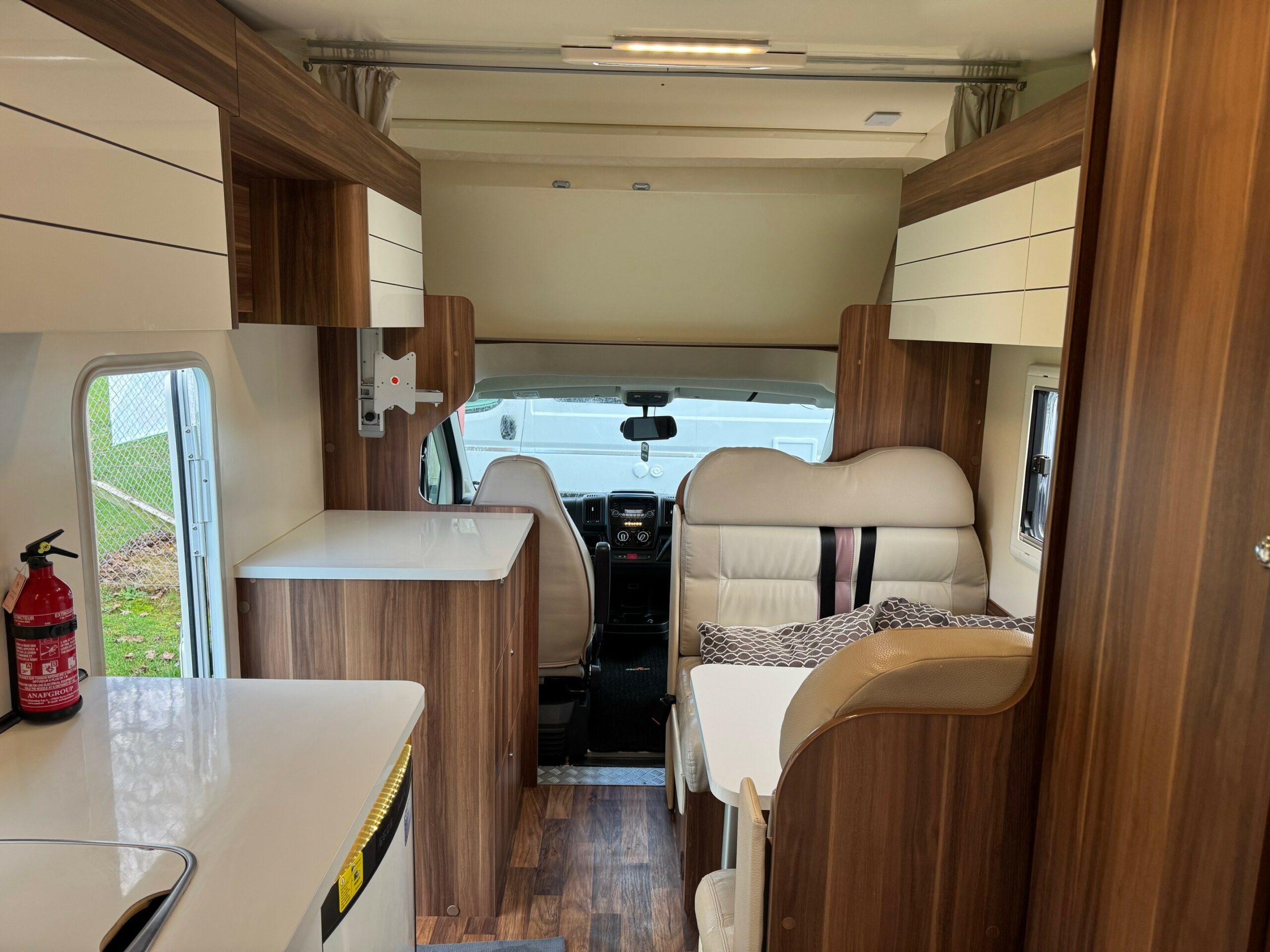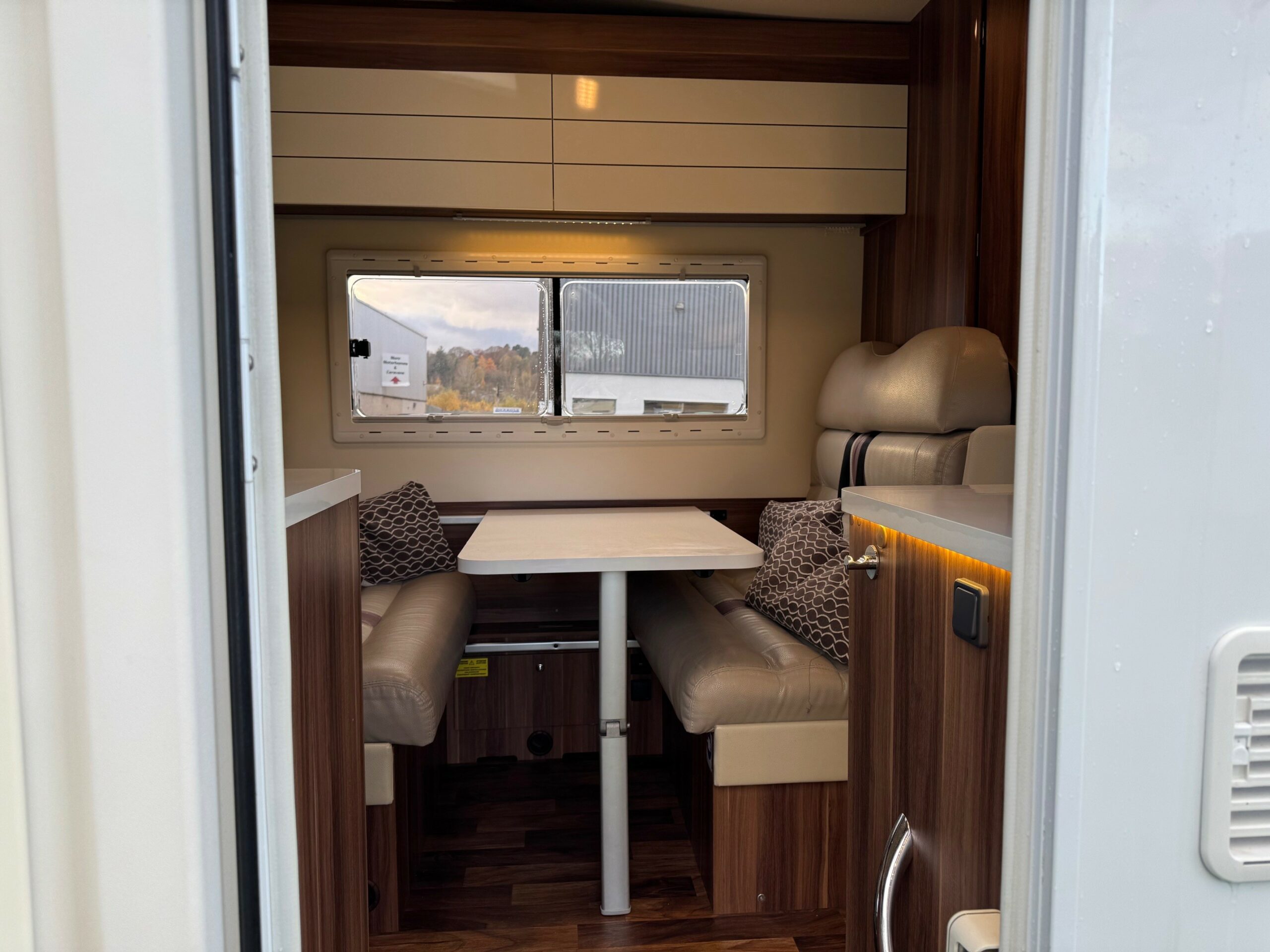 For Sale- 2017 Roller Team Autoroller. 6 berth 6 belt sub 7m coachbuilt. Rear French bed with storage underneath. Toilet room with separate shower cubicle. Well proportioned kitchen with oven, 3 ring hob & undercounter fridge/freezer. Front lounge/dining area with forward & rear facing seats. The dinin area converts into a double bed. Large overcab bed.