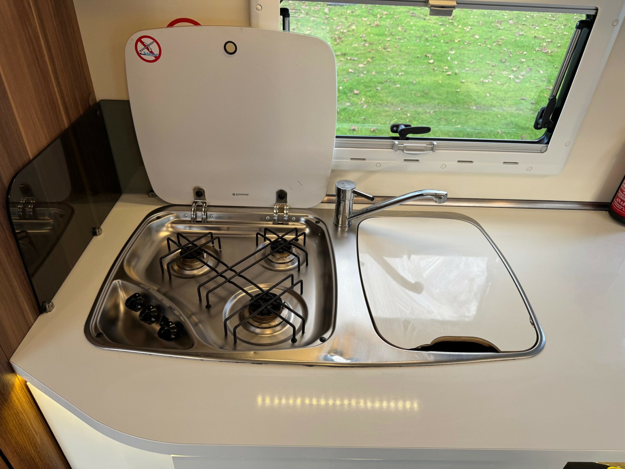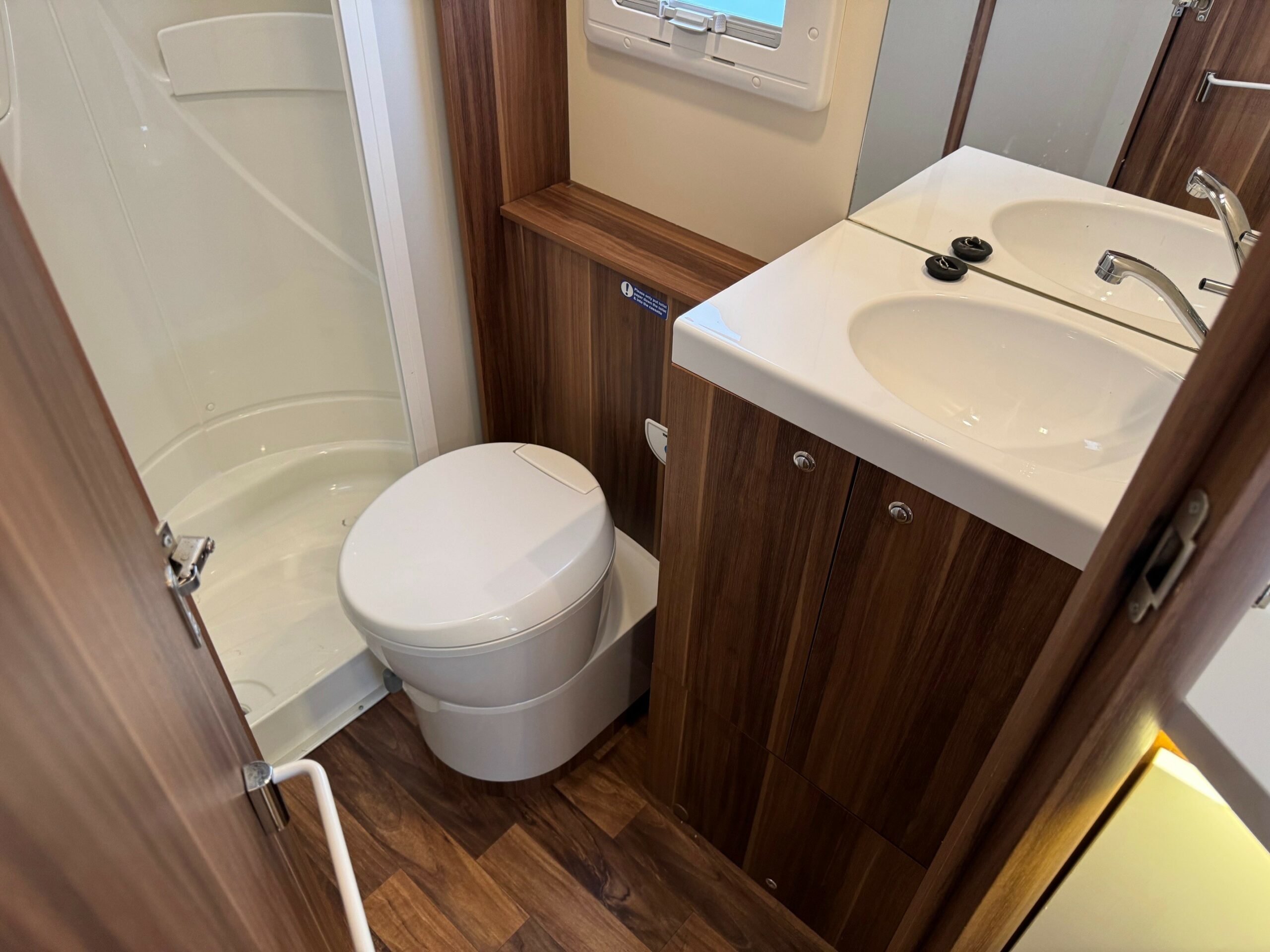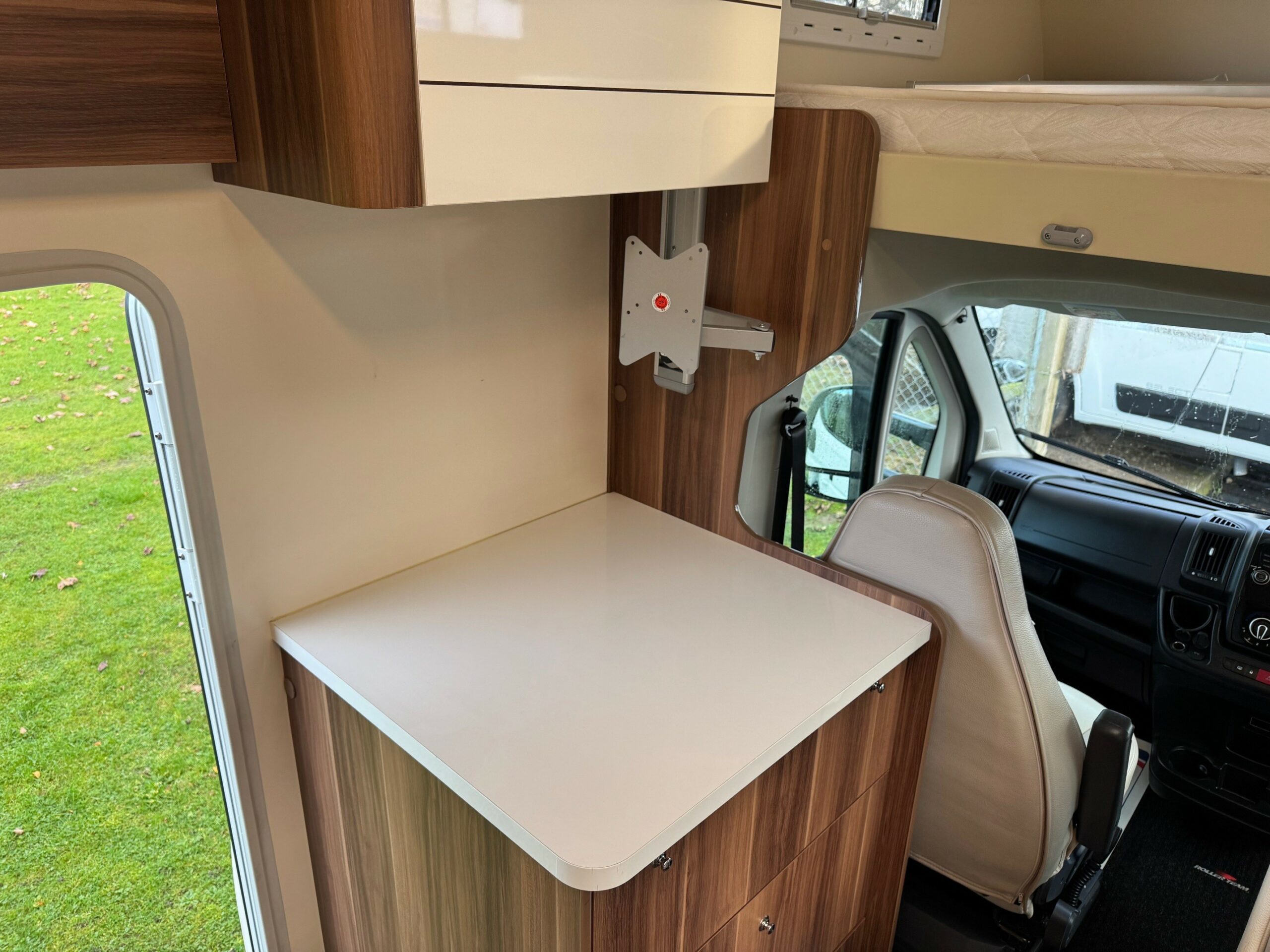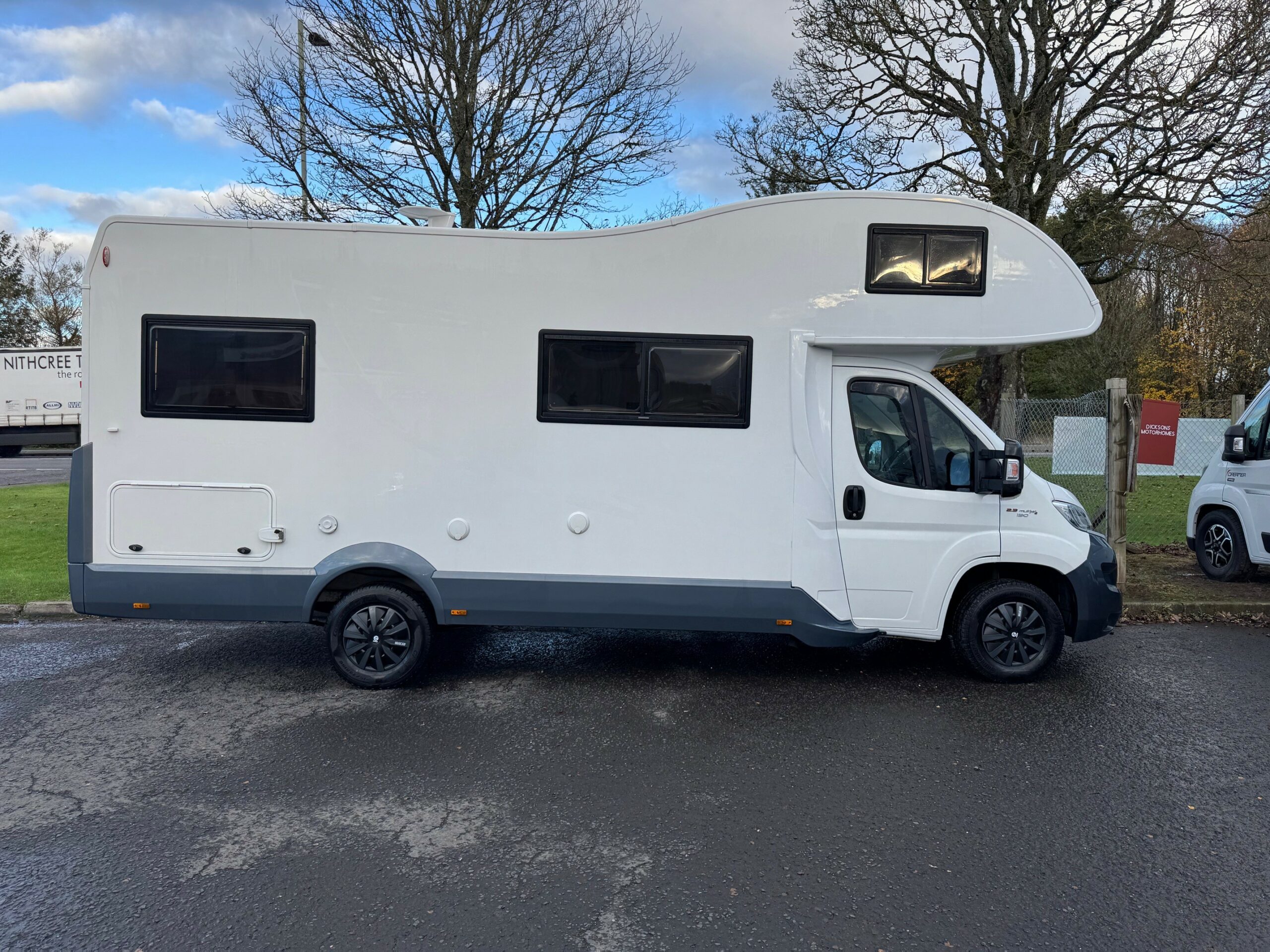 For Sale- 2017 Roller Team Autoroller. 6 berth 6 belt sub 7m coachbuilt. Rear French bed with storage underneath. Toilet room with separate shower cubicle. Well proportioned kitchen with oven, 3 ring hob & undercounter fridge/freezer. Front lounge/dining area with forward & rear facing seats. The dinin area converts into a double bed. Large overcab bed.