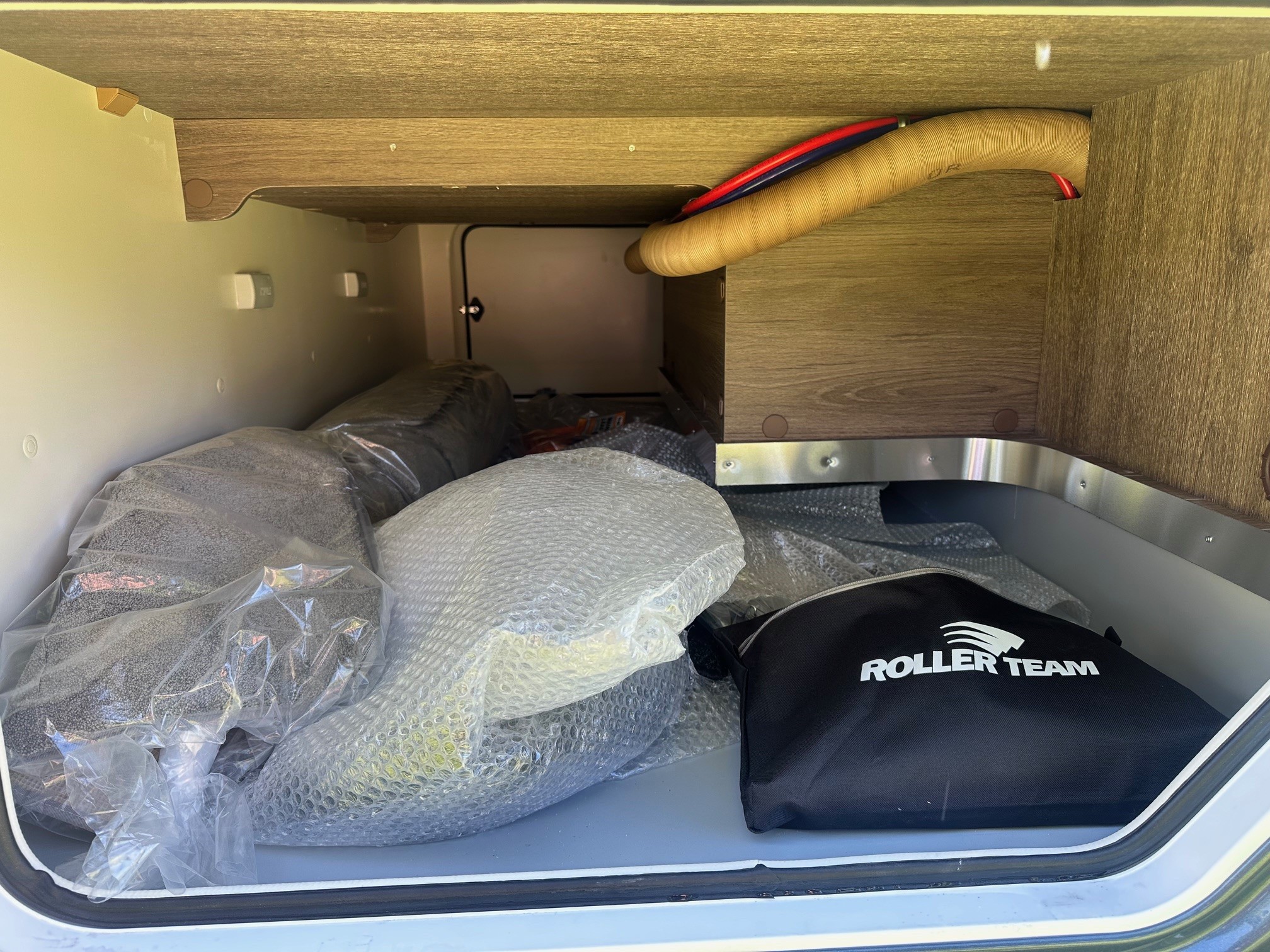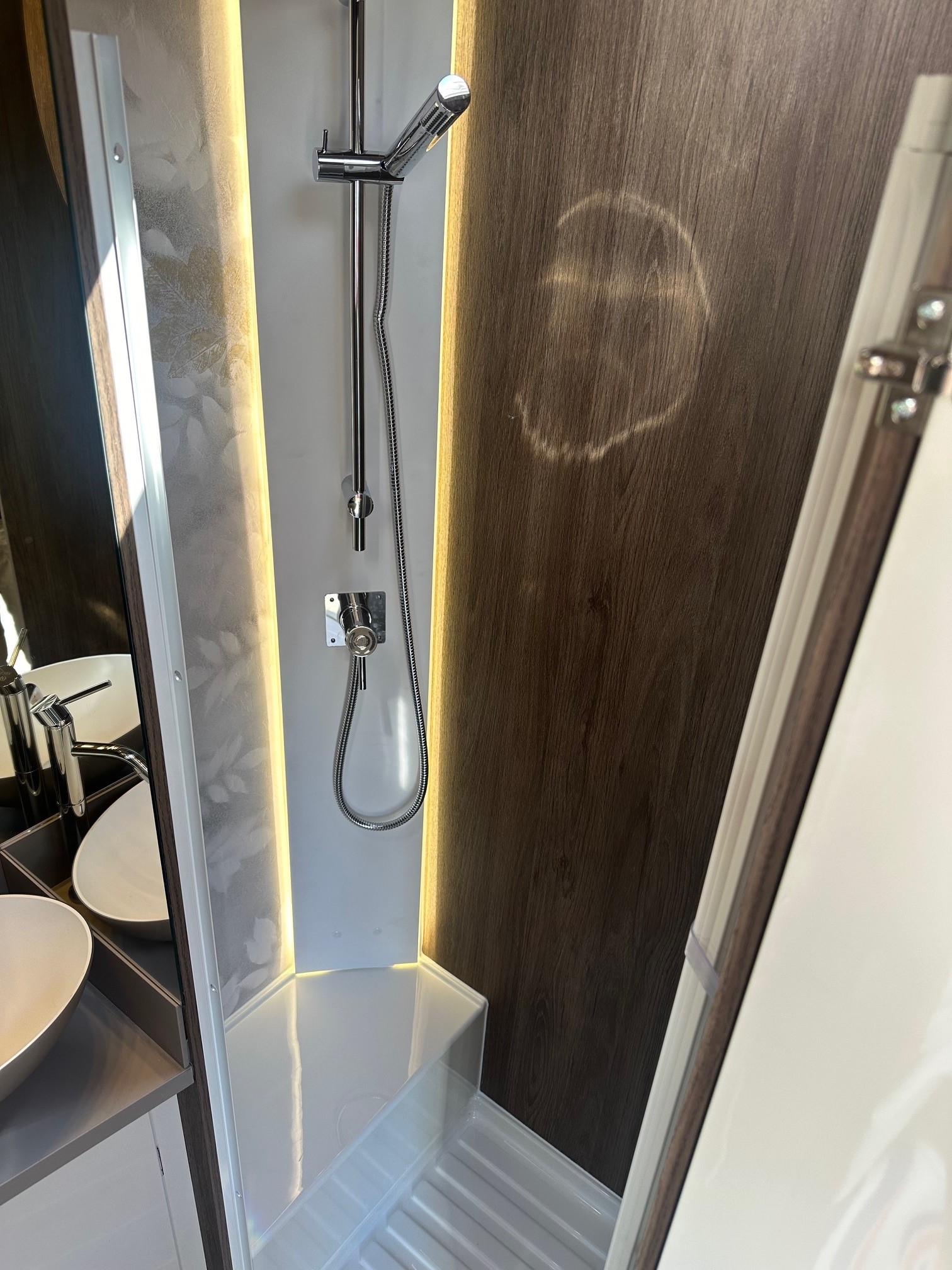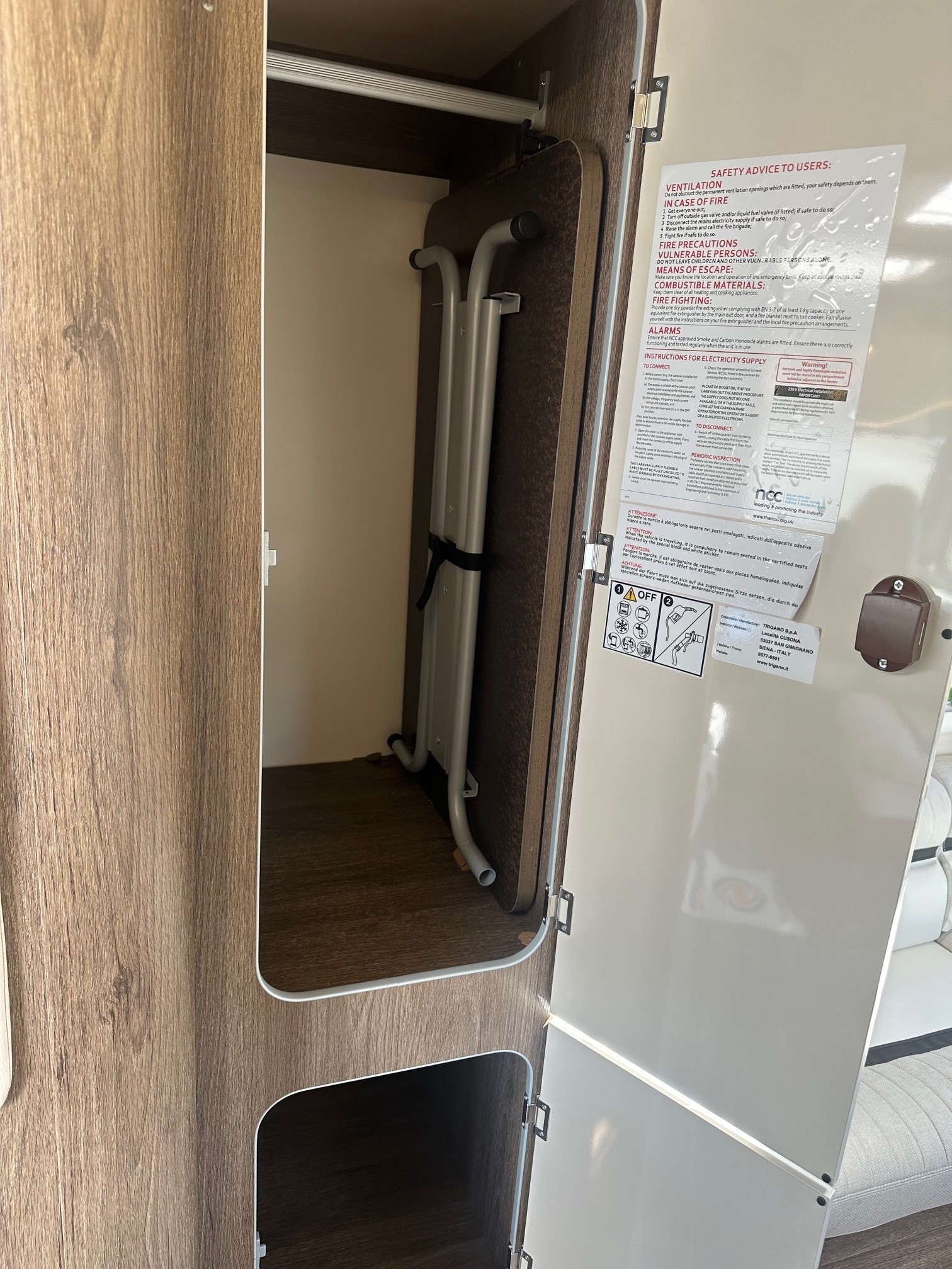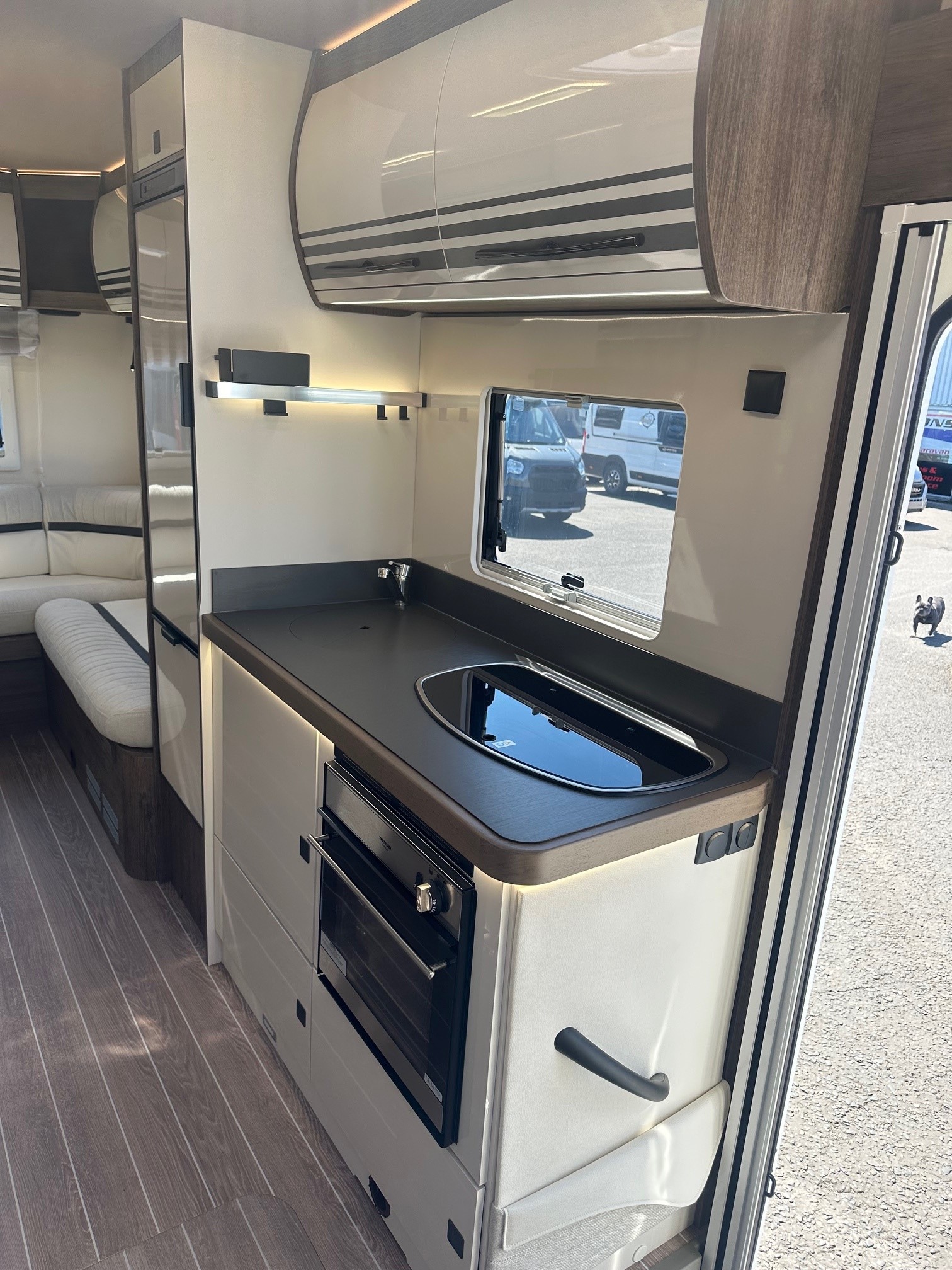 Brand new 2025 model Pegaso 745 automatic in stock now. The Pegaso 745 . Based on the Fiat Ducato chassis with 140bhp engine and 8 speed automatic transmission, the end lounge layout is a hit with families and couples as it provides a light and airy living area whilst keeping the dining area free. A double bed swings down above the cab area and the rear lounge turns into a further double bed quickly with a pull out bed system. The kitchen is located centrally to one side and features a 3 burner gas hob, gas oven/grill and a good size fridge/freezer. The bathroom opposite has a shower cubicle, cassette type toilet and wash basin. Heating and hot water is provided by a Truma dual fuel system and other features on this Pegaso 745 include: New Pioneer Sat Nav/Infotainment centre, Solar panel, Twin reversing cameras, WiFi, External gas BBQ and shower points, Colour Sat Nav, cab A/C, 4 bike rack and carpets. L. 7.41m, W. 2.35M, H. 2.95M, 3,500kg, 4 berth, 4 seat belts. Delivery Mileage.