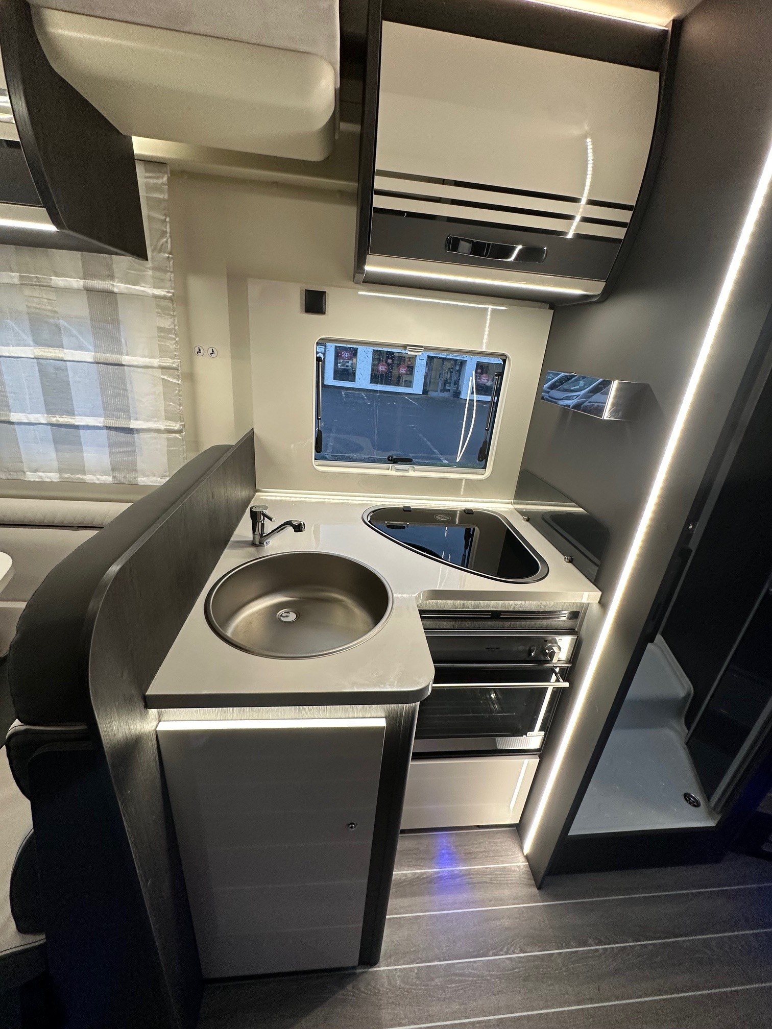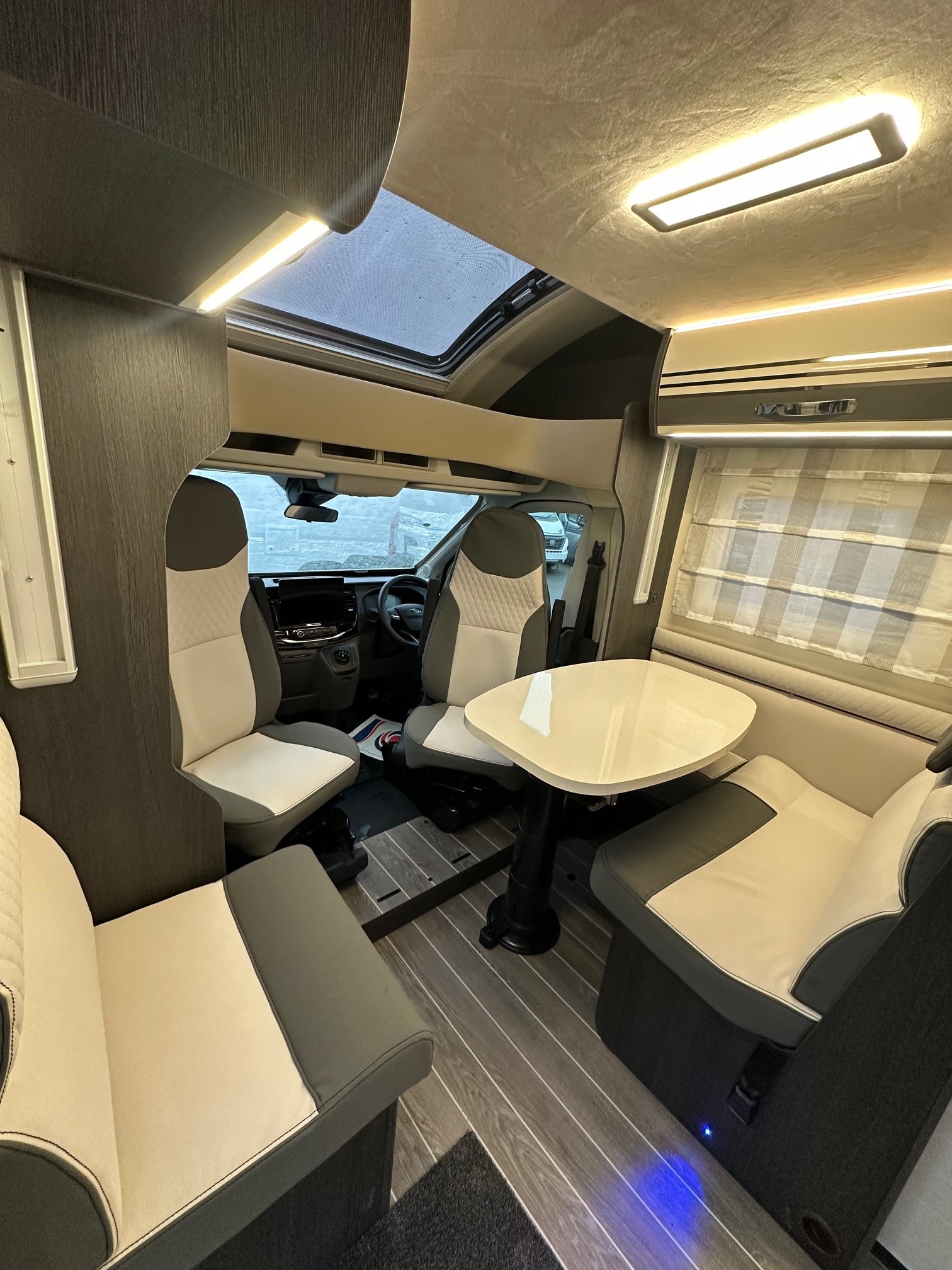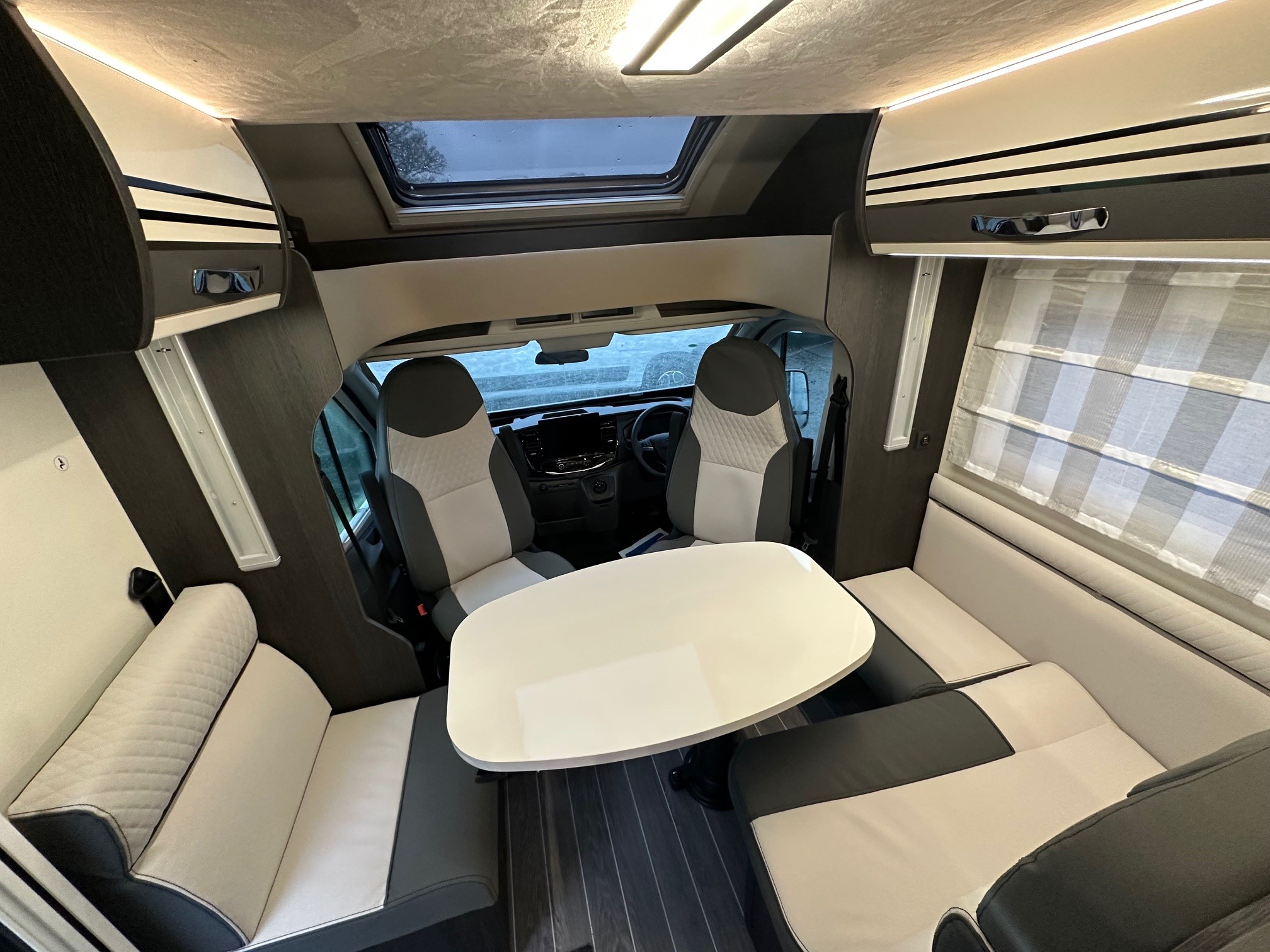 - Flexible Living: The popular layout features a luxurious rear island bed for a restful night’s sleep and an electric drop-down bed over the lounge area, all enhanced by the Flex Space system which allows the bed height to be adjusted for maximum versatility. The inclusion of a 5th seat belt and 5th berth kit means it can comfortably accommodate a family or group of five.