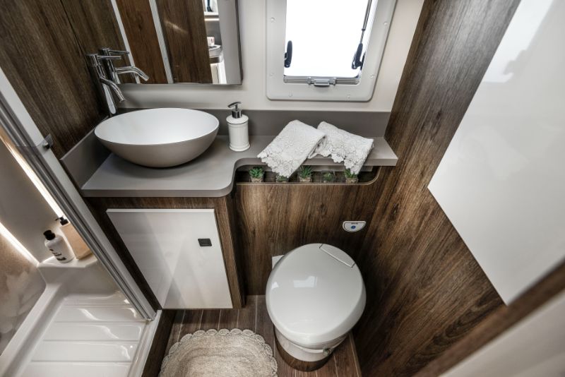 A shorter 5.99m chassis means it is equally at home driving around the streets of Edinburgh or through the Highlands. The drop-down bed is a clever addition to create a compact motorhome with adequate space to relax or have a few friends over. After a busy day, relax and unwind in the L-shaped living area, with two extra belted seats. To the rear is a large washroom with a separate shower. A light, airy atmosphere is created throughout the motorhome thanks to roof lights providing plenty of natural light and a soothing neutral interior