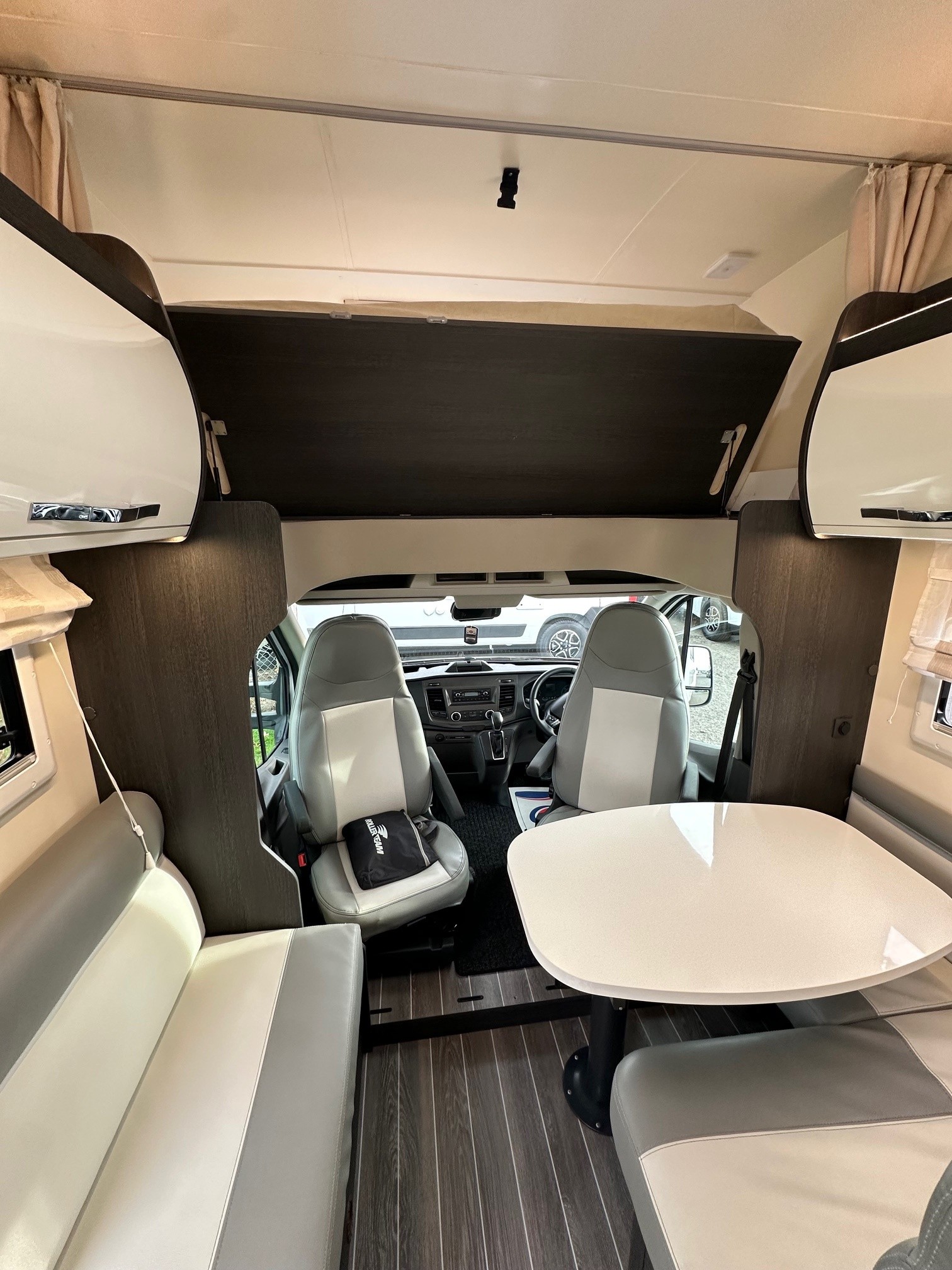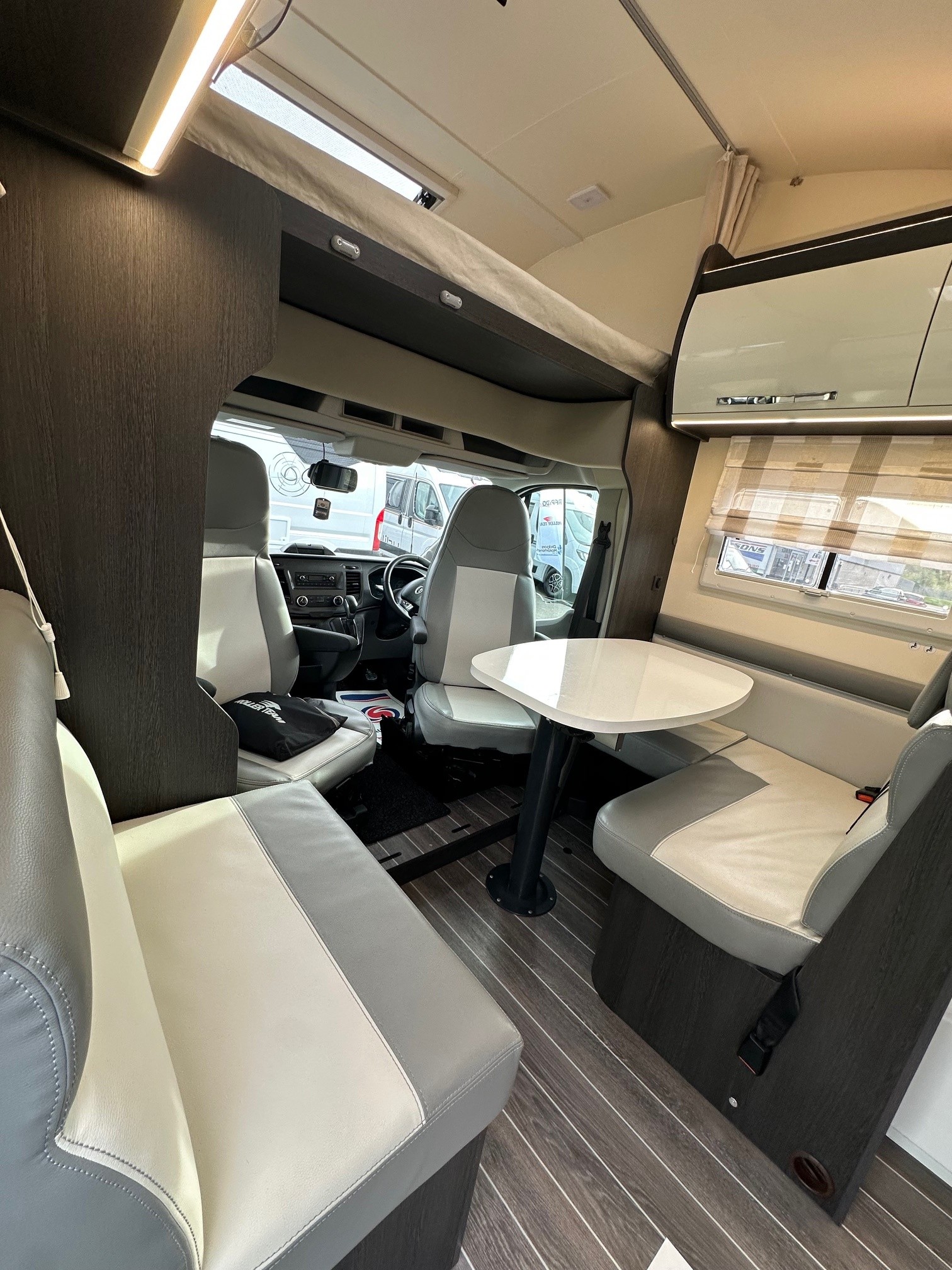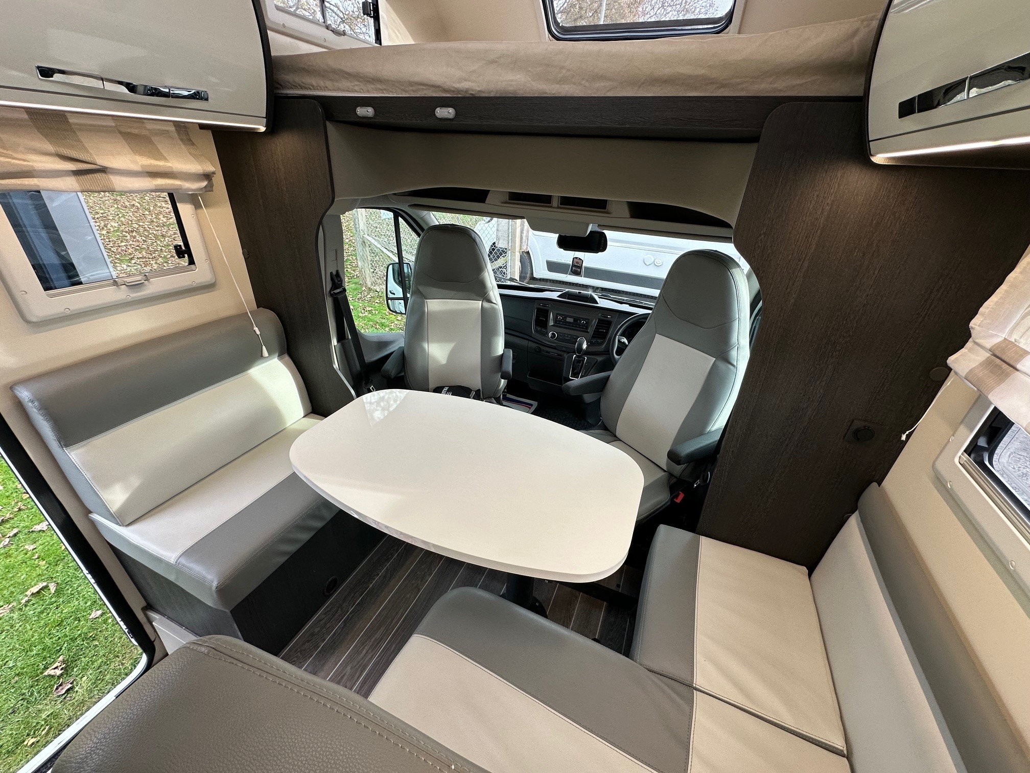 - Modern and stylish interior:Â The interior is finished to a high standard with a light, contemporary feel. It includes a functional dinette with swiveling cab seats to create a comfortable lounge area.