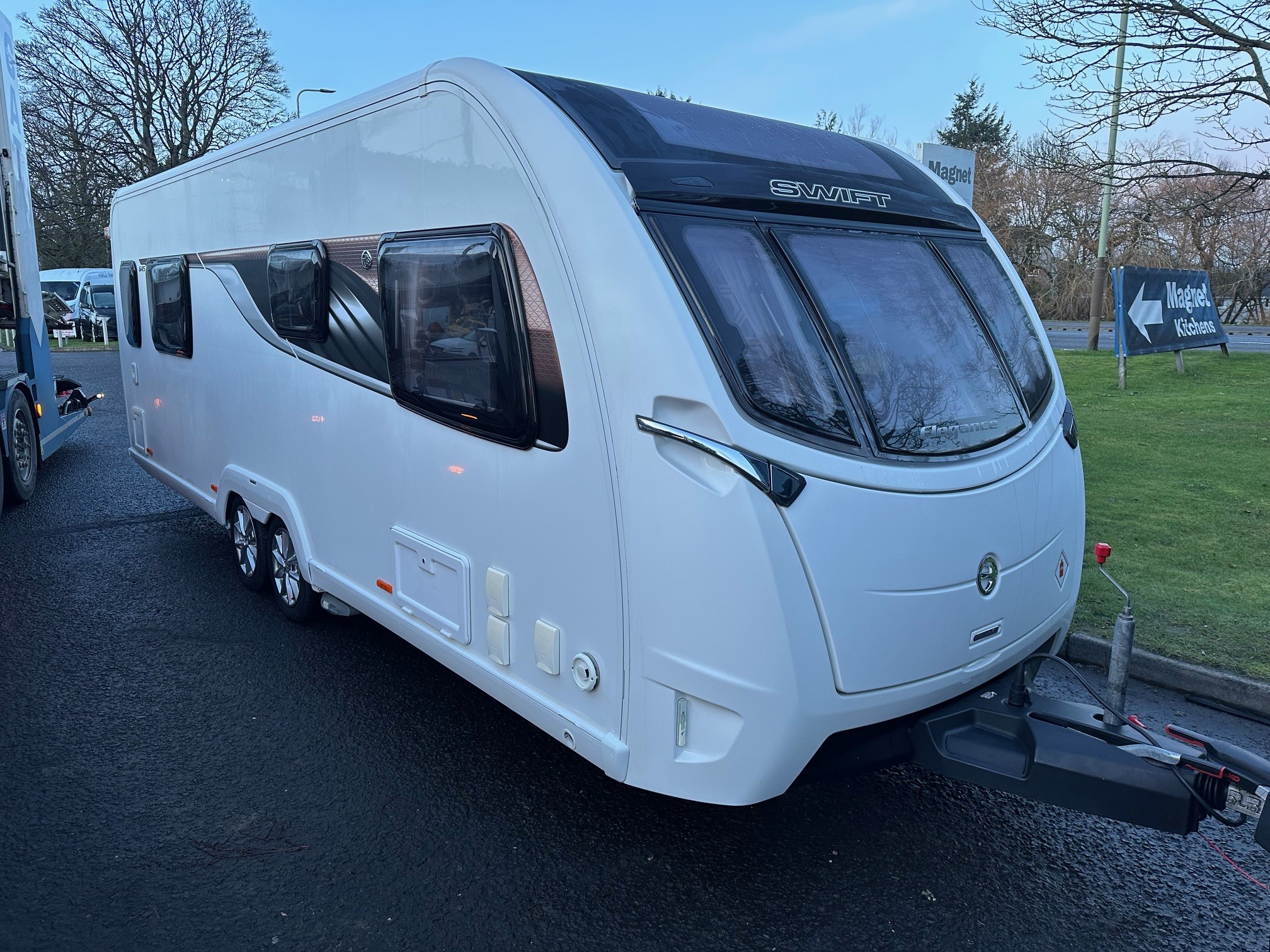 - Integrated Technology & Security:Â The Swift Command control system allows remote monitoring of onboard functions, while the AL-KO ATC (Trailer Stability Control) system and a pre-installed Thatcham Category 6 approved pro-active tracker provide peace of mind during transit and when pitched.