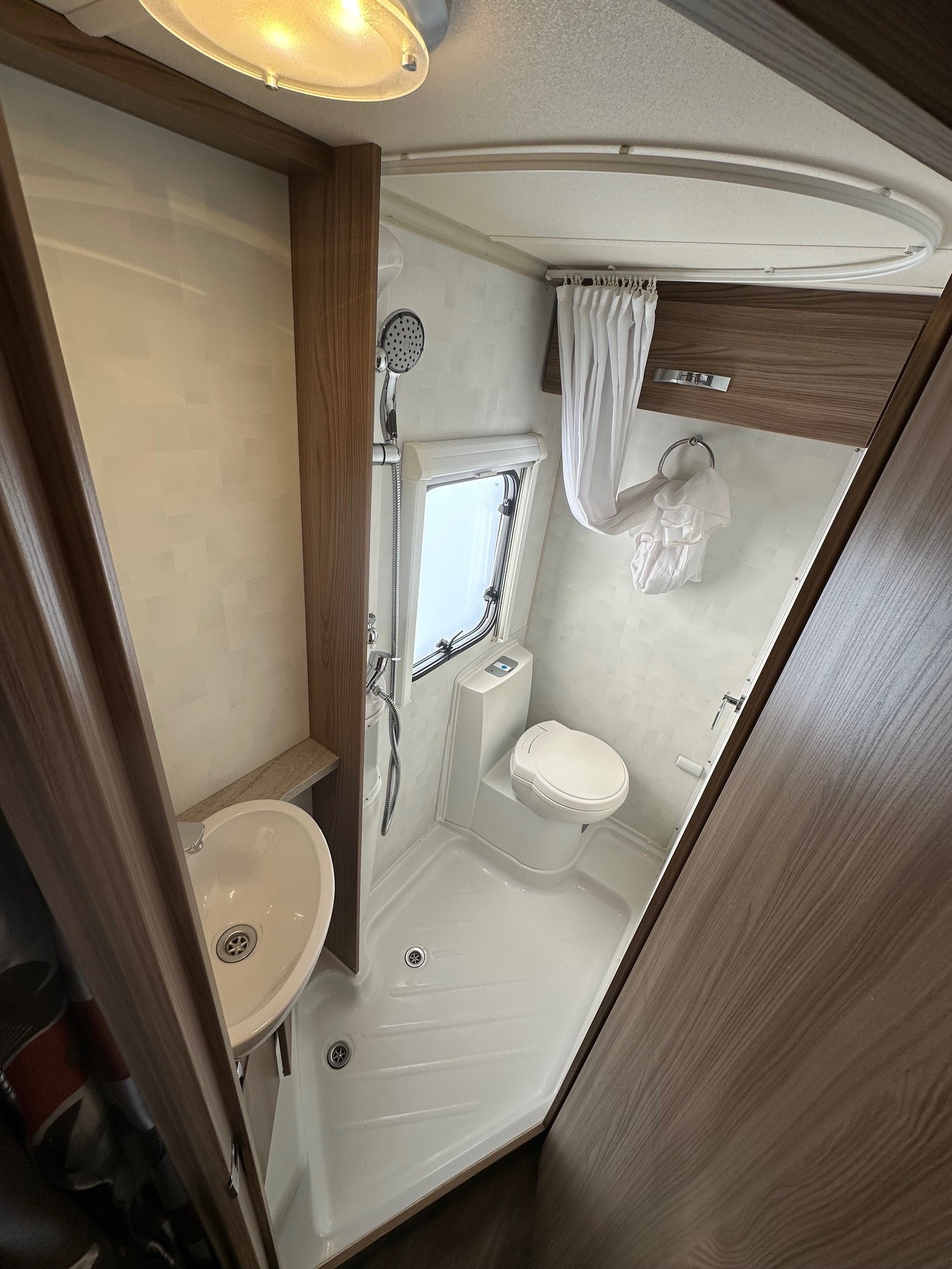 - All-in-one washroom: The rear corner washroom features a clever wet room design, combining a toilet, handbasin, and shower facility for maximum convenience in a compact space.