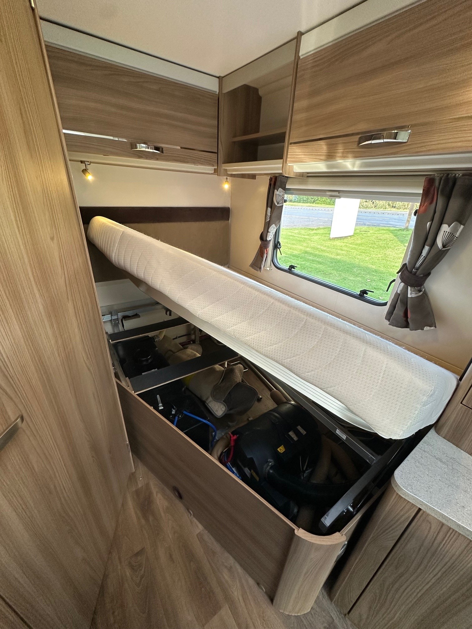 - Ample storage: Clever storage solutions are found throughout the motorhome, including under the fixed rear bed, ensuring you have plenty of room for all your touring essentials.